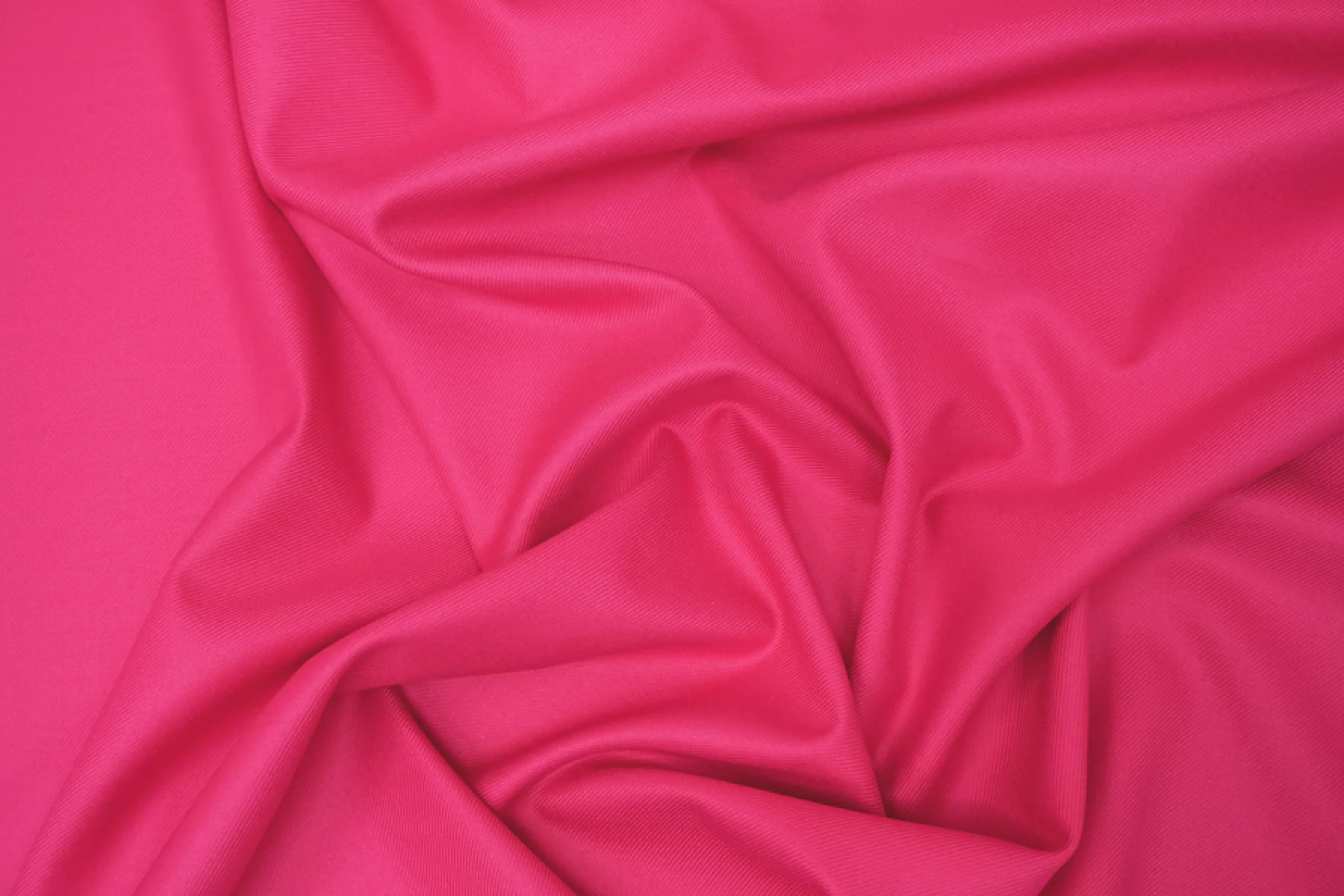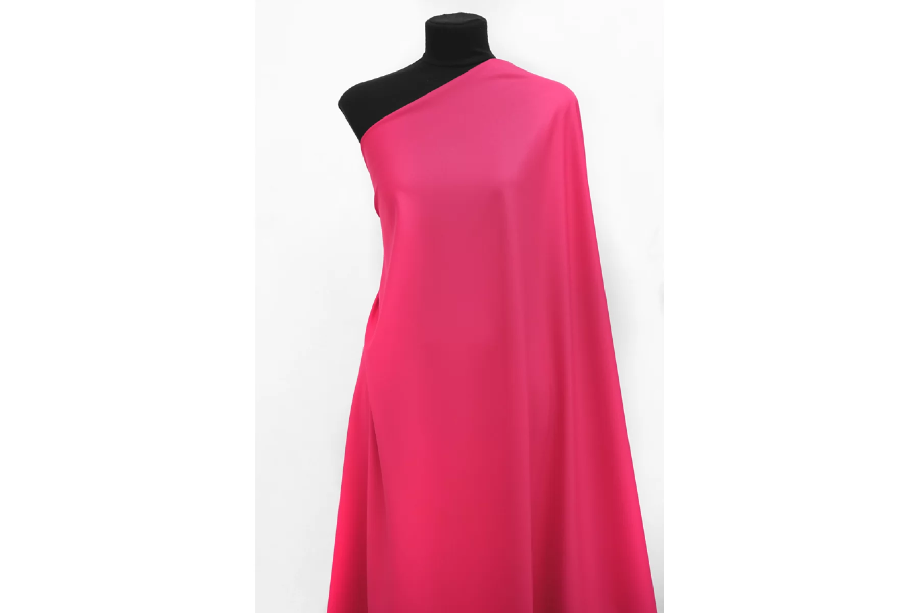 Костюмная поливискоза диагонального плетения в ярком и красивом розовом оттенке фуксии. Очень мягкая и приятная, гладкая. Прекрасна в своей пластике. Обладает красивым выраженным лоском. Совсем слегка мнется. Не просвечивает. Немного и упруго тянется за счет эластана. Поливискоза отличается хорошей износостойкостью и прочностью. Уход деликатный. Отличный вариант на костюмы, мягкие жакеты, платья, юбки, брюки и другое.