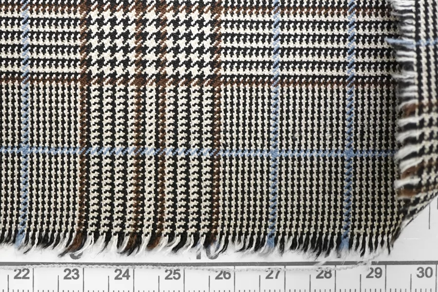 Костюмная поливискоза в клетку и гусиную лапку MAX MARA Чёрно-белая с коричневым и голубым MM H64 G50 1102542