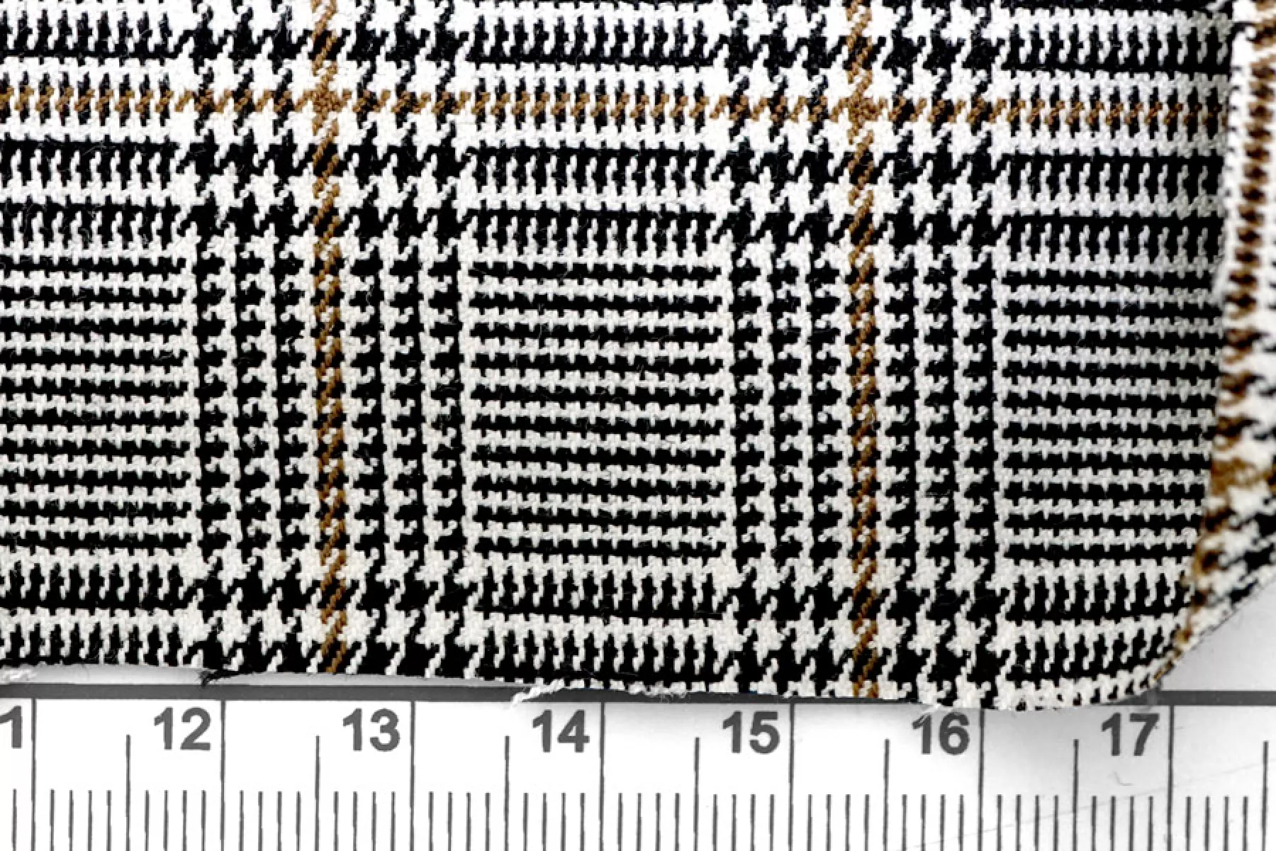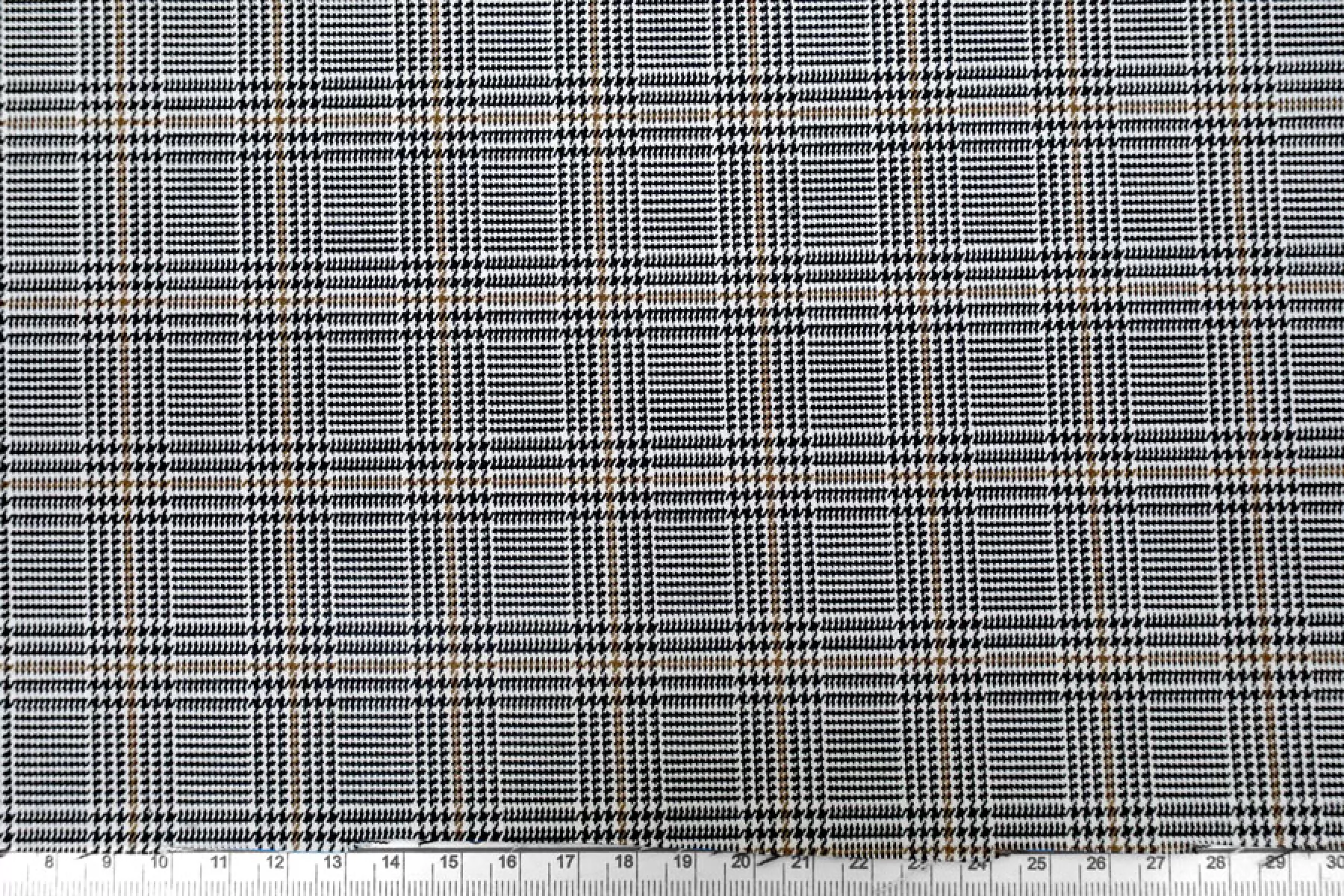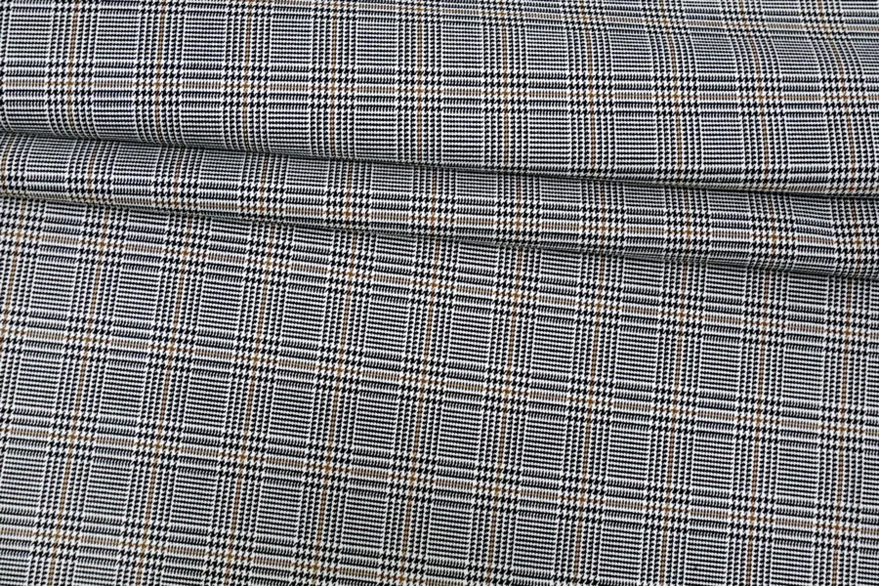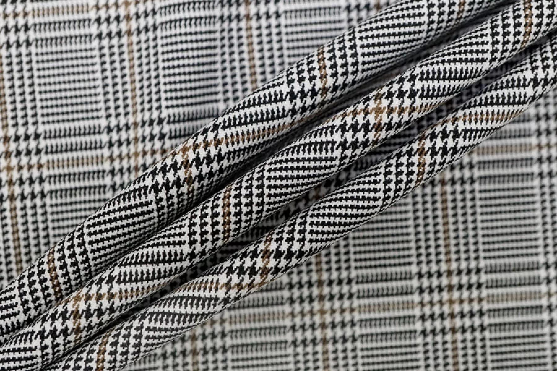 Костюмная поливискоза в клетку и гусиную лапку из чёрных, коричневых и белых нитей. Материал тактильно приятный и мягкий, гладкий, тонкий, но плотненький, не мнется. Обладает хорошей износостойкостью. Красив в своей пластике. Не просвечивает. Немного держит форму. Хорошо тянется за счет содержания эластана. Шьем жакеты, костюмы, платья, юбки, брюки и не только. Рекомендуется деликатный уход.