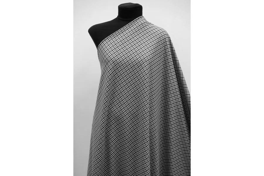 Костюмная поливискоза в клетку, светло-серый, серый и чёрный цвет. Материал тактильно приятный и мягкий, гладкий, тонкий, но плотненький, не мнется. Обладает хорошей износостойкостью. Красив в своей пластике. Не просвечивает. Немного держит форму. Тянется. Шьем жакеты, костюмы, платья, юбки, брюки и не только. Рекомендуется деликатный уход.
