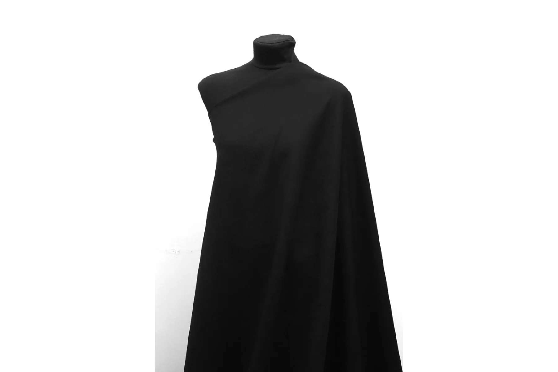 Прекрасная итальянская шерсть костюмной плотности в классическом черном цвете. Плетение диагональное. Приятная, мягкая, слегка суховатая наощупь. Покалывает. При необходимости используйте подкладочный материал, для более комфортной носки. Ткань тонкая, но при это плотная Материал имеет красивый легкий блеск. Не тянется, но зато хорошо драпируется в мягкие складки. Не мнется! Идеальный вариант на классические теплые костюмы, брюки, платья, юбки, мягкие жакеты. Уход деликатный