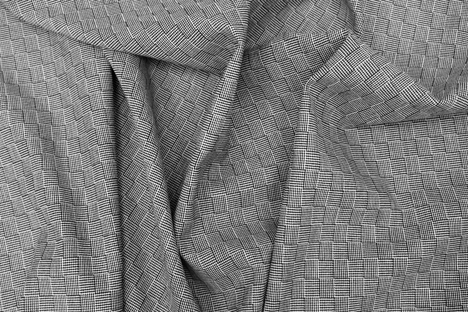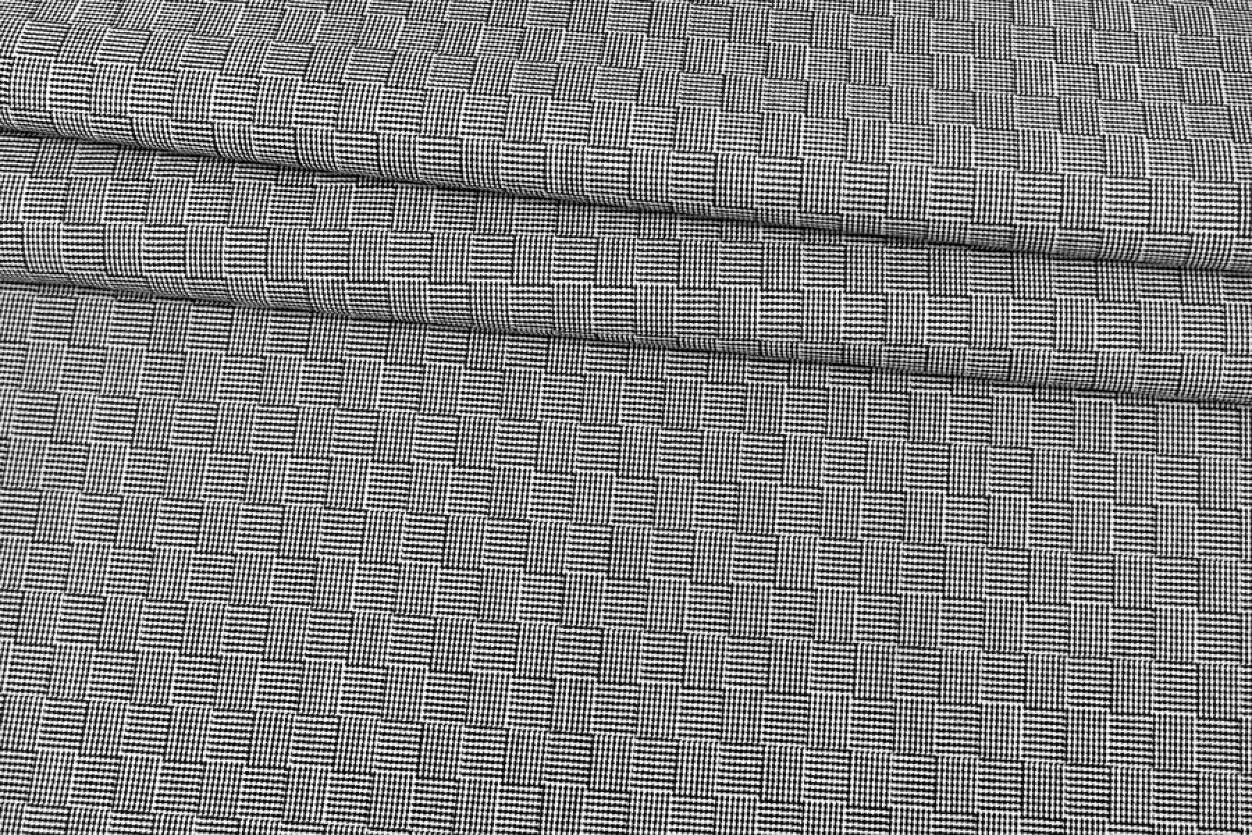Итальянская костюмная шерсть в мелкий геометрический орнамент напоминающий квадраты. Гладкая, не колется. Не просвечивает, пластичная, немного тянется, достаточно плотная, тактильно приятная. Подойдет для пошива жакета, брюк, платья, юбки, костюма, куртки-рубашки.