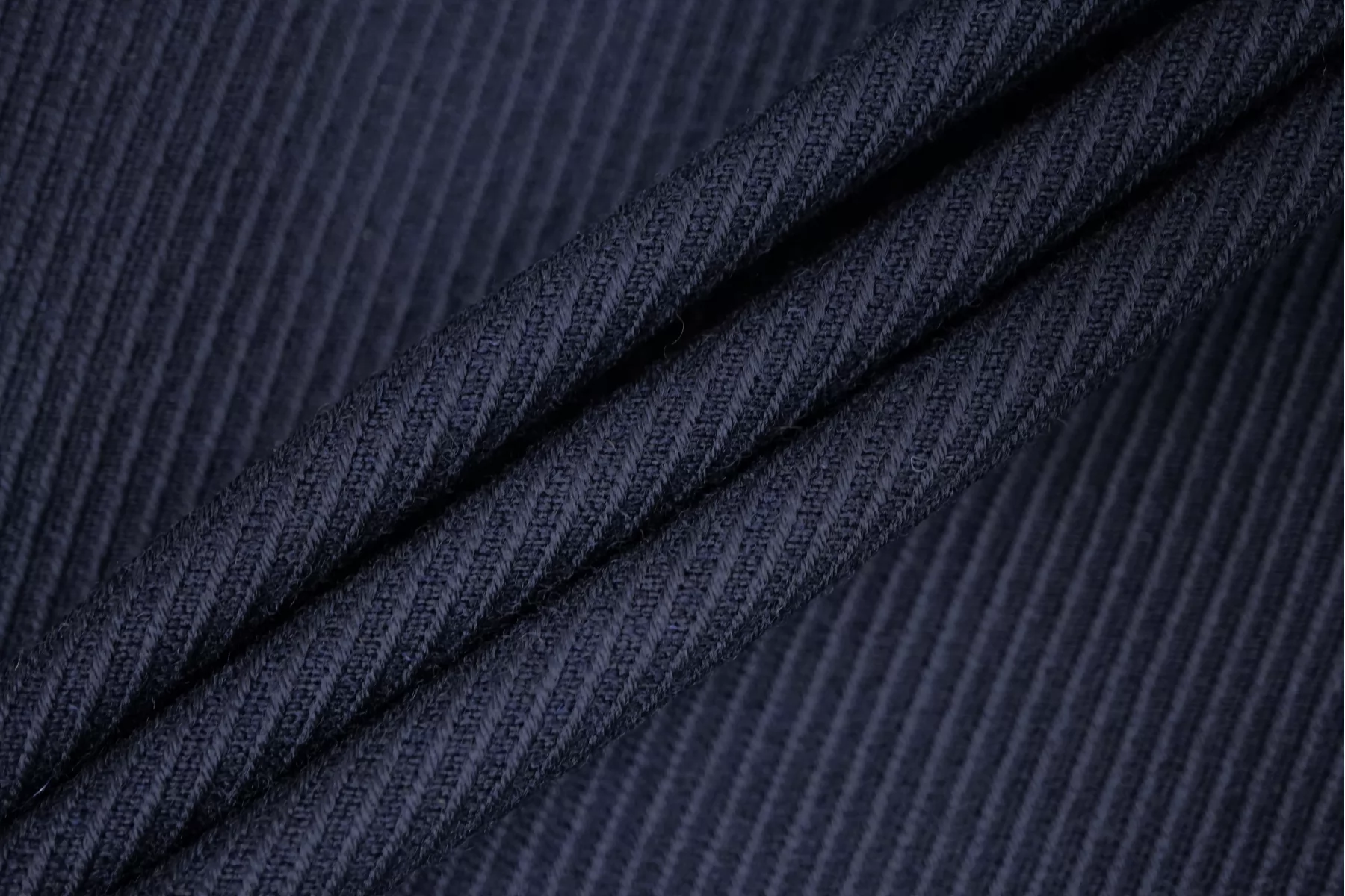 Костюмная шерсть достаточно плотная в темно-синем цвете фактурная диагонального плетения. Прекрасно подойдет для жакета, пиджака или костюма, юбки. Чувствуется фактура на ощупь, ворсистая, немного колется. Смотрится очень стильно. Не тянется. Форму держит. Довольно пластичная. Уход - деликатный.