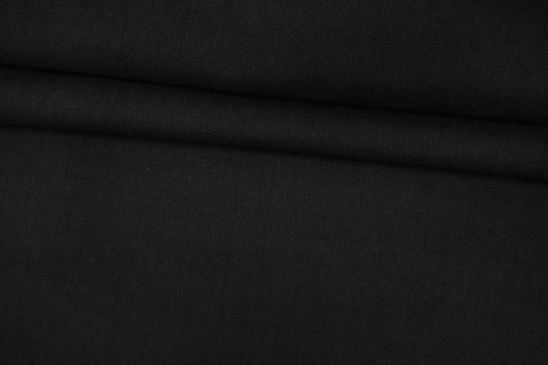 Костюмная шерсть фактурная в ёлочку Чёрная IDT H59/6 GG60 17062516