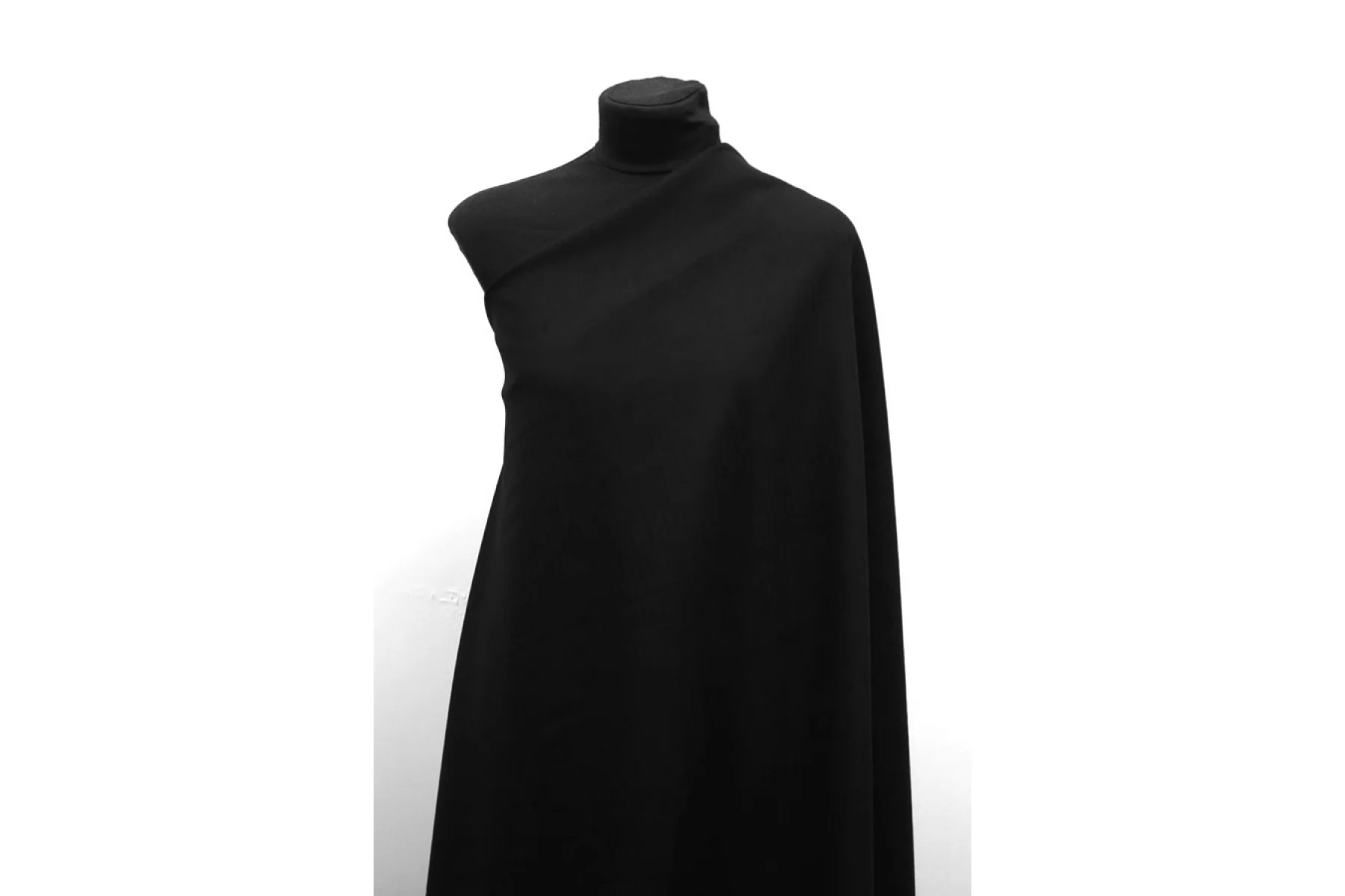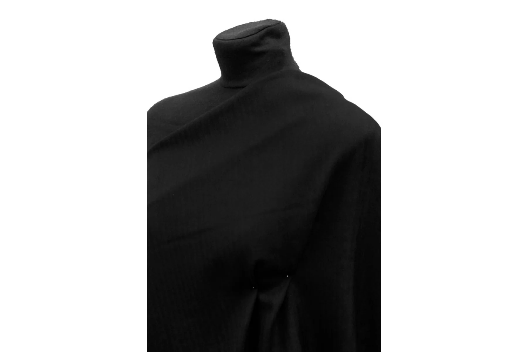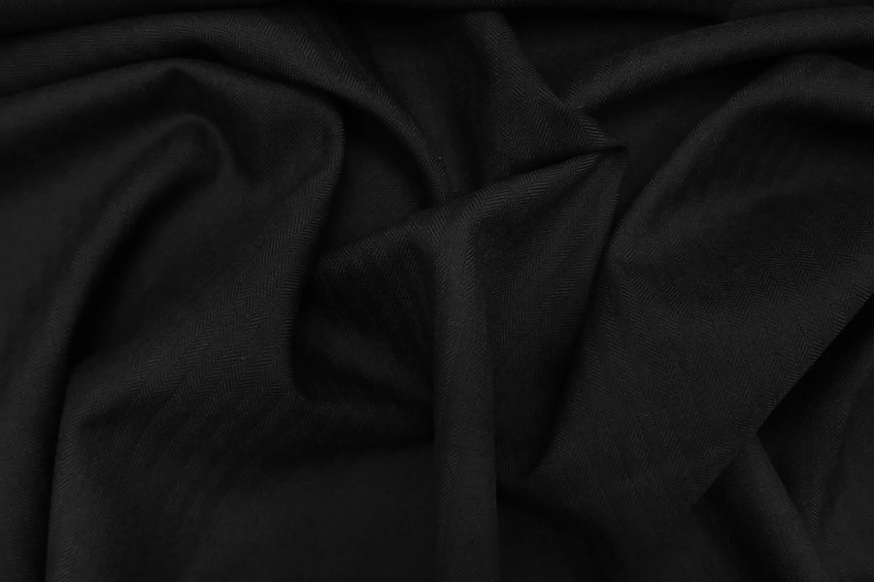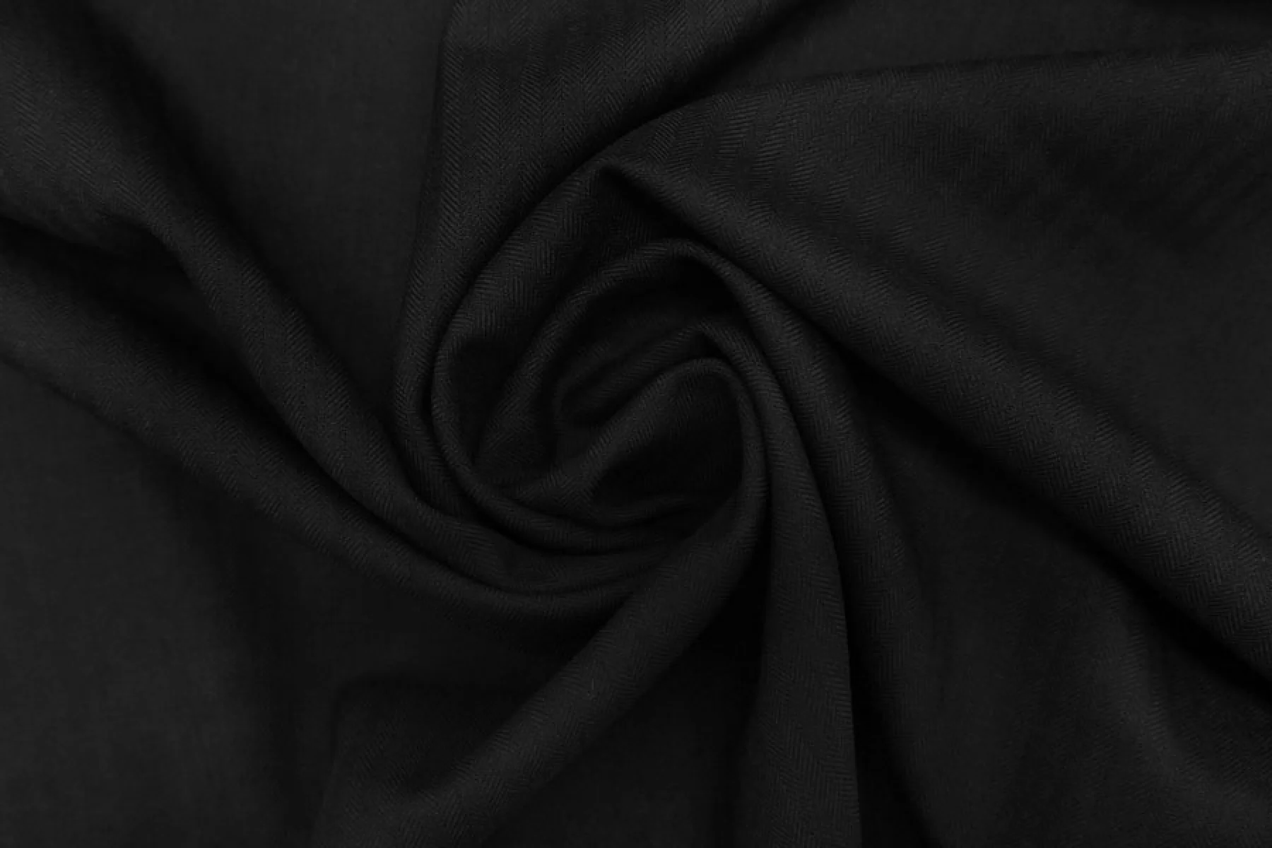 Шикарная костюмная шерсть virgin в классическом чёрном цвете, с плетением-ёлочкой. Слегка суховата, шерсть ощущается. Хорошо тянется. Не просвечивает. Форму держит. Красиво драпируется, пластичная. Отличный вариант на костюмы, жакеты, теплые платья и юбки. Уход за шерстью деликатный.
