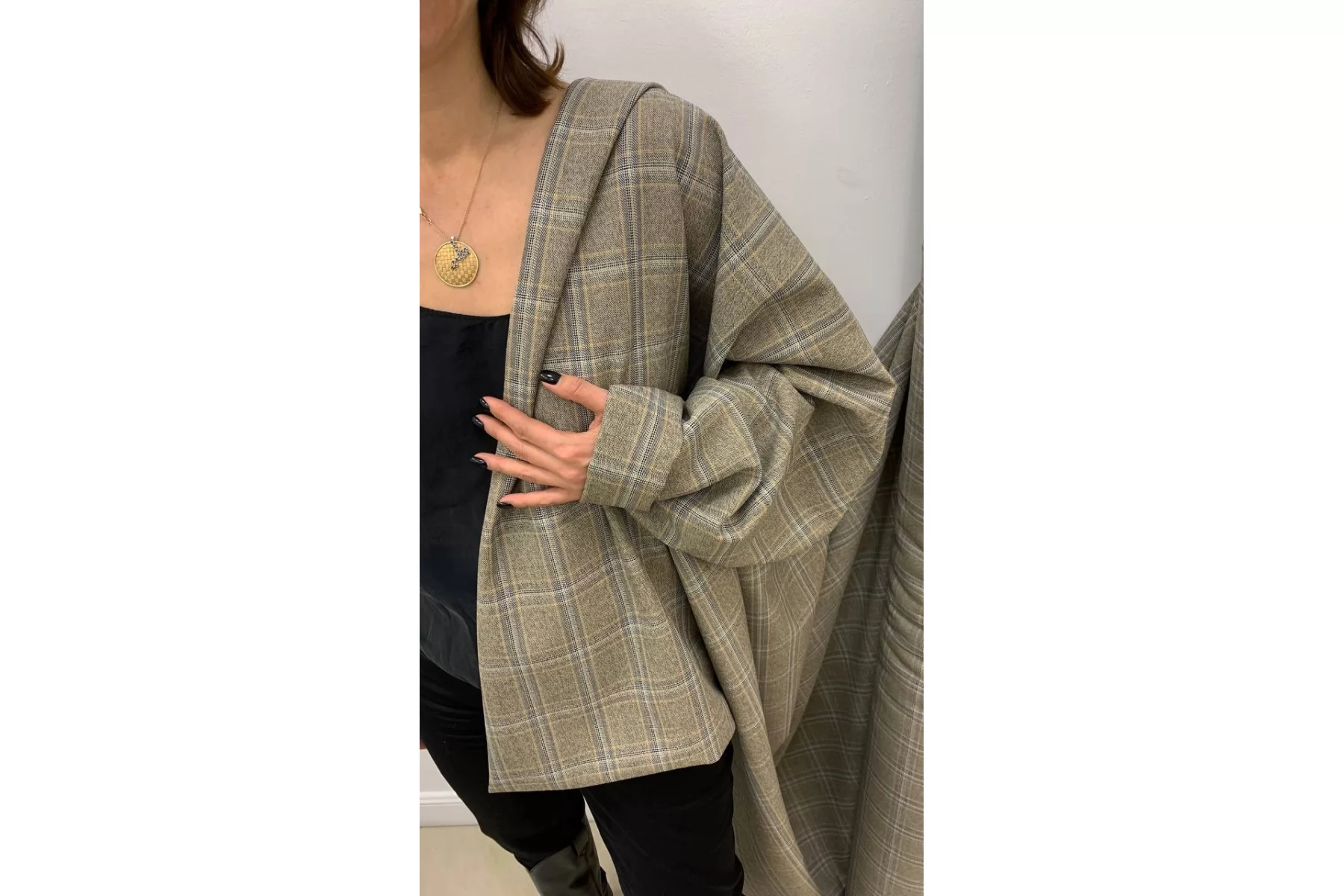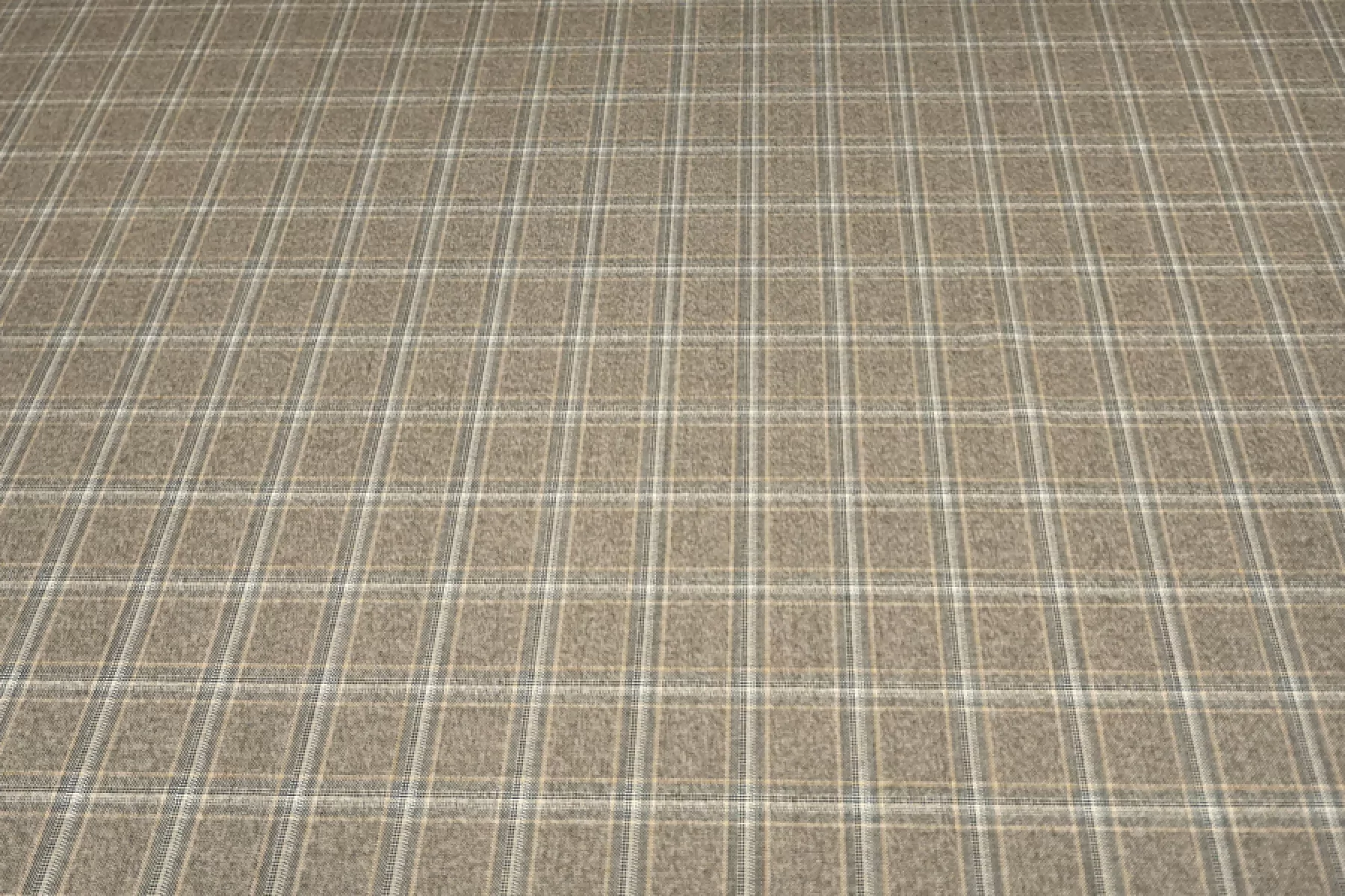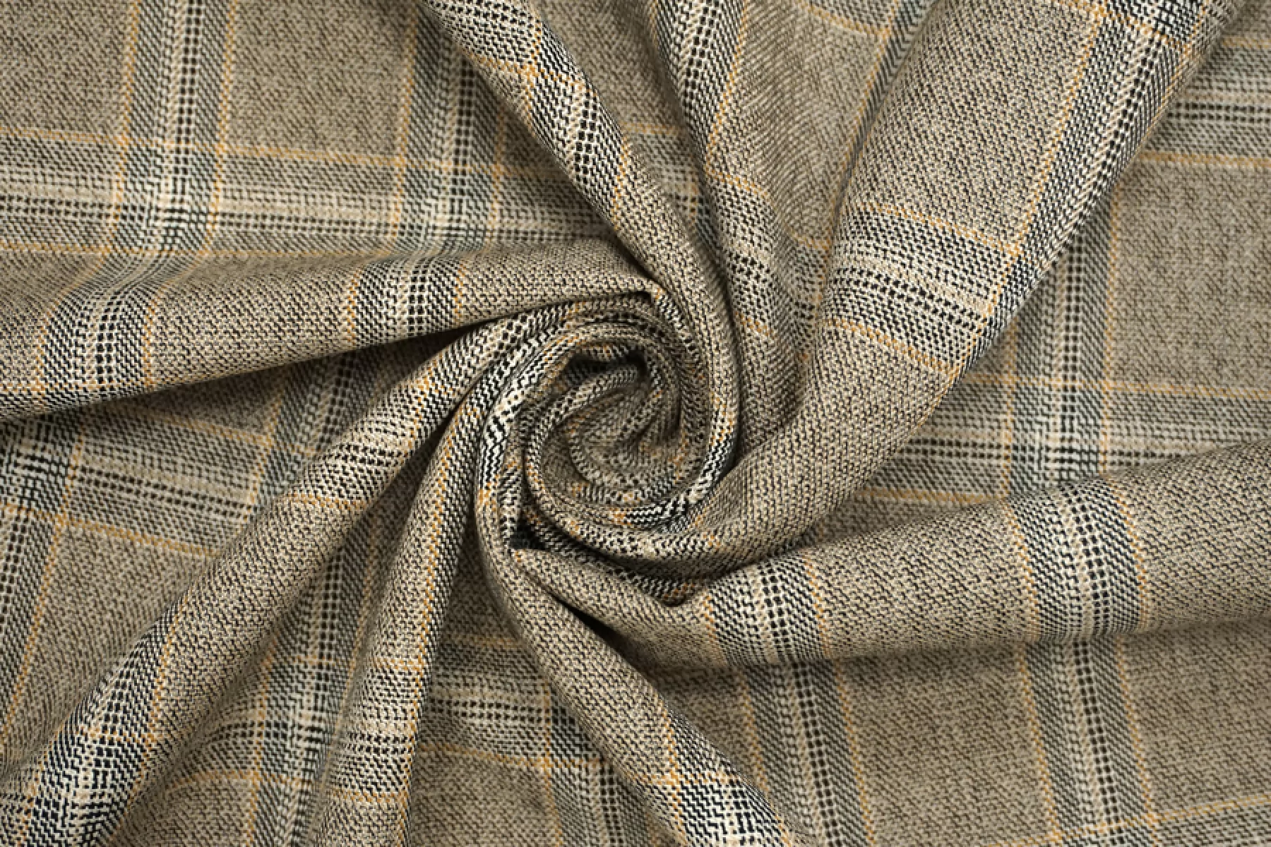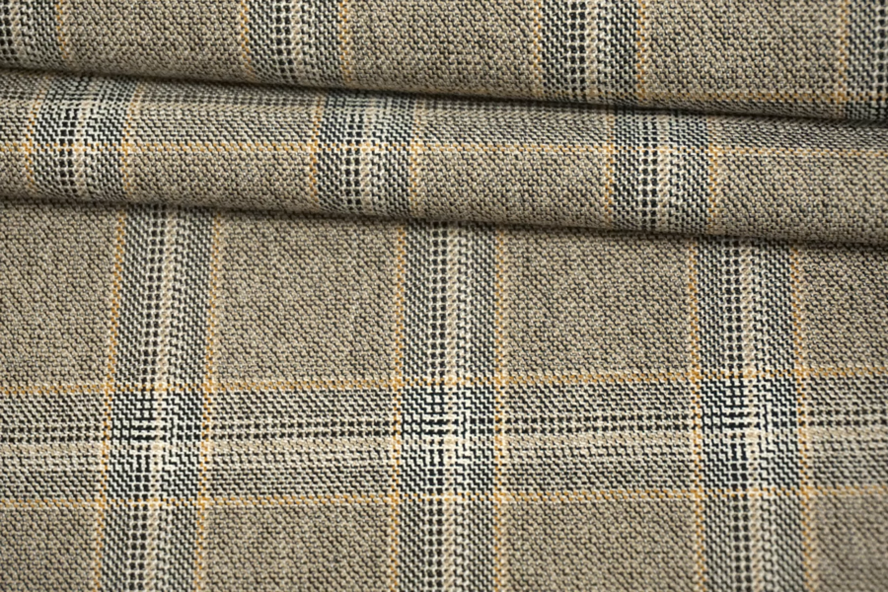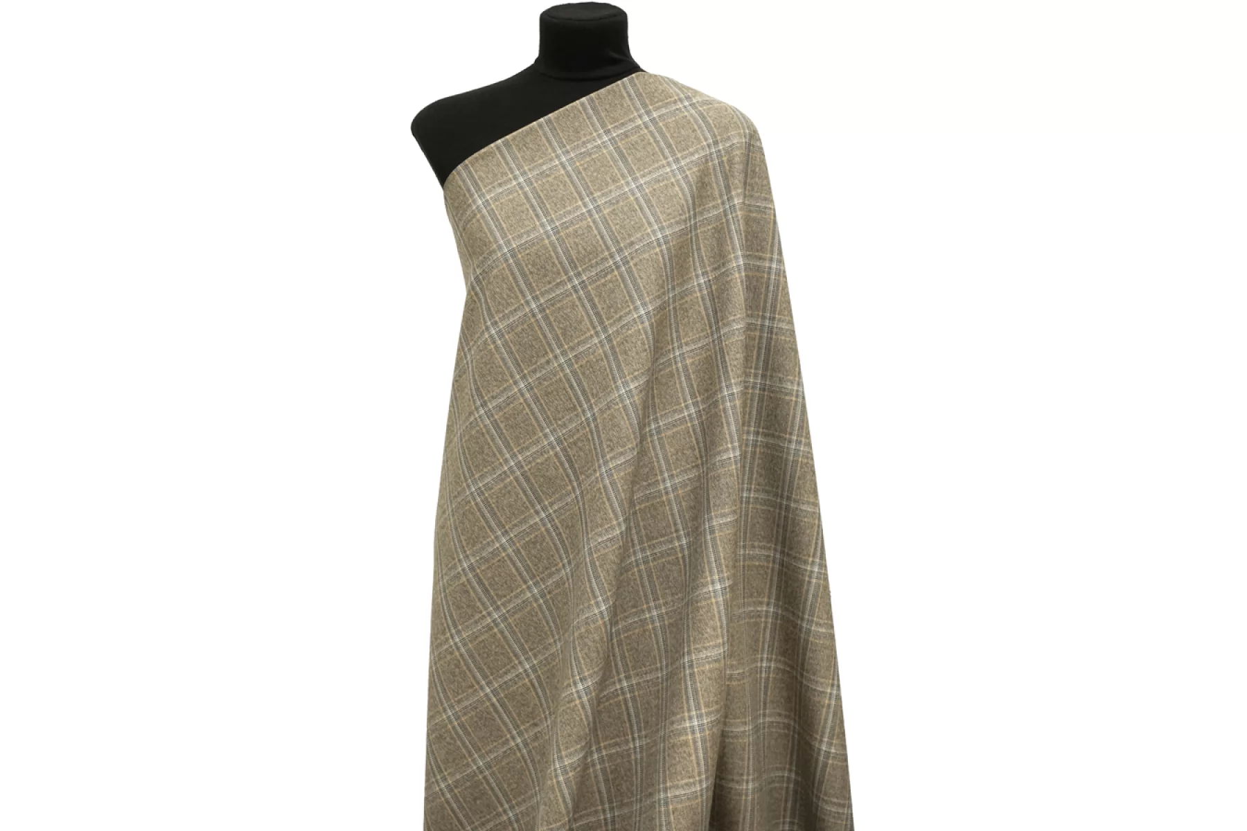 Костюмная шерсть от GUCCI в клетку, которую образует переплетение нитей бежевого, серого, молочного, горчичного и черного. Тактильно сухая, слегка шероховатая, но приятная. Клетка среднего размера (~7,2 х9 см). Полотно плотное. Не колется, но ощущается шерсть. Не просвечивает. Не тянется. Не мнется. Хорошо драпируется и отлично держит форму. Шьем стильные жакеты, пиджаки, костюмные варианты, юбки и не только. Уход за шерстью деликатный. При необходимости используйте подкладочный материал.