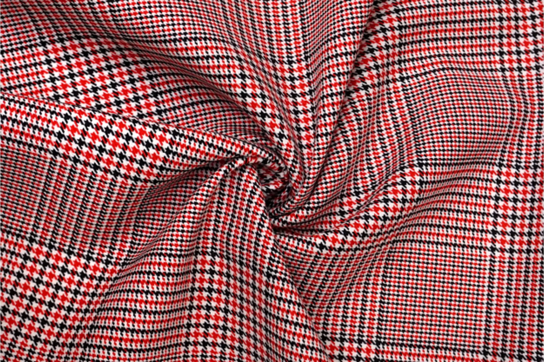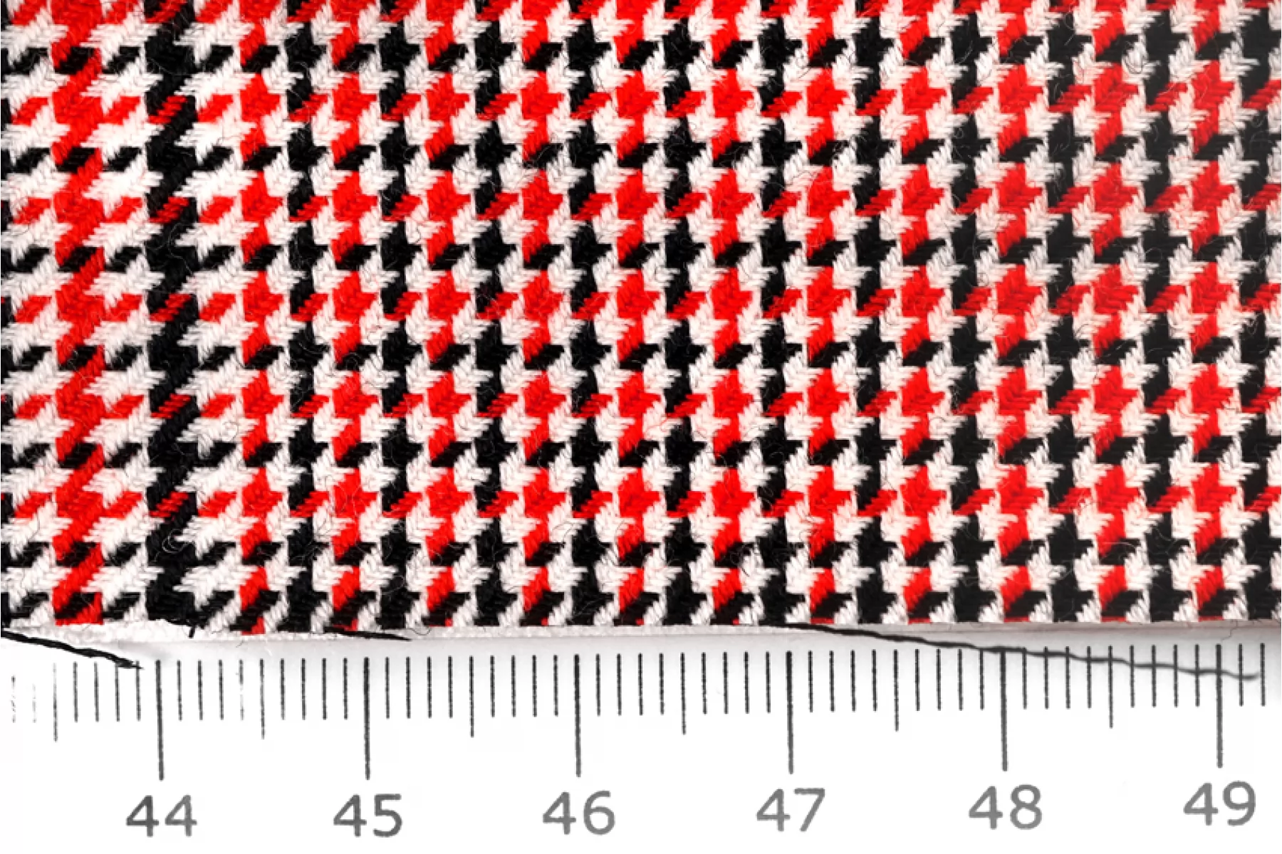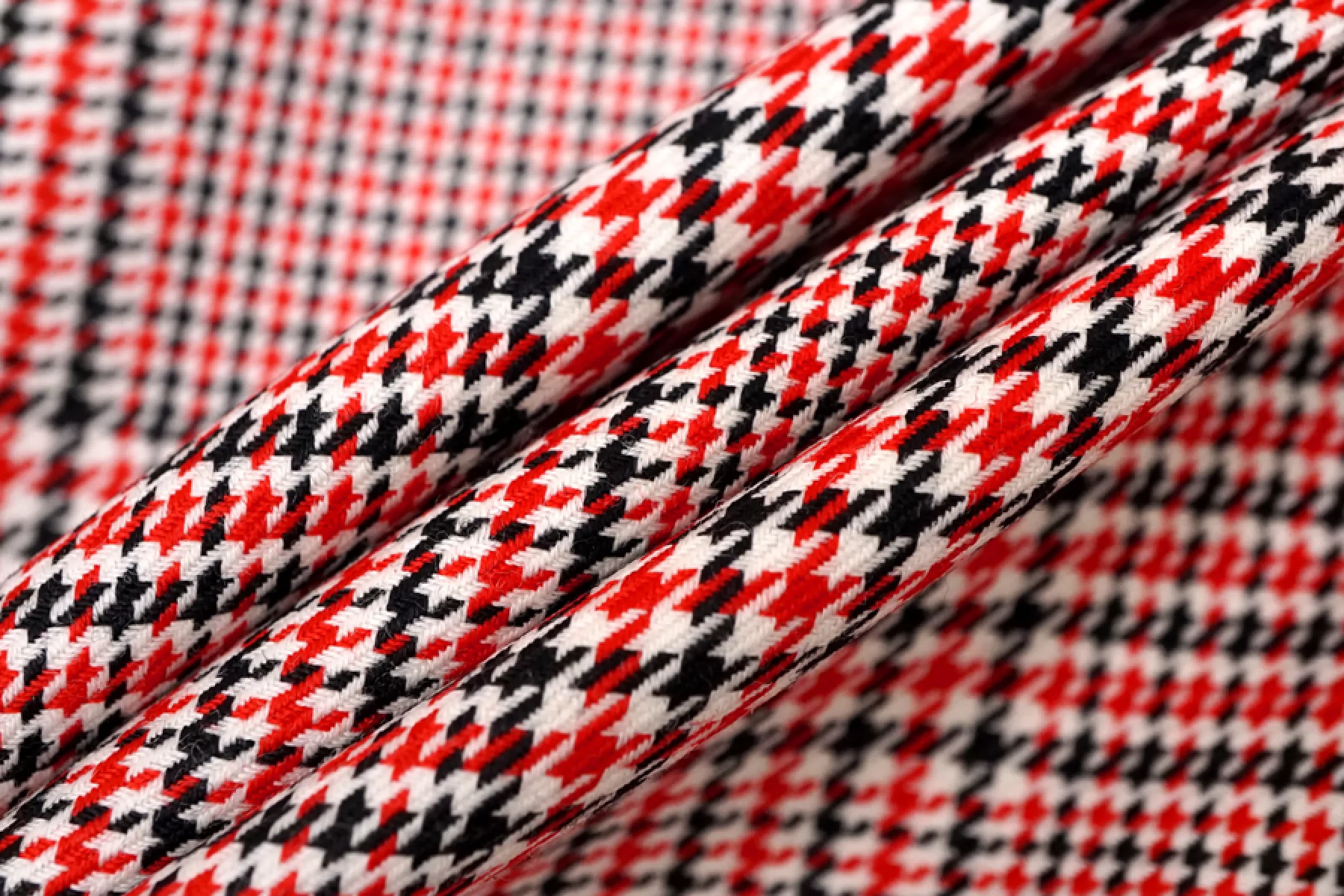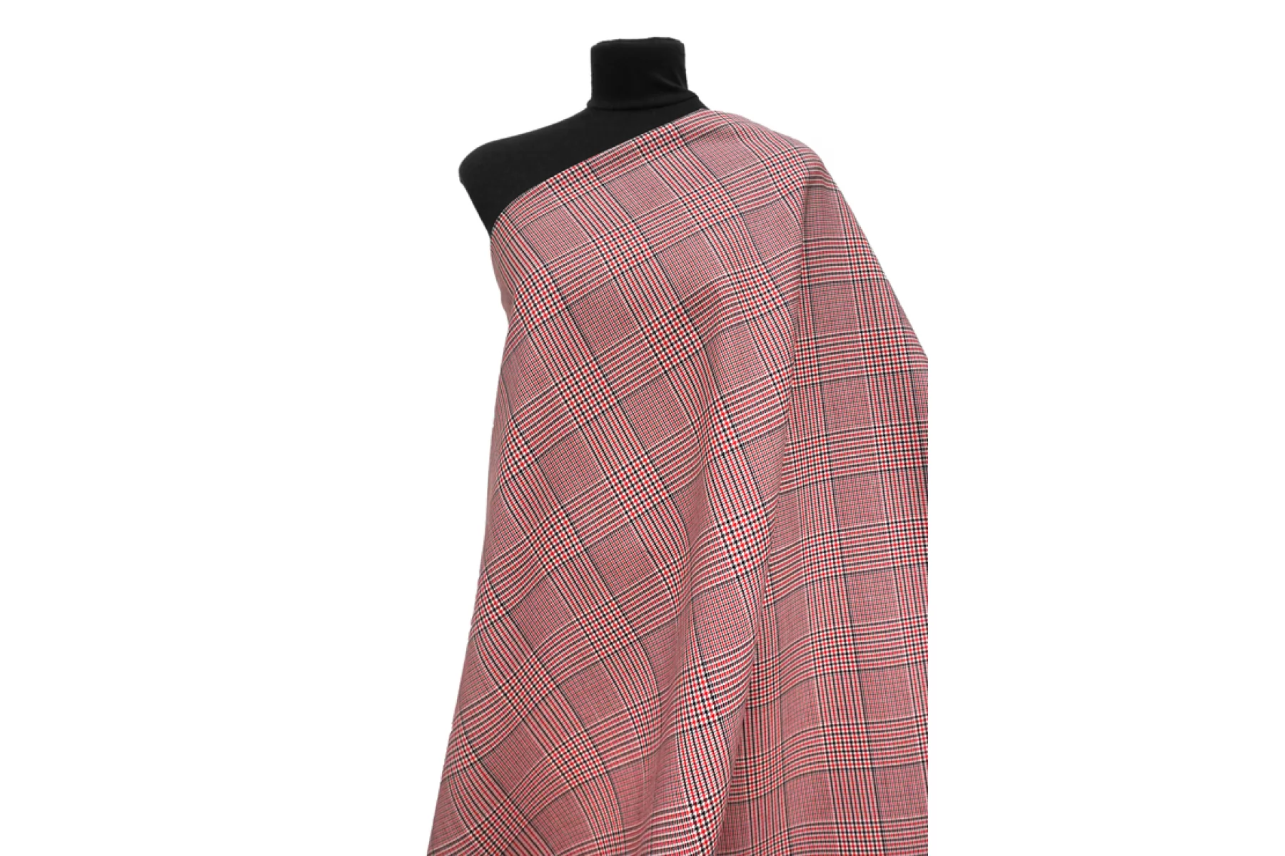Шикарная позиция - шерсть диагонального плетения с мелкой гусиной лапкой и крупной клеткой в черно-бело-красном цвете от бренда McQueen. Шерсть тактильно очень приятная, прохладная. Не мнется. Материал довольно плотный. Не тянется и не просвечивает. Отличный вариант на костюмы. Уход за материалом деликатный.