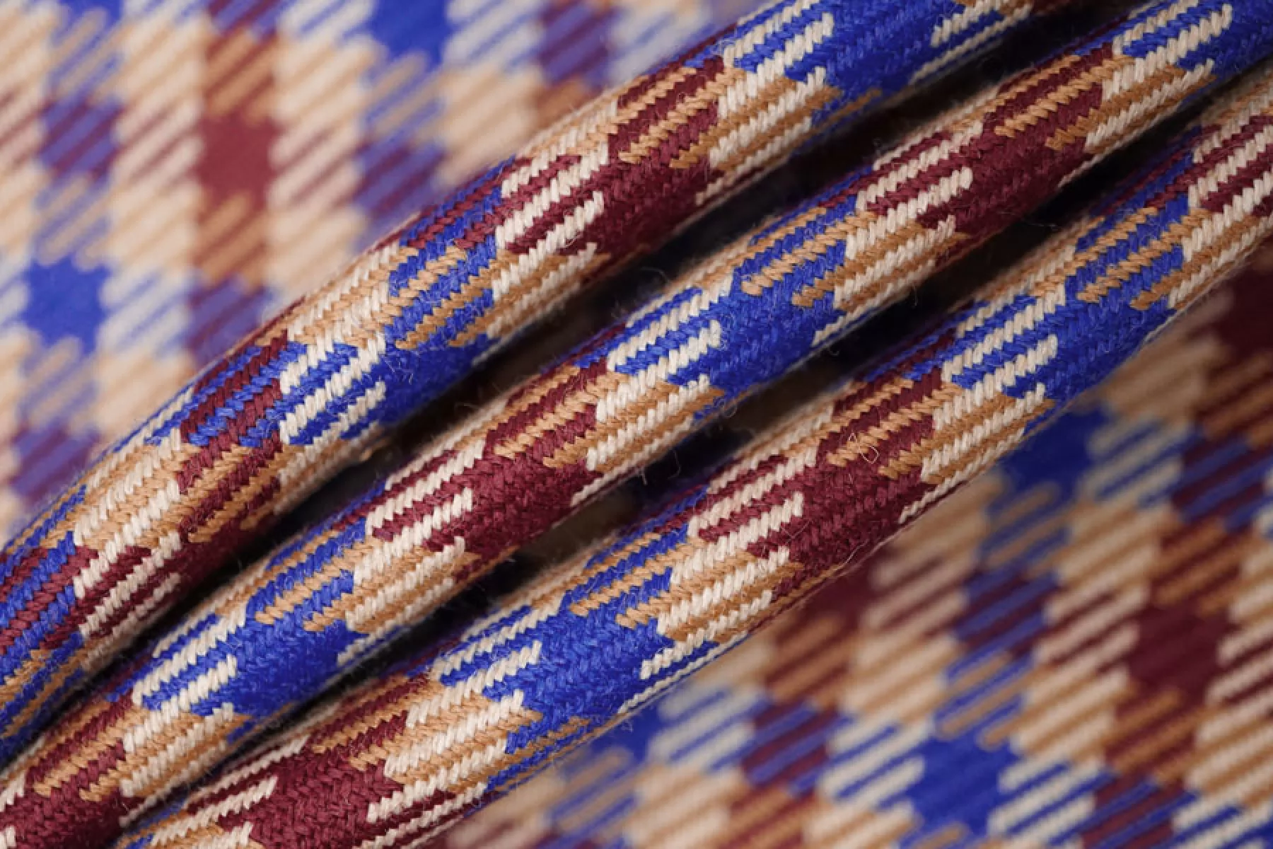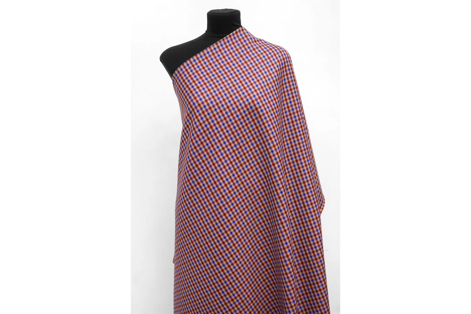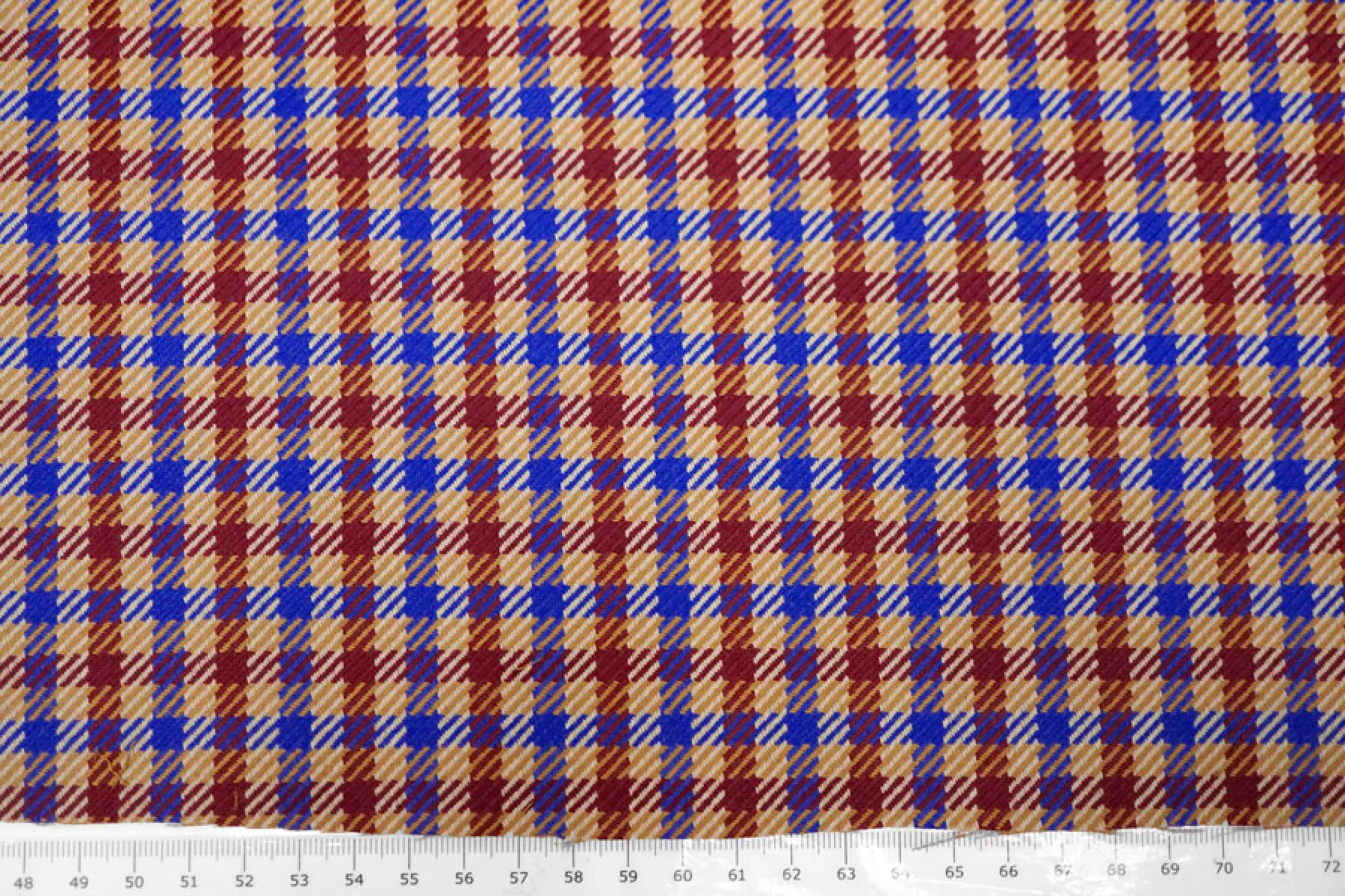 Шикарного качества итальянская костюмная шерсть в клетку, диагонального плетения, в оттенках синего, винного и бежевых. Тактильно приятная и гладкая. Не колется. Мягкая и пластичная. Достаточно плотная. Обладает легким лоском. Хорошо драпируется и держит форму. Не просвечивает, не тянется, не мнется. Стильный вариант для пошива жакета, брюк, платья, юбки, костюма и не только. Уход за шерстью деликатный.