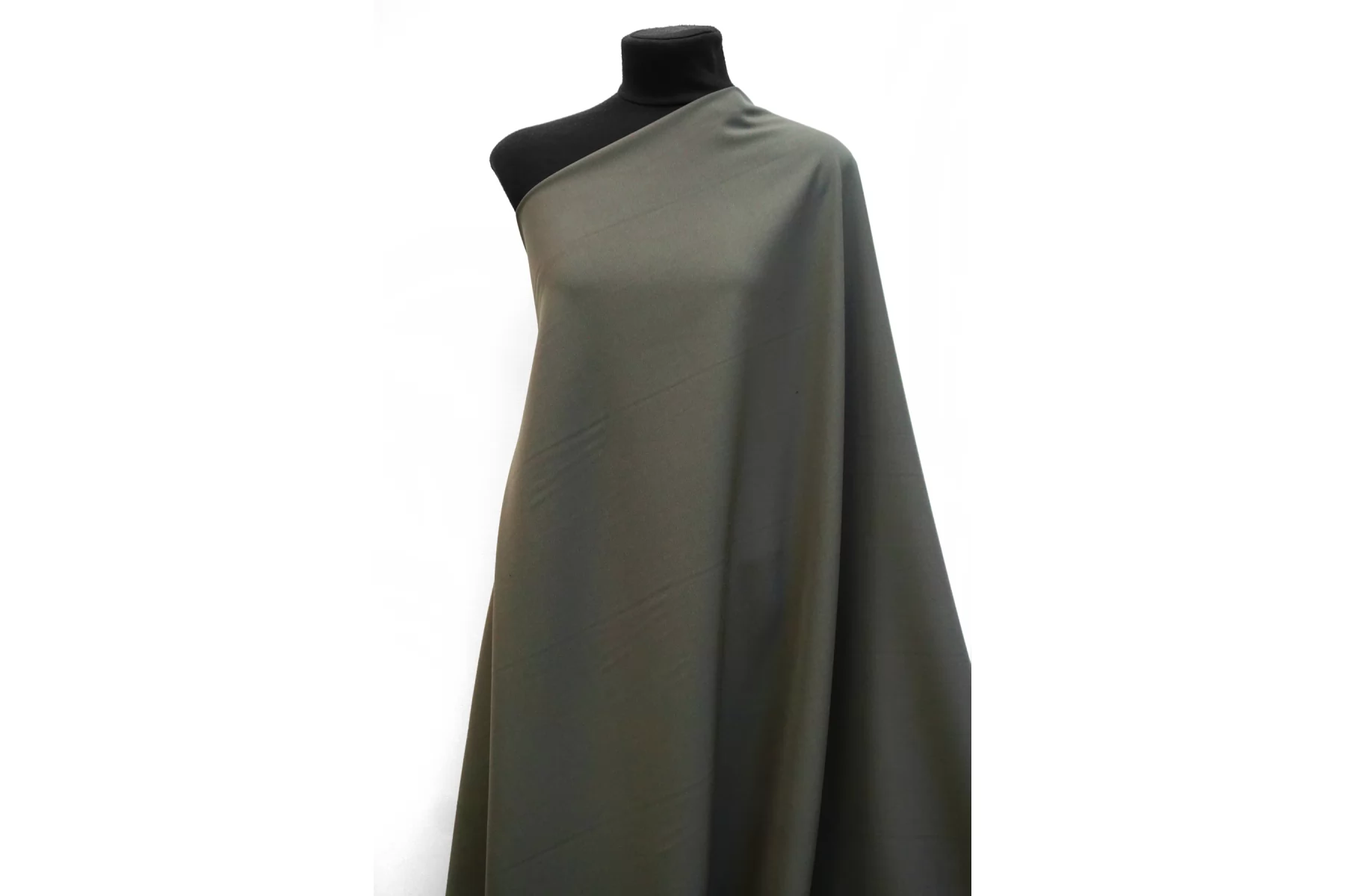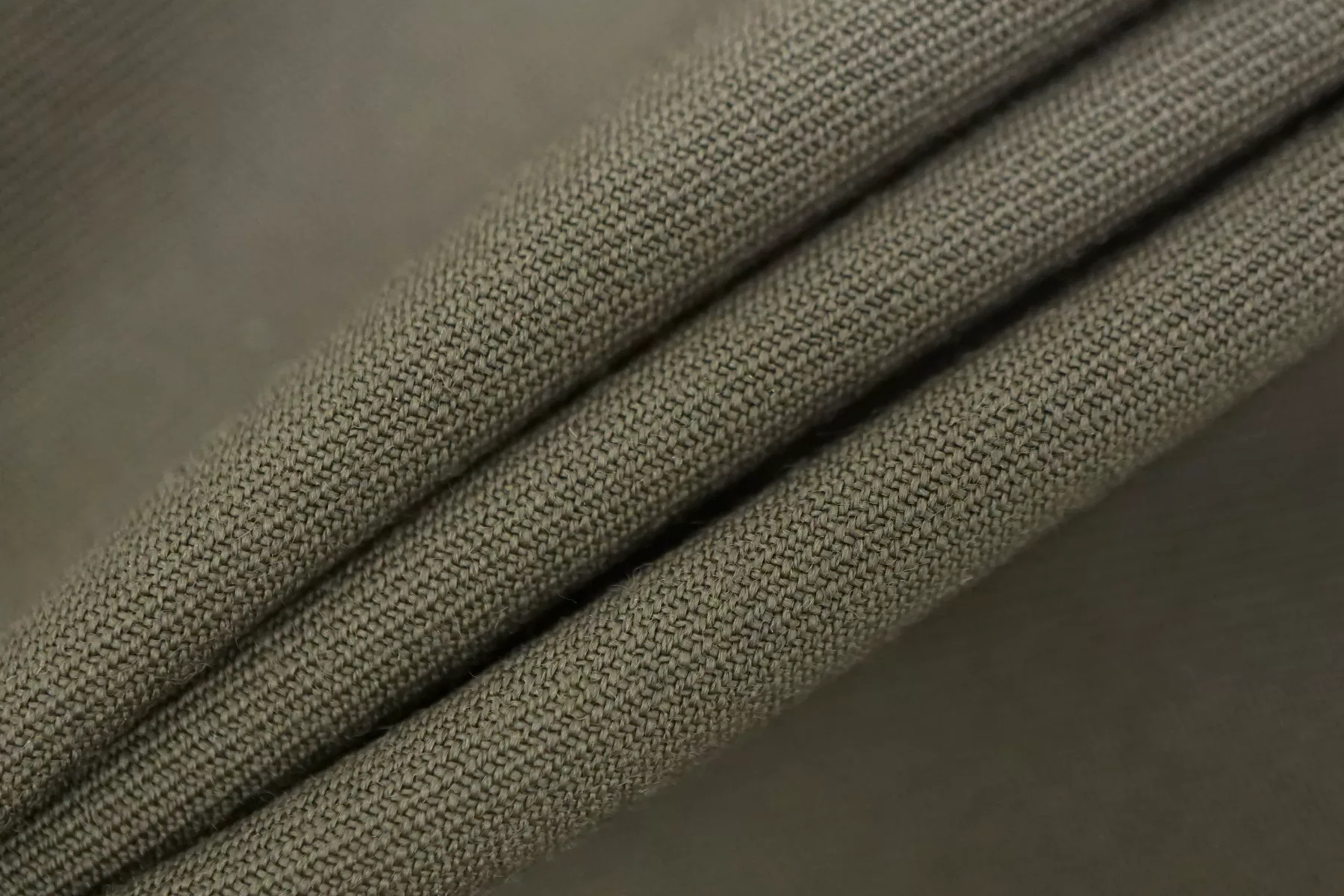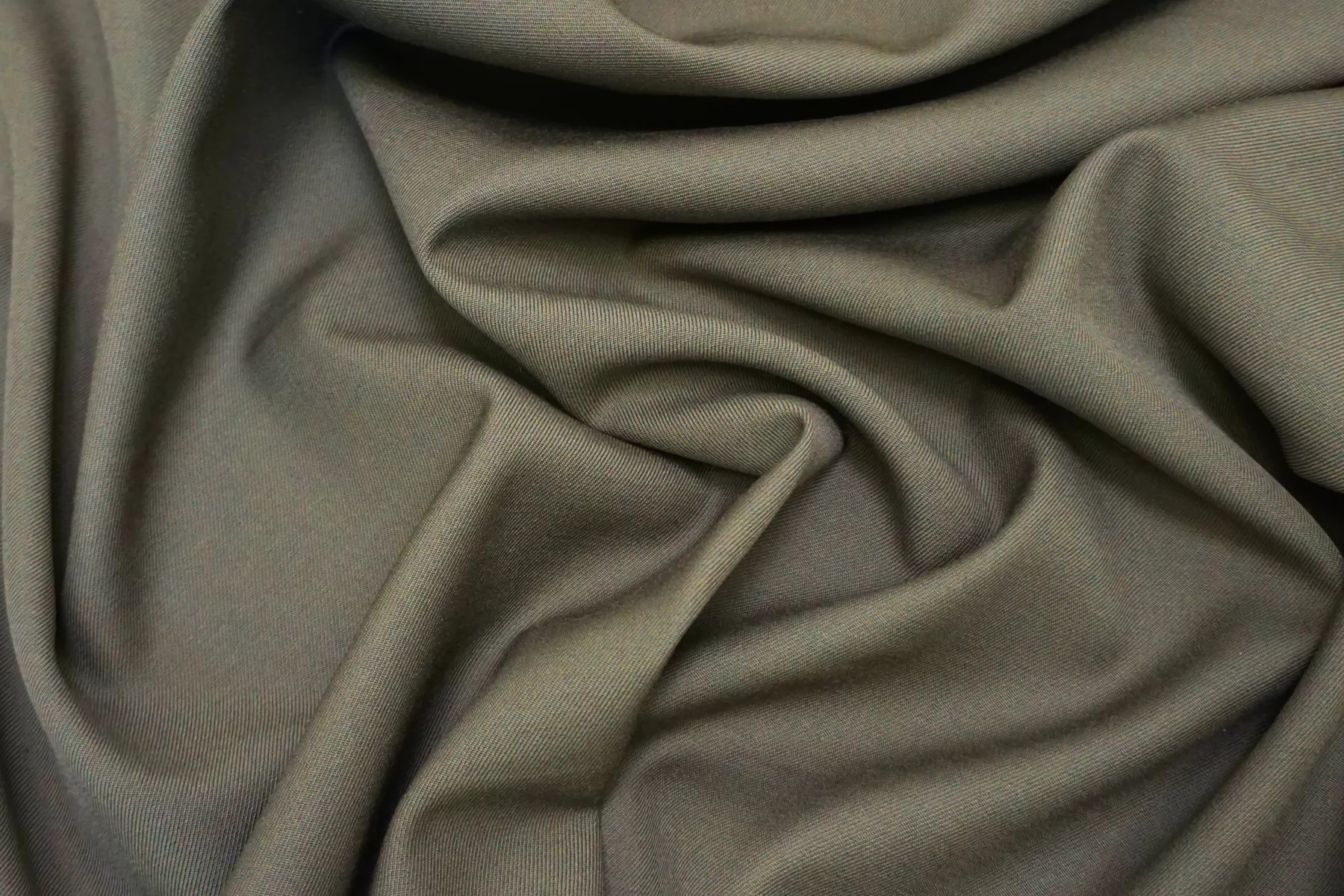 Костюмная шерсть диагонального плетения, в ненасыщенном, приглушённом зелёном оттенке. Тактильно суховатая, плотная. Чувствуется плетение наощупь. Чувствительной коже может слегка колоться. Не просвечивает, не тянется. Не мнется. Держит форму но при этом пластичная. Используем для пошива костюмов, в том числе и мужских, юбок, зимних сарафанов. При необходимости используйте подкладочный материал. Уход за шерстью деликатный.