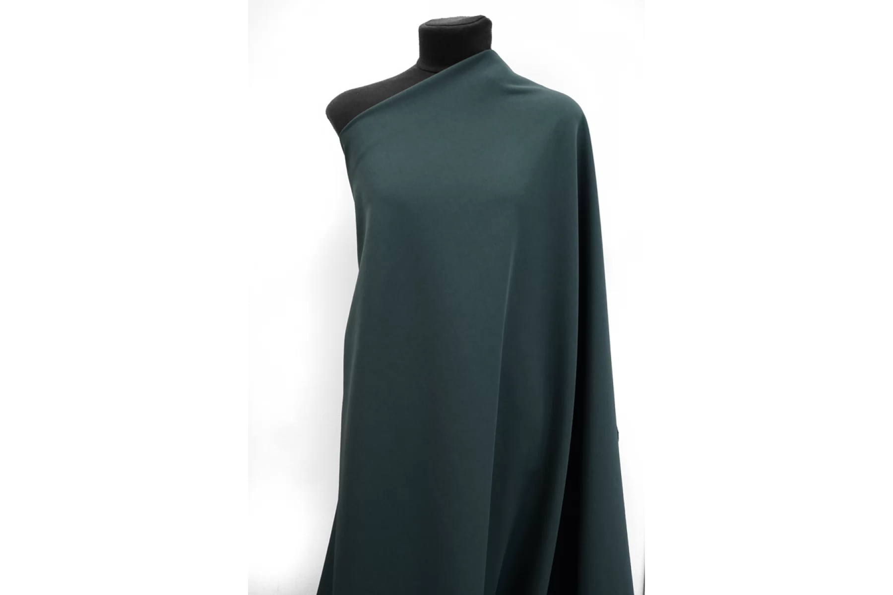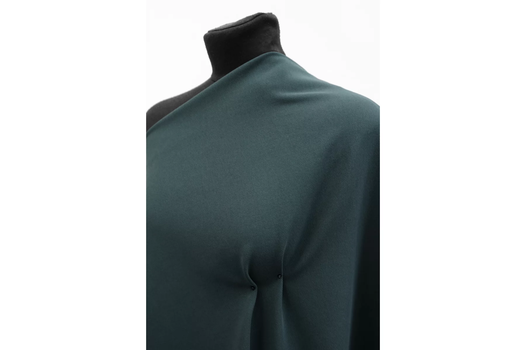 Прекрасная костюмная шерсть в интересном припыленно-изумрудном оттенке диагонального плетения. Лицевая сторона хлопковая гладкая, с легким лоском. Изнаночная сторона мягкая с начесом, по цвету более темная. Совсем немного покалывает. Ткань толстенькая, плотная, суховатая и шероховатая наощупь. Немного тянется плетение. Форму держит, не мнется. С хорошей пластикой. Идеальный осенний и зимний вариант на стильные костюмы, брюки, юбки или жакеты. Уход деликатный