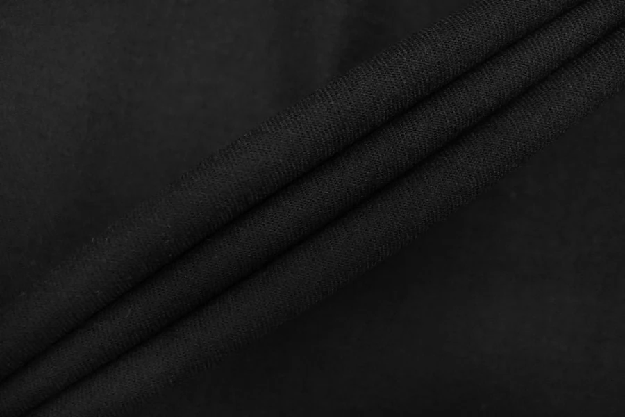 Костюмная вирджинская шерсть диагонального плетения в черном цвете. На изнанке нанесён тонкий клеевой слой. Тактильно слегка суховатая, плотная, но достаточно тонкая. Чувствуется, что шерсть, немного колется. Тянется, не просвечивает. Пластичная но при этом держит форму. Не мнется. Отличный вариант на костюмы, жакеты, платья, брюки и не только. Уход за материалом деликатный.