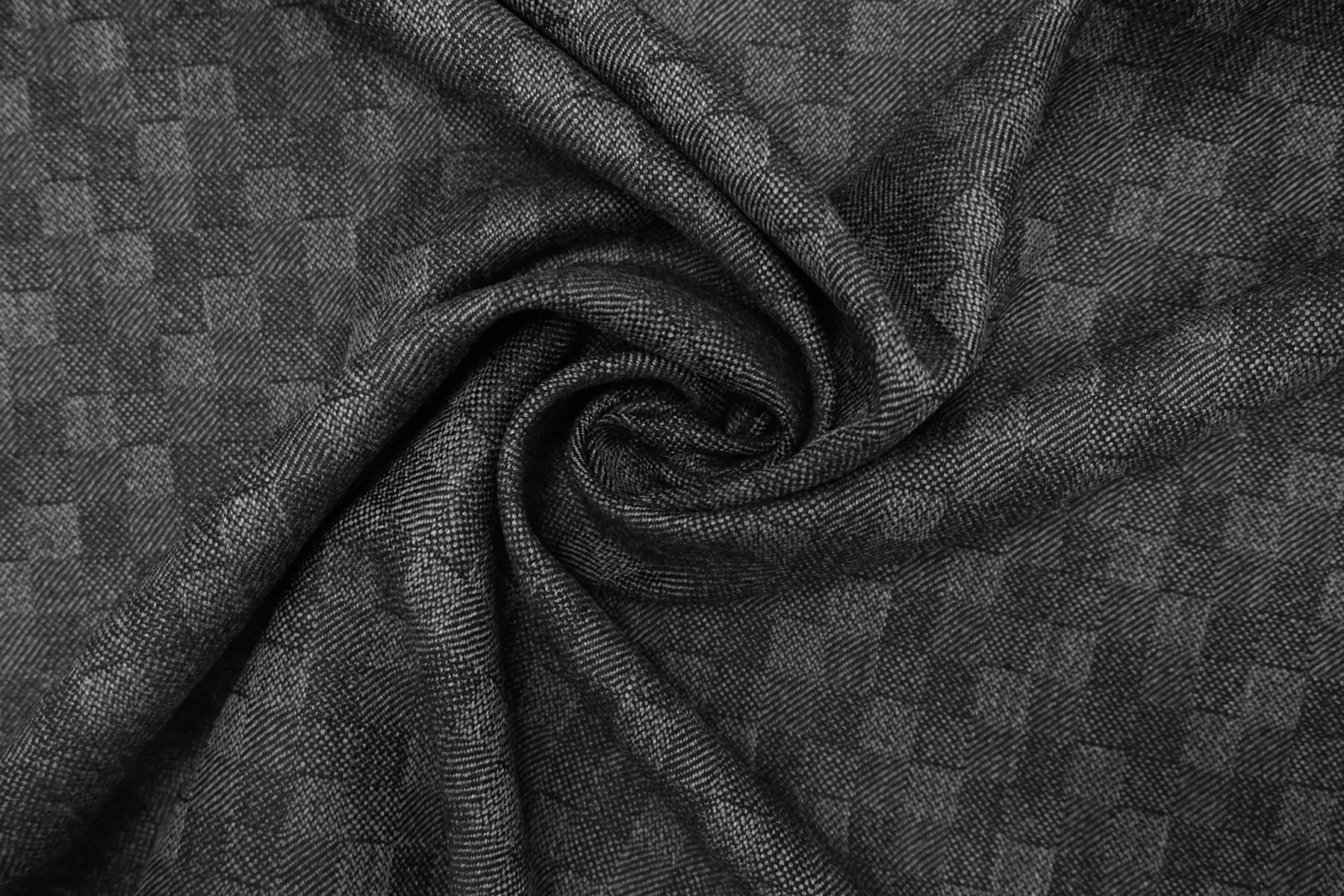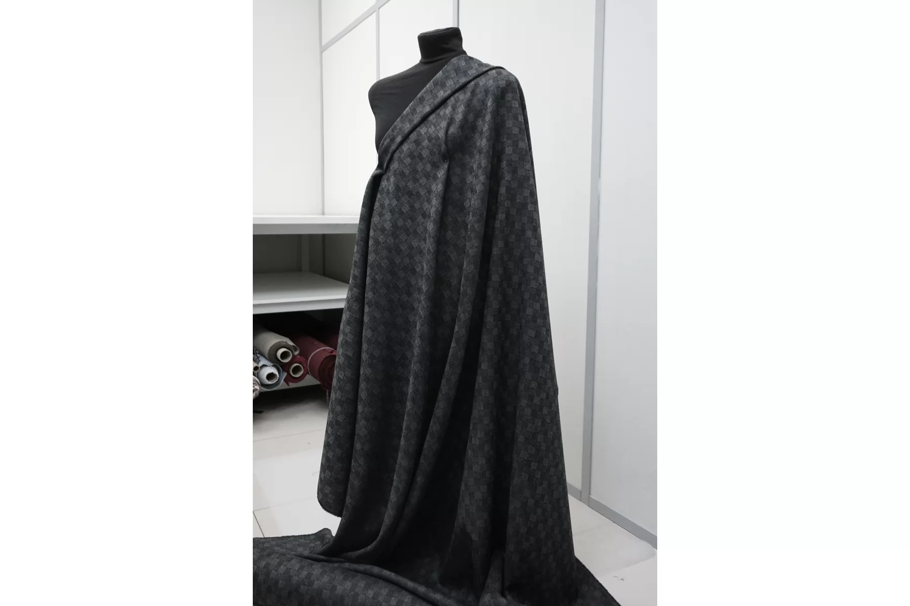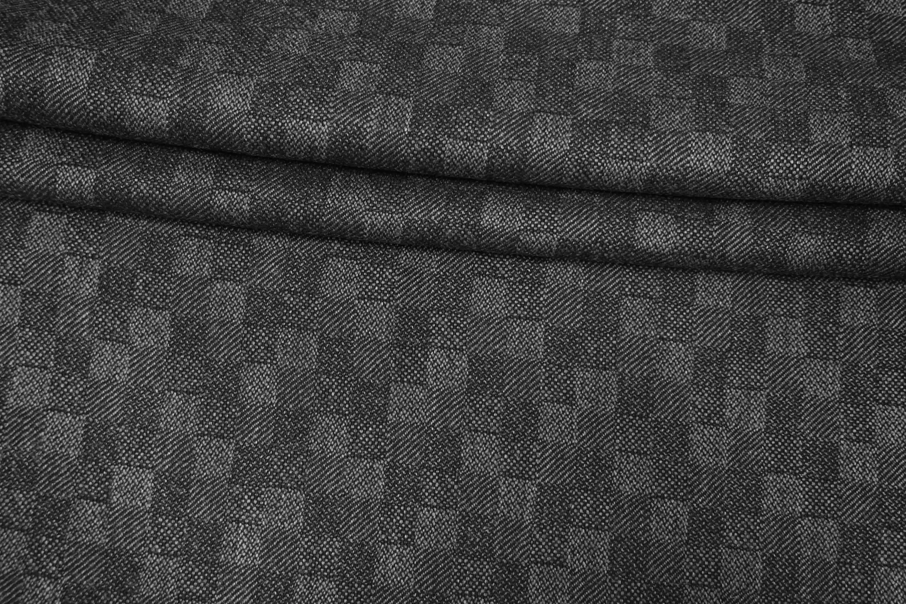Классная костюмная шерсть, нити серого и чёрного цвета, узор-клетка. Не просвечивает, не тянется. Мохер покалывает. Форму держит но при этом пластичый. Не мнется. Подойдет для пошива костюмов, юбок. Уход деликатный.
