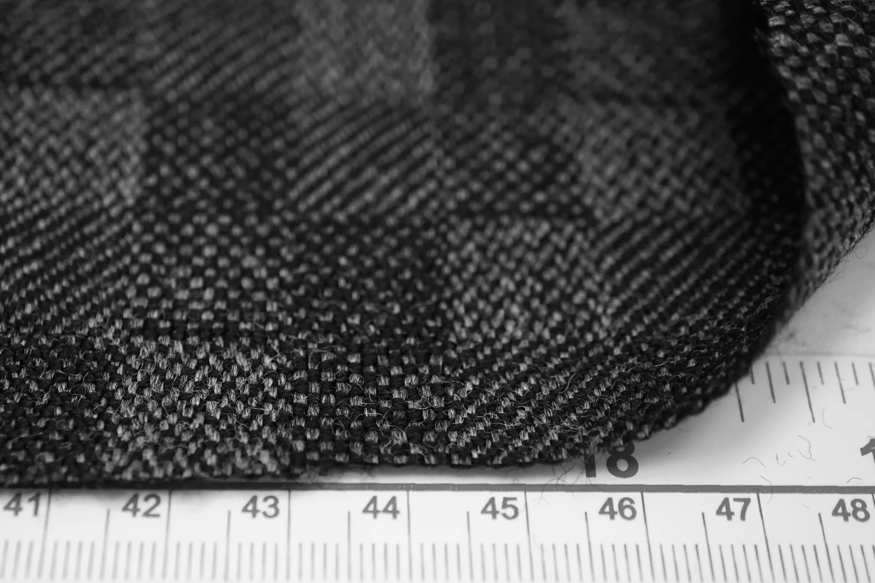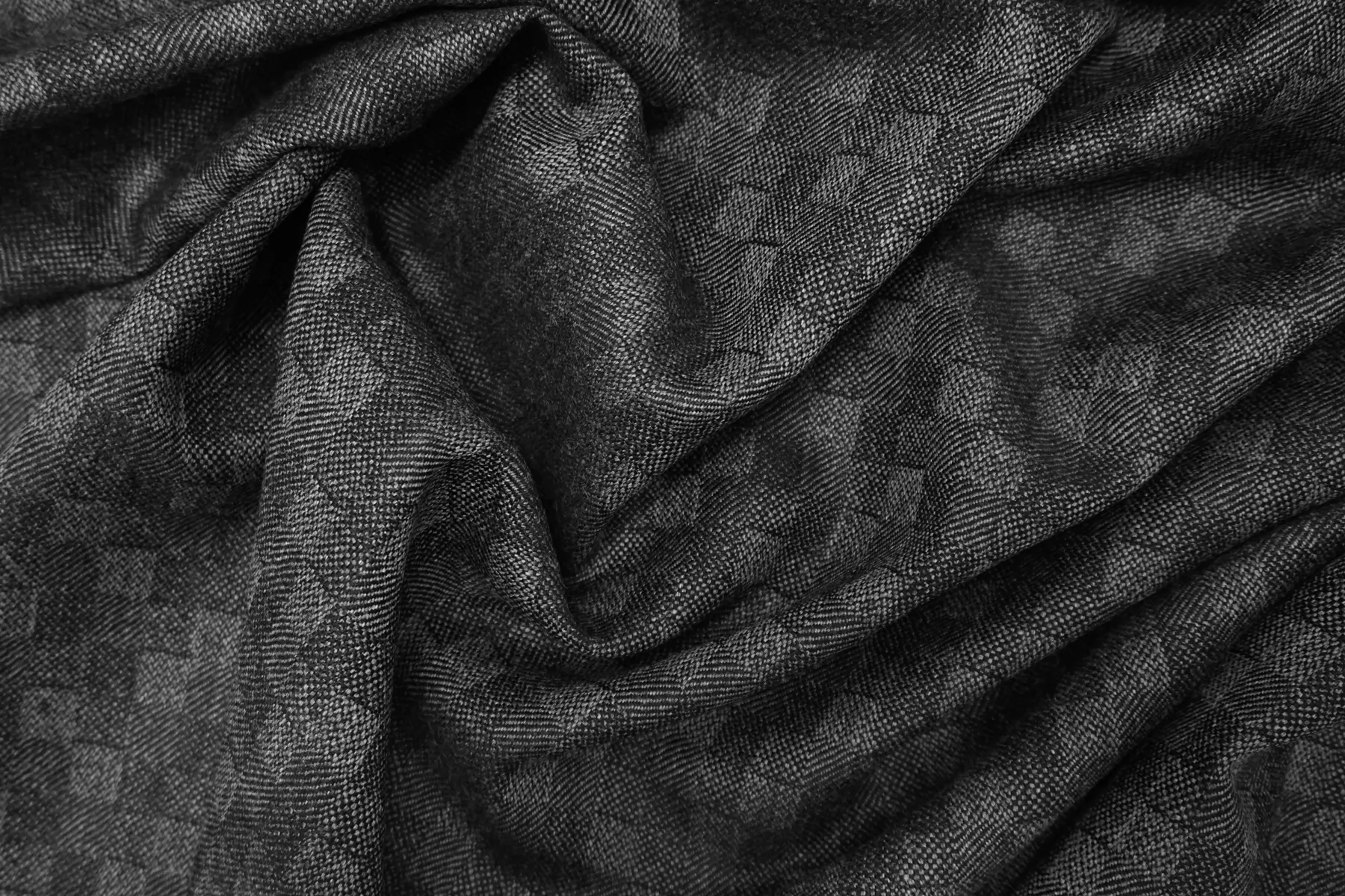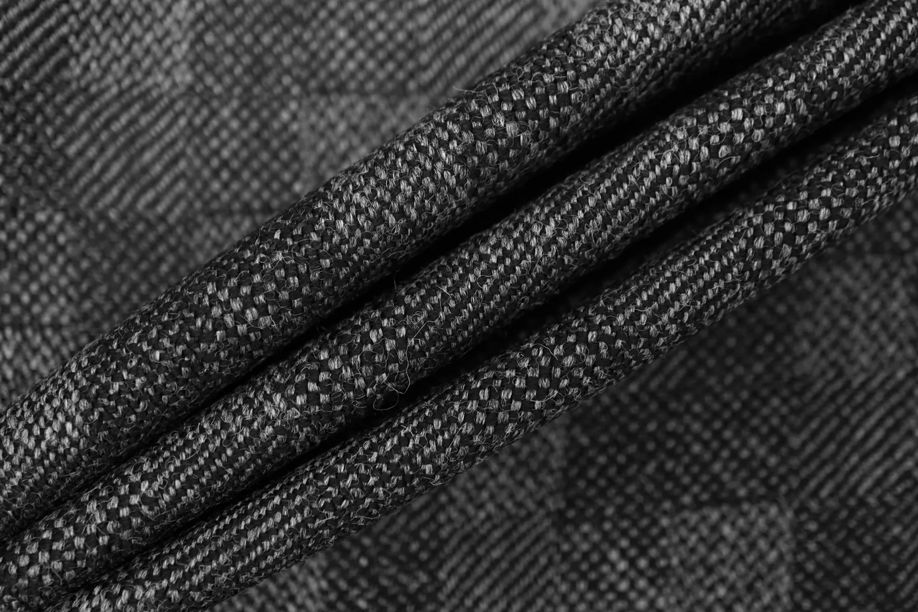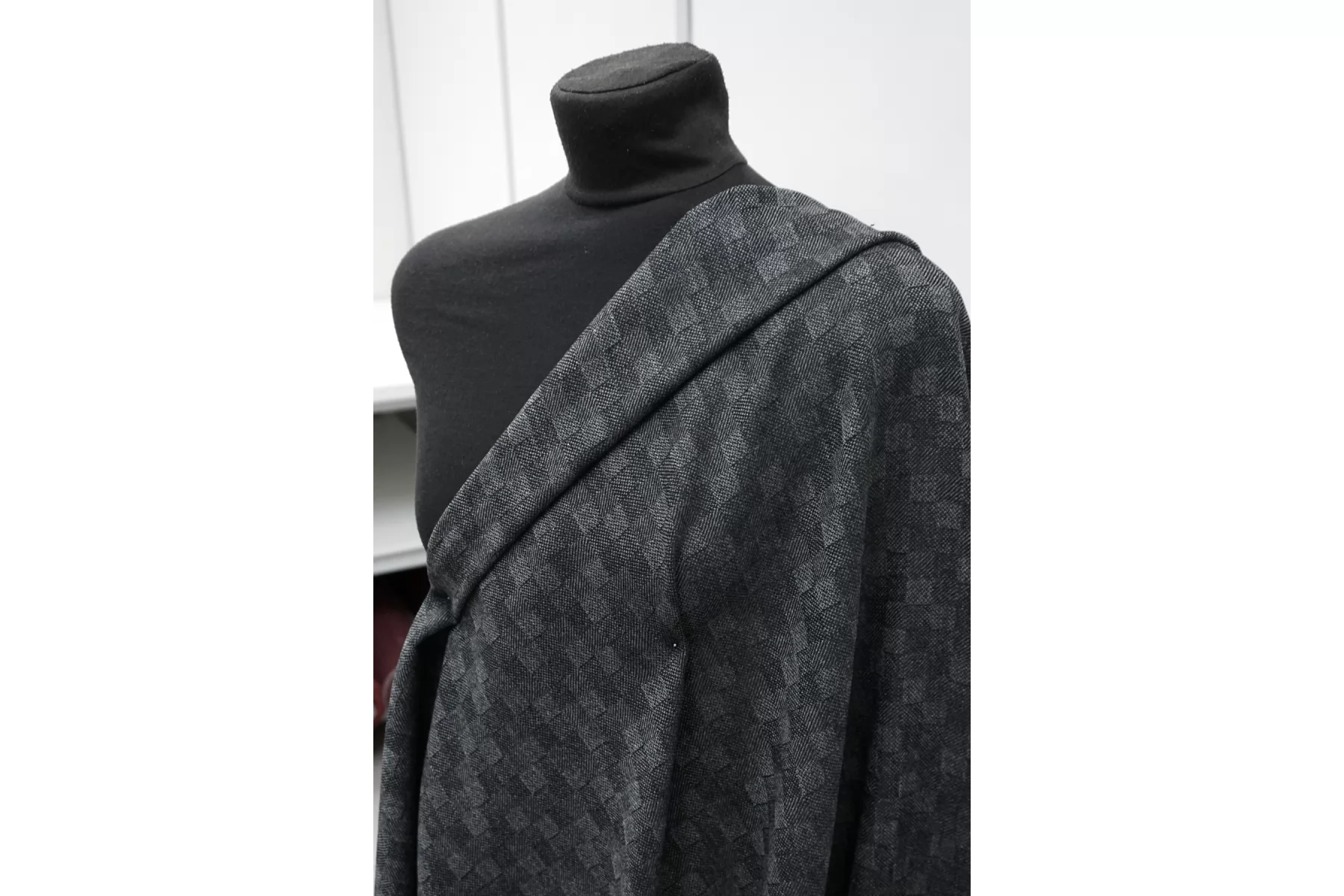Классная костюмная шерсть, нити серого и чёрного цвета, узор-клетка. Не просвечивает, не тянется. Мохер покалывает. Форму держит но при этом пластичый. Не мнется. Подойдет для пошива костюмов, юбок. Уход деликатный.