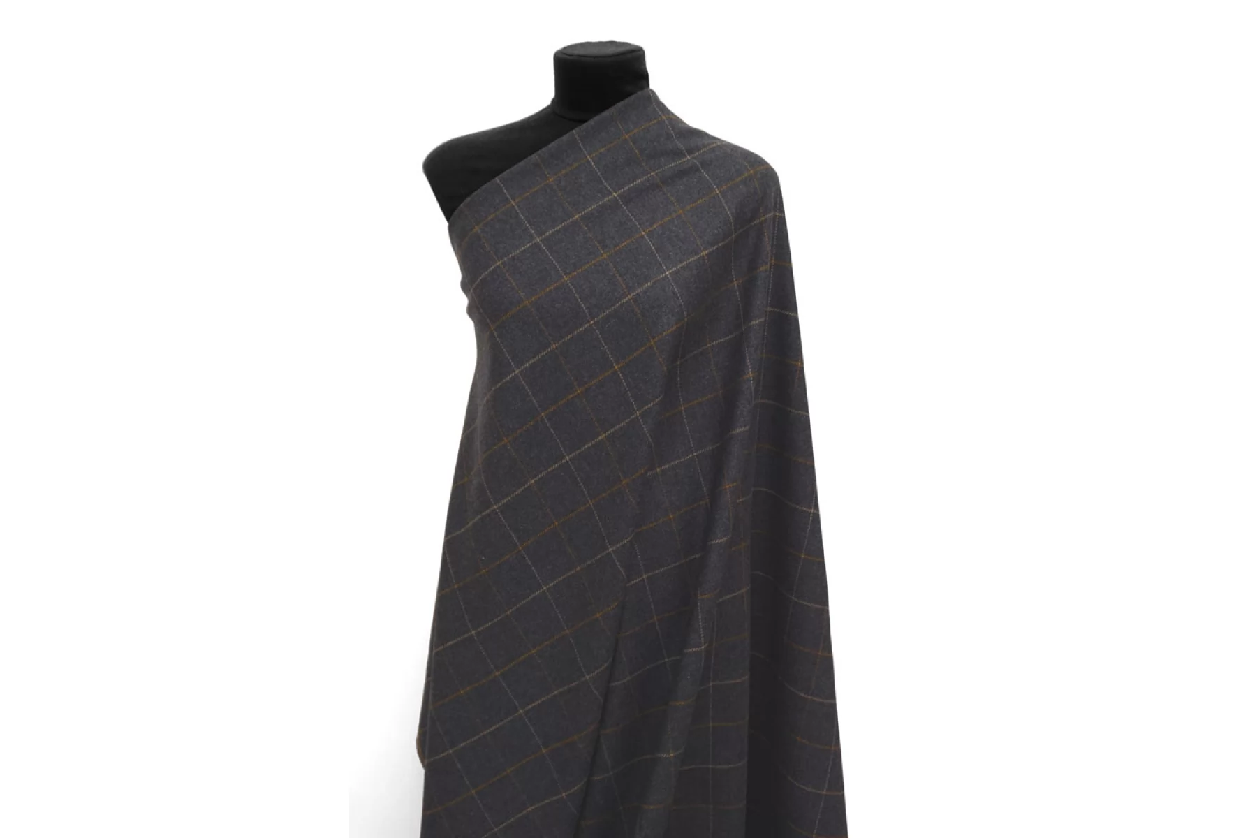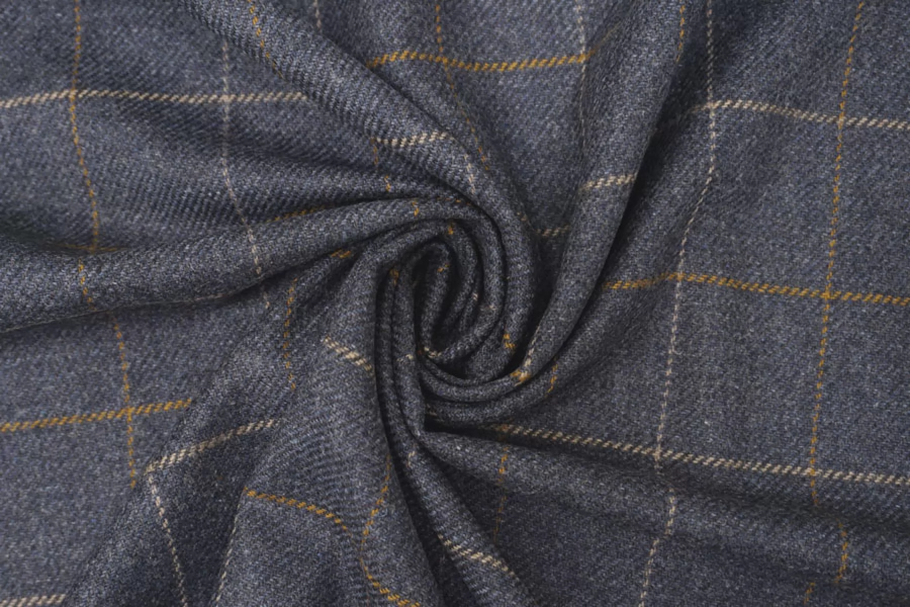 Классная костюмная шерсть серо-синего оттенка в клетку. Крупного диагонального плетения. Сухая наощупь, с очень легким ворсом. Колется. Немного просвечивает силуэт, пластичная, плотная, не тянется. С красивым лоском. Форму держит. Не мнется. Подойдет для пошива костюма, теплой рубашки, юбки. Уход деликатный.