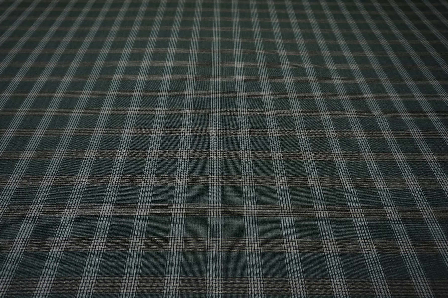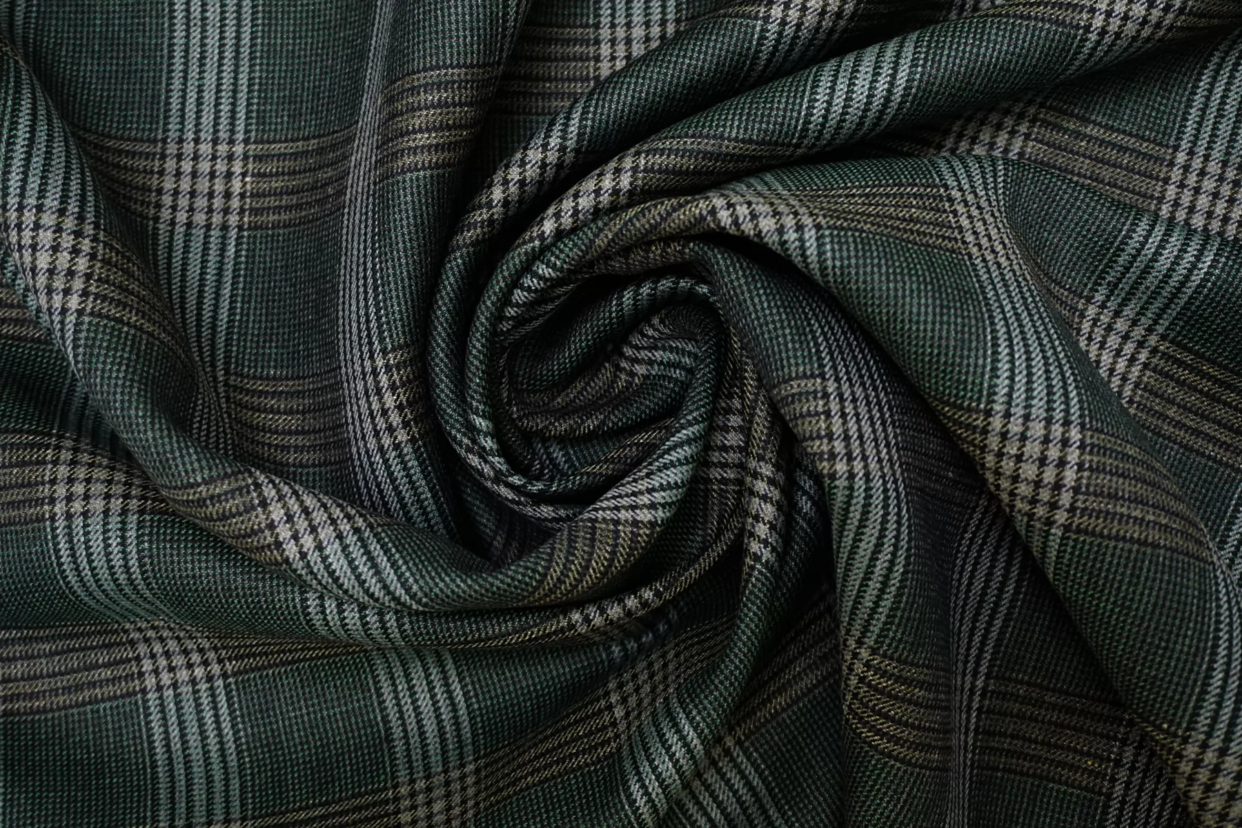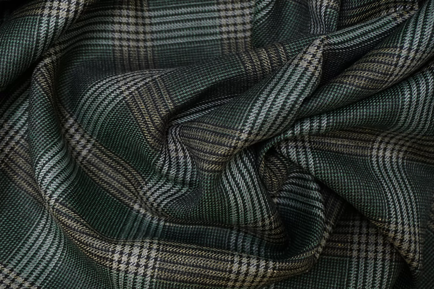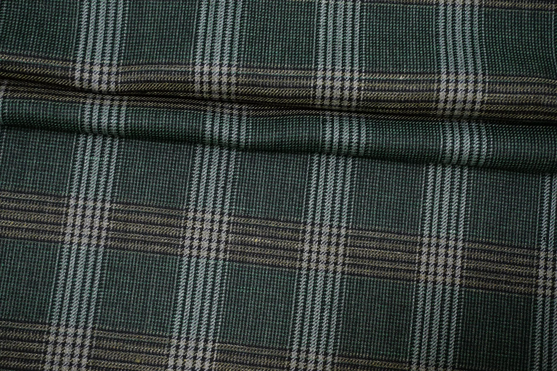 Костюмная шерсть со льном в клетку Серо-зелёная CVC H 12 FF10 21112525