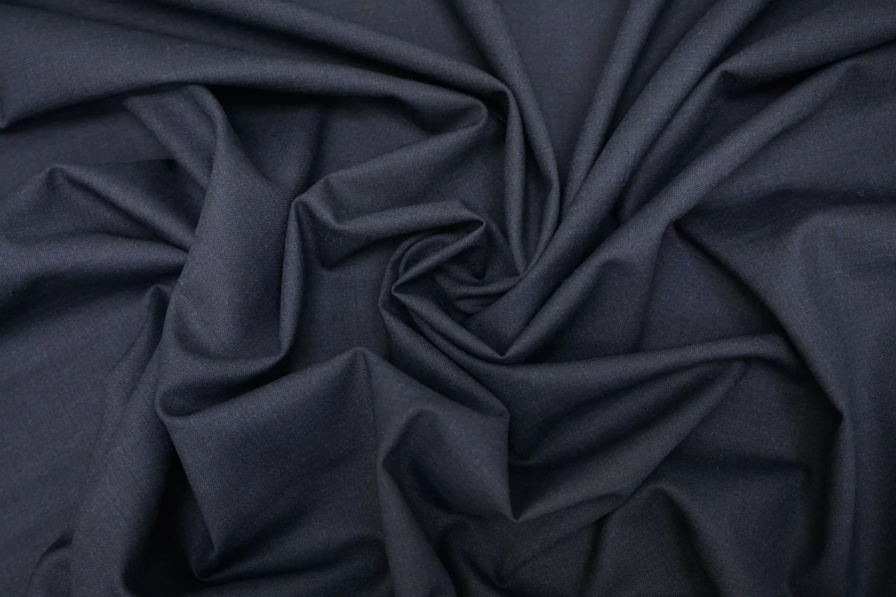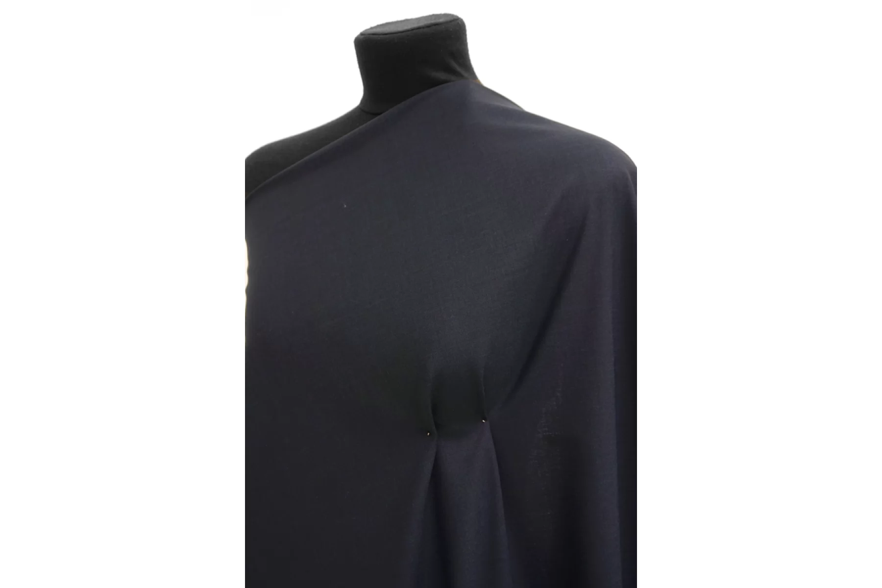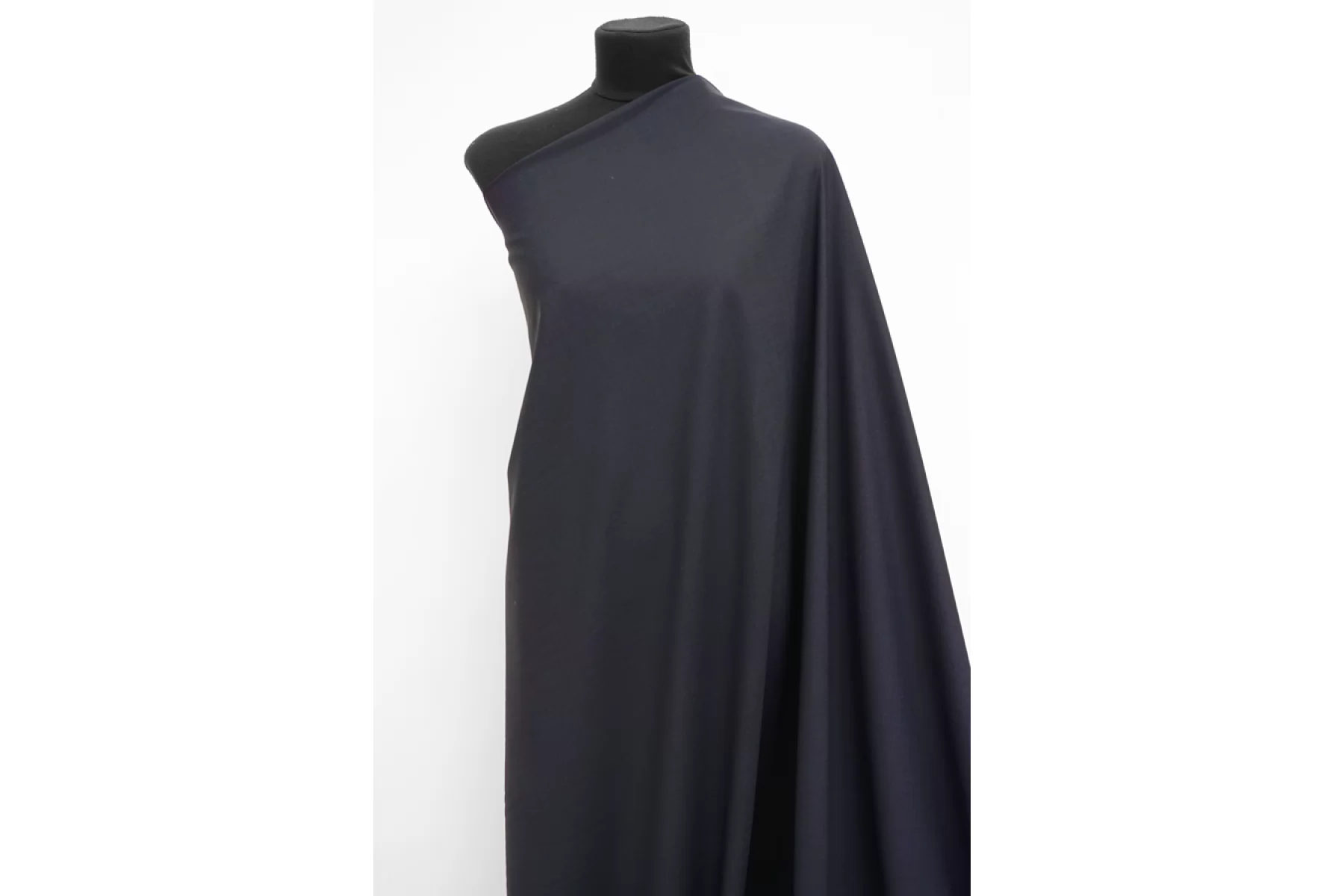 Очень классная костюмная полишерсть полотняного переплетения в иссиня-черном меланжевом оттенке. Тактильно приятная, мягкая, гладкая и пластичная. Немного чувствуется шерсть. Хорошо тянется за счет содержания эластана. Не мнется. Слегка заметен силуэт на просвет. Хорошо драпируется. Немного держит форму. Прекрасно подойдет на костюмы, платья, мягкие жакеты и не только. Полиэстер в составе добавит материалу долговечности и износостойкости. Уход за материалом деликатный. Учитывайте усадку.