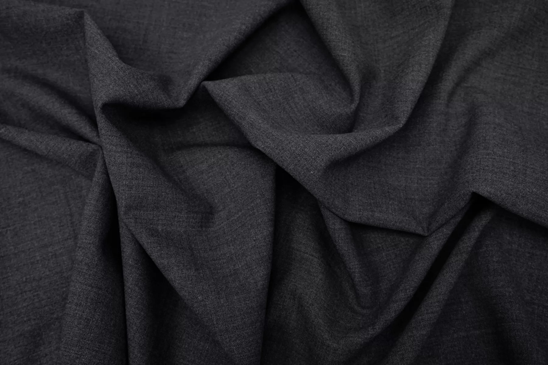 Очень классная костюмная бистрейч полишерсть полотняного переплетения в темно-сером меланжевом оттенке. Тактильно приятная, мягкая, гладкая и пластичная. Немного чувствуется шерсть. Хорошо тянется обе стороны за счет содержания эластана. Не мнется. Не просвечивает, но достаточно тонкая. Хорошо драпируется. Немного держит форму. Прекрасно подойдет на костюмы, платья, мягкие жакеты и не только. Полиэстер в составе добавит материалу долговечности и износостойкости. Уход за материалом деликатный. Учитывайте усадку.