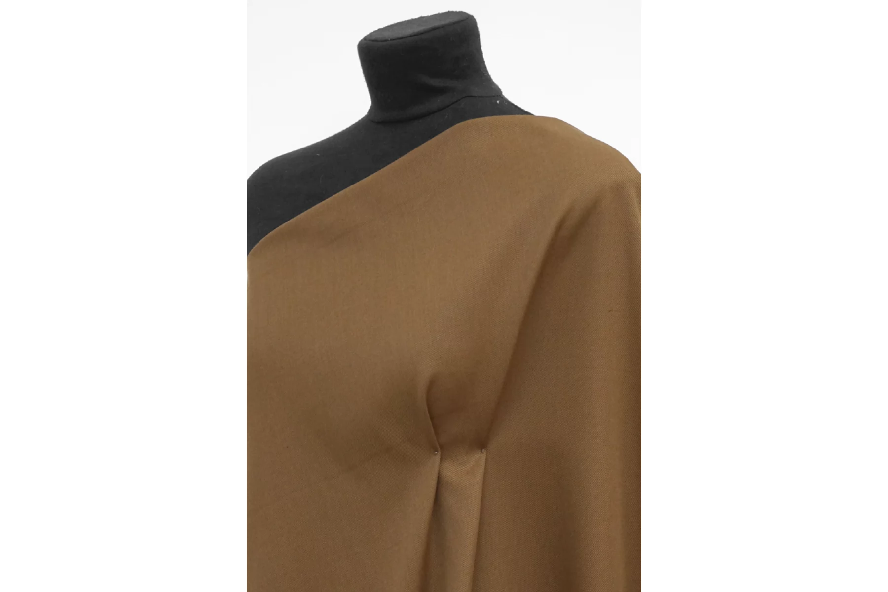 Костюмно-плательная шерсть диагонального плетения в светло-коричневом оттенке. Приятная, слегка суховата, жестковата. Чувствуется плетение наощупь. Немного колется и просвечивает. Не тянется. Не мнется. Хорошо драпируется. Форму держит слабо. Обладает легким лоском. Используем на костюмные варианты, жакеты мягкой формы, юбки и не только. При необходимости используйте подкладочный материал. Уход за шерстью деликатный.