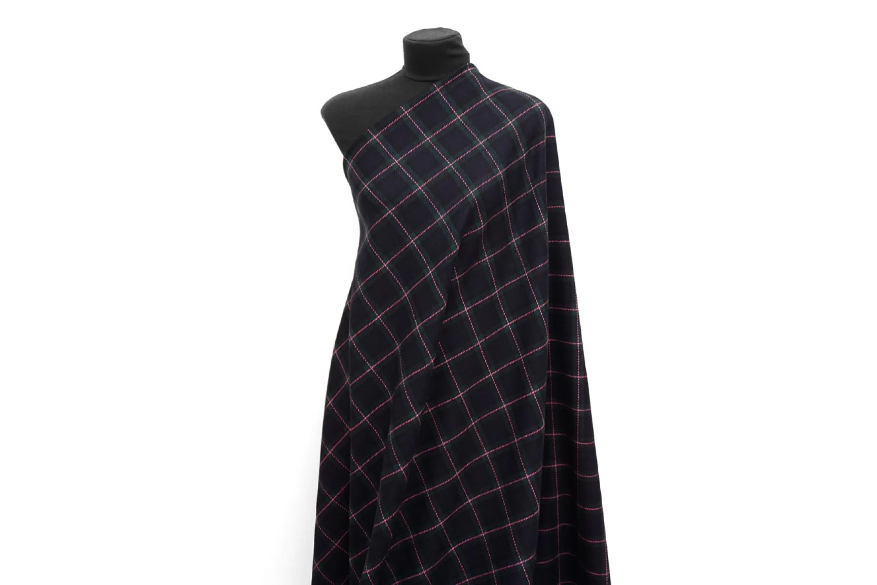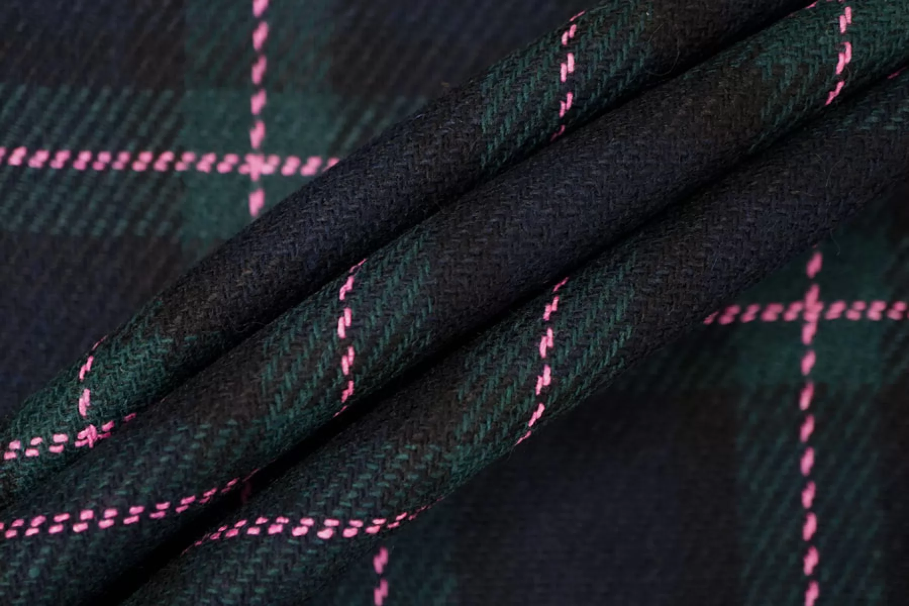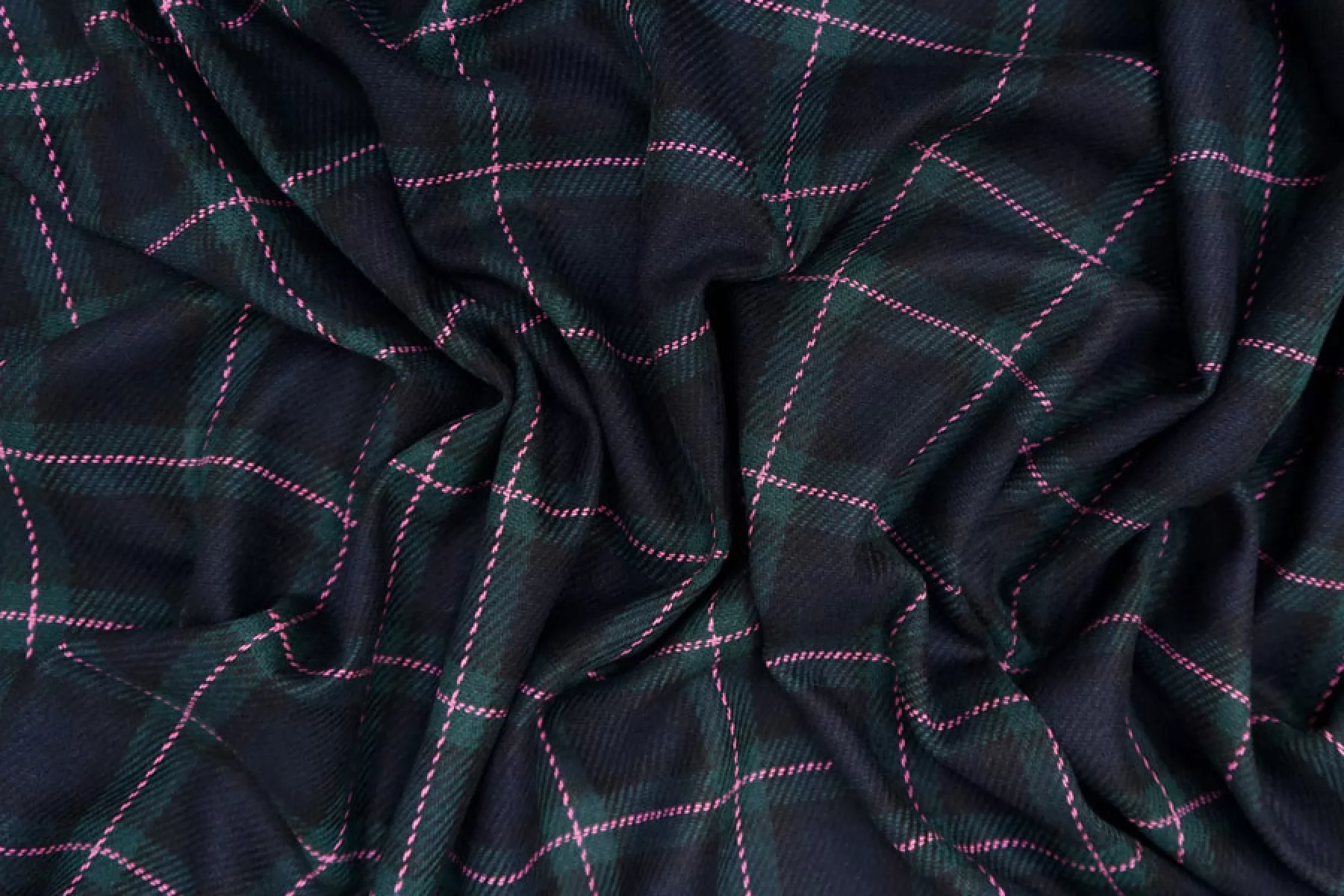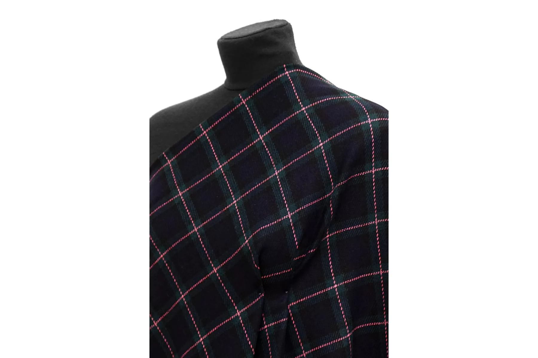 Прекрасная костюмная шерсть темно-изумрудного оттенка в крупную клетку. Тактильно шероховатая, суховатая, колется. Немножко растягивается и при этом немного просвечивает. Не мнется. Обладает легким лоском. Пластичная. Хорошо драпируется и держит форму. Шьем костюмы или теплые рубашки. Уход деликатный.