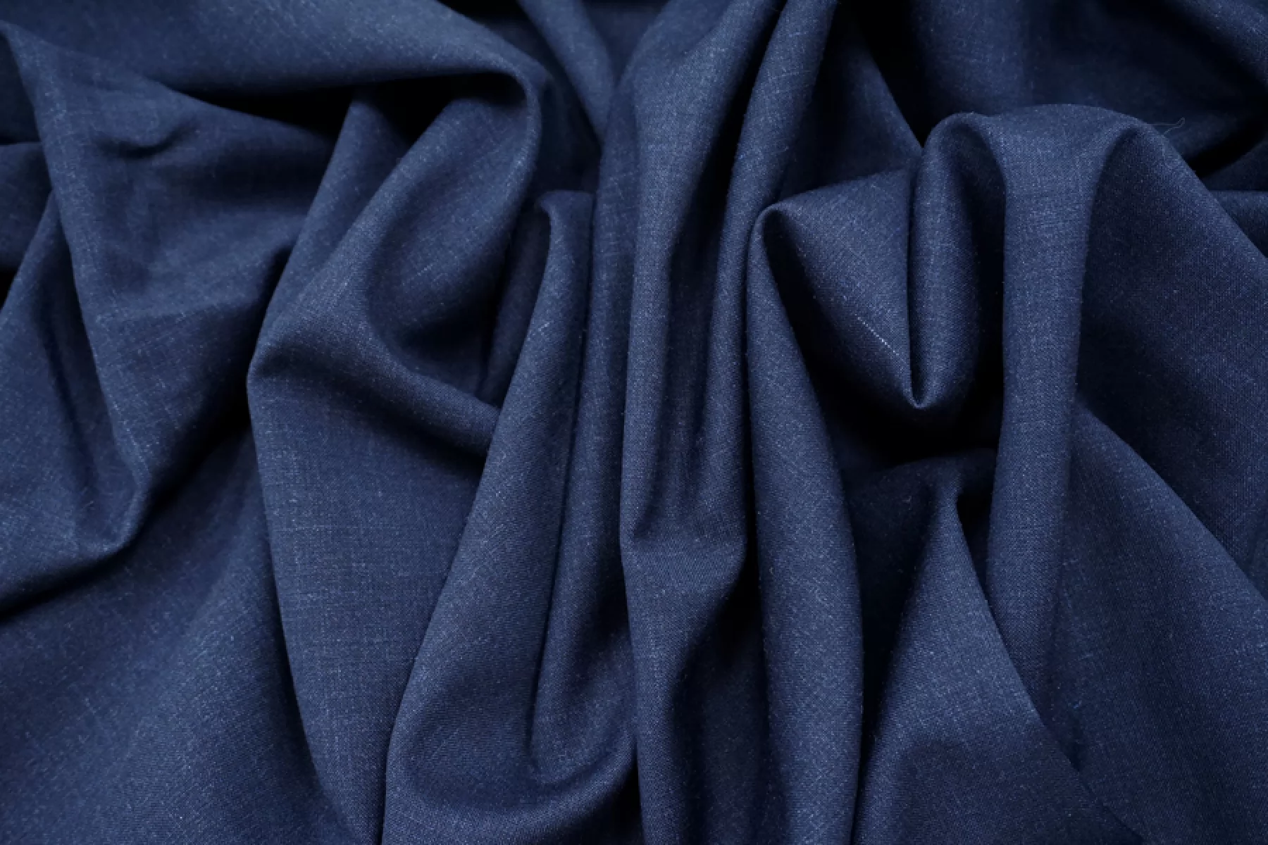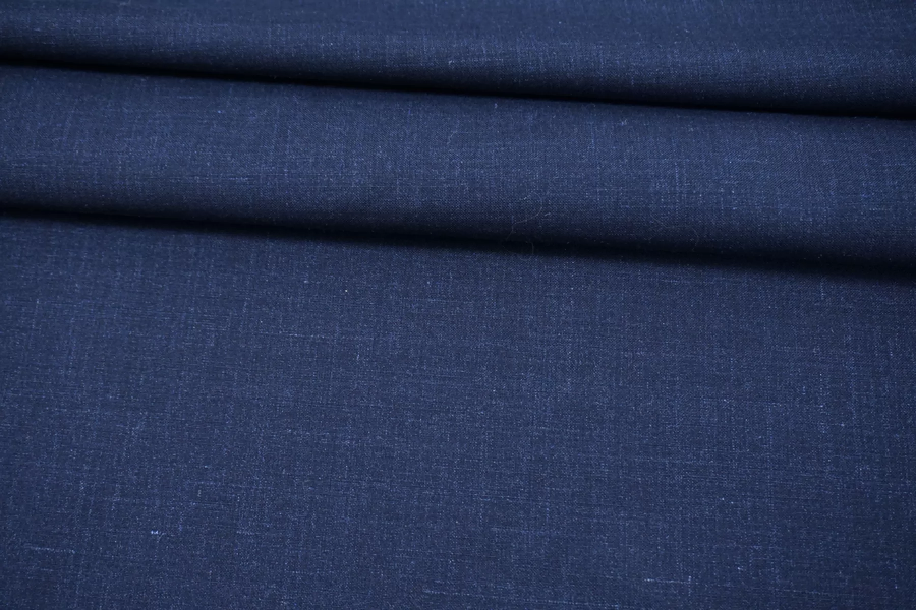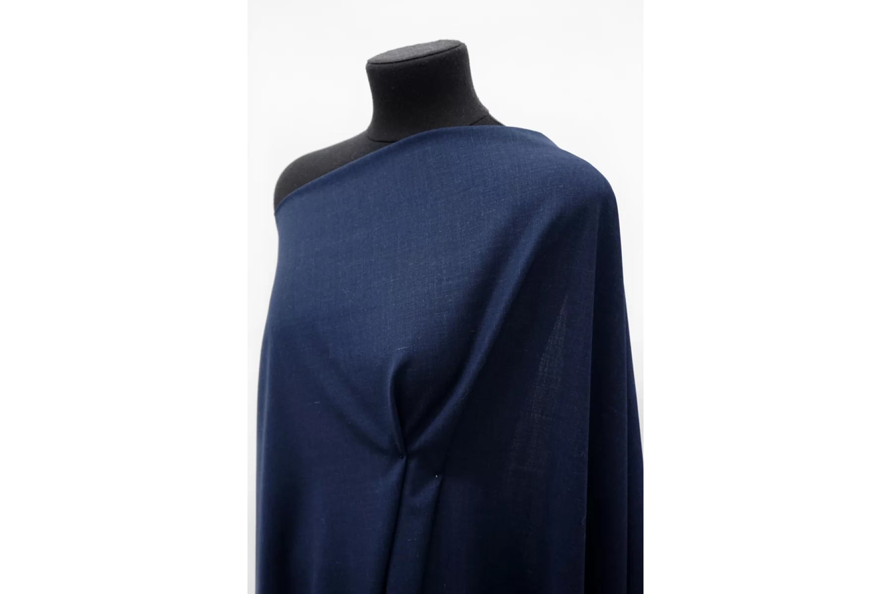 Итальянская тонкая костюмная шерсть в темно-синем цвете. Немного просвечивает, пластичная, не тянется, достаточно плотная, тактильно приятная. Подойдет для пошива мягкого жакета, брюк, платья, юбки, костюма.