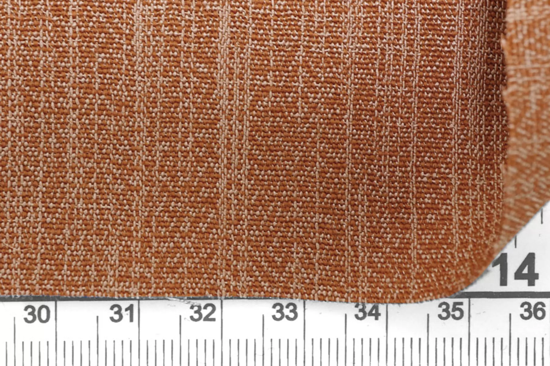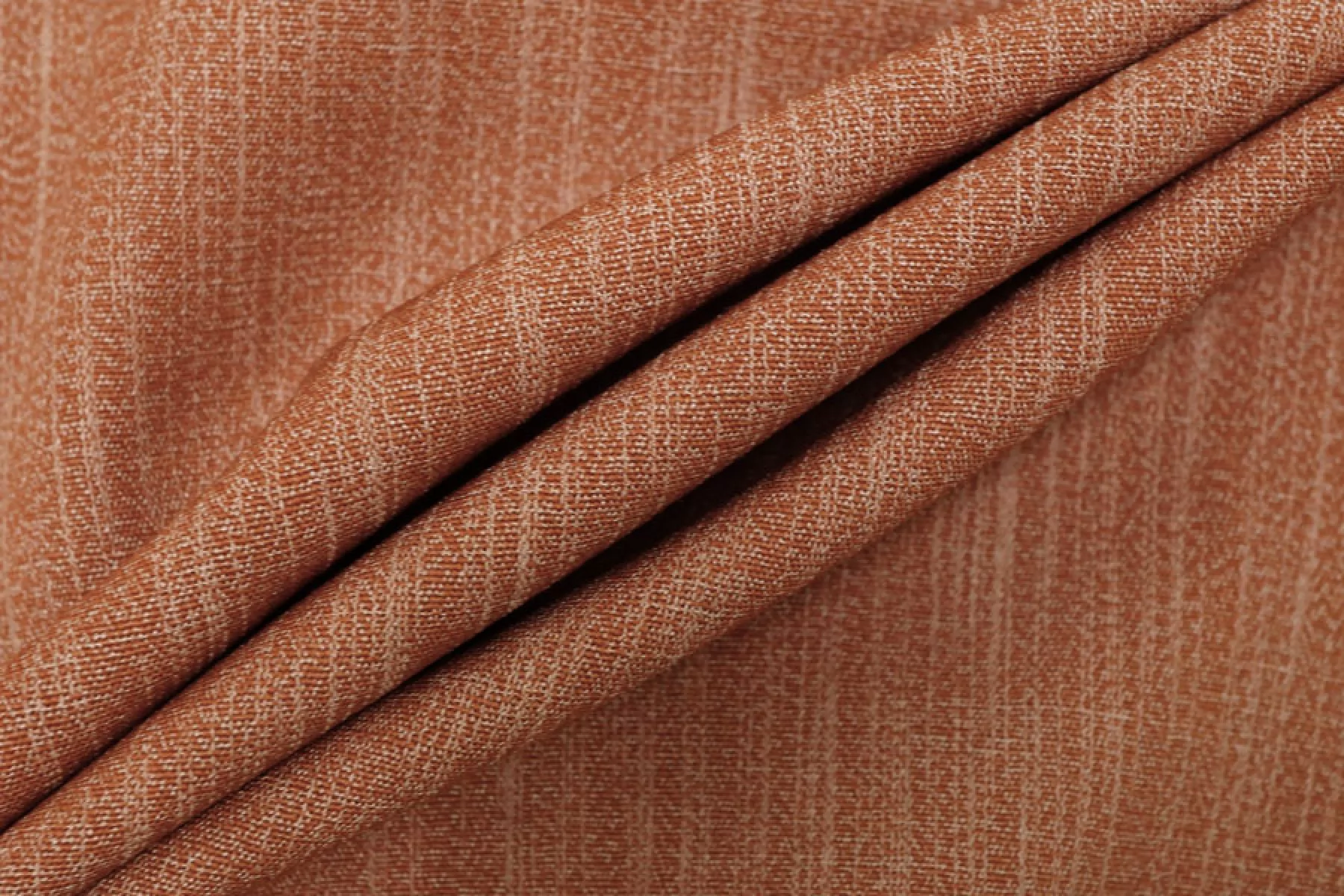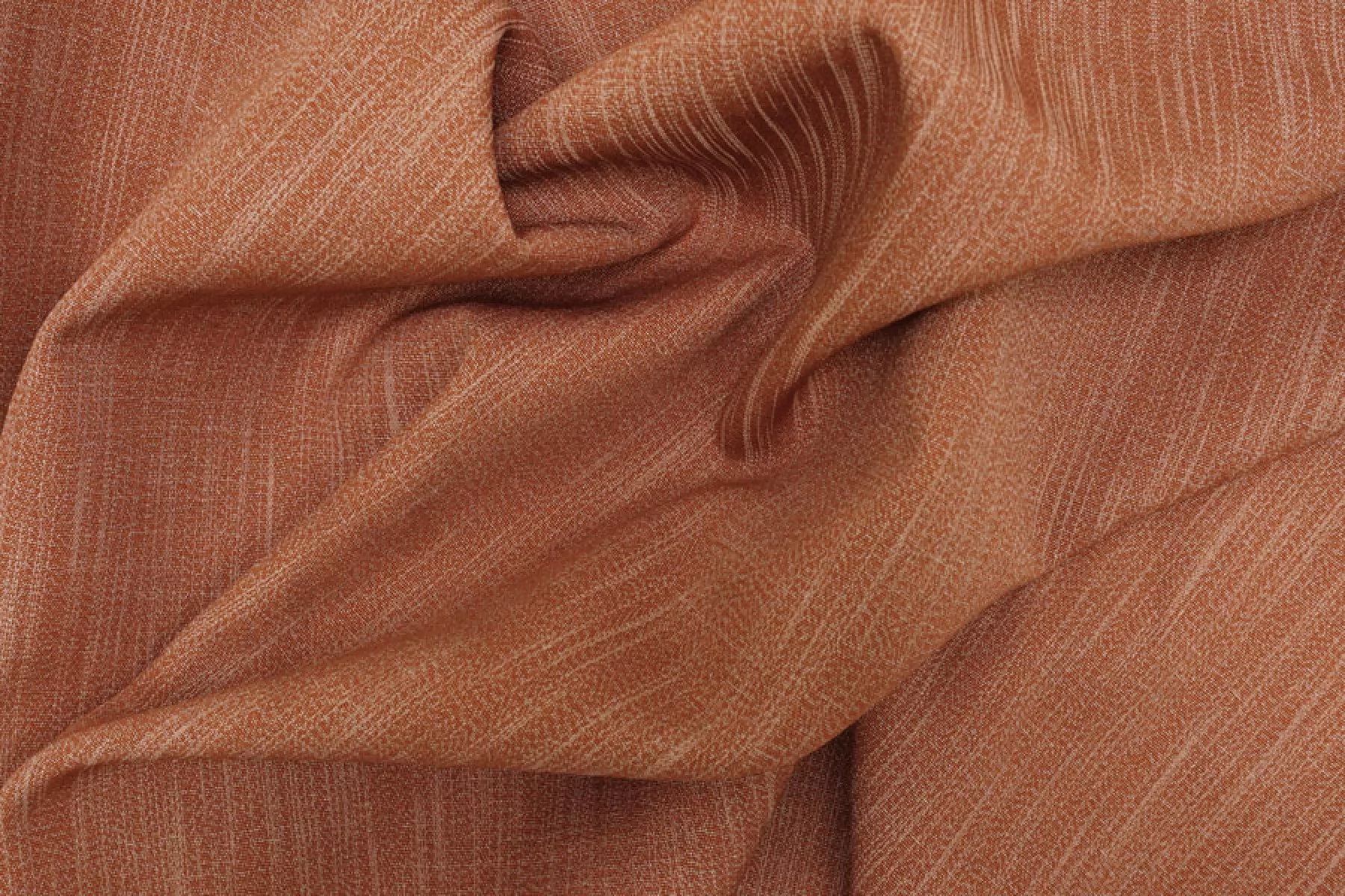 Очень интересная шерсть с вискозой костюмной плотности в приятном светло-терракотовом оттенке. Переплетение нитей терракотового и бледно-террактового оттенка образуют полоски вдоль полотна. Тактильно гладка, слегка как-будто креповая. Плотная, хотя пластичная и не толстая. Немного светит. Не мнется. Форму не держит. Шьем зимние платья, юбки, брюки, мягкие жакеты. Уход деликатный.