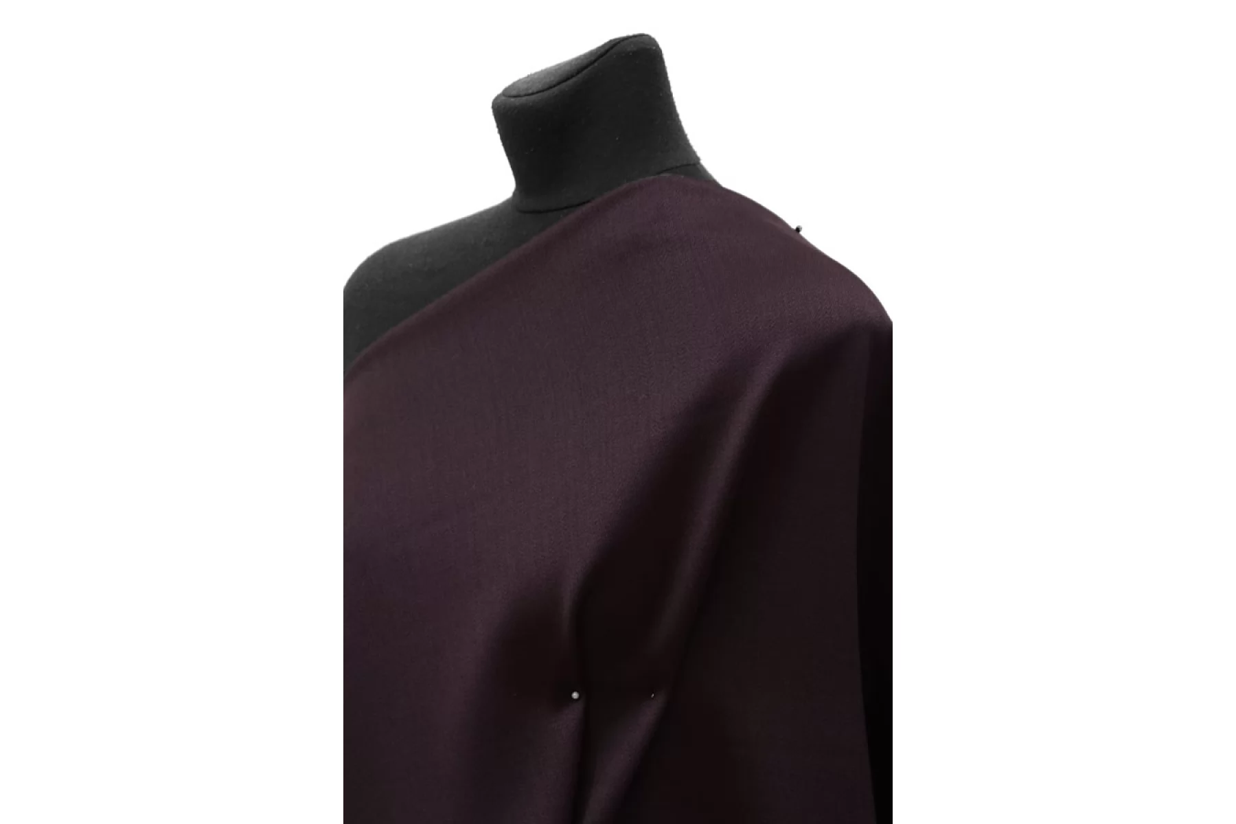 Плотная костюмная вирджинская шерсть в глубоком, тёмно-сливовом оттенке. Плетение диагональное. Тактильно суховатая, чувствуется, что шерсть, приятная, гладкая, увесистая. Обладает лёгким красивым лоском. Не просвечивает. Совсем слегка тянется-пружинит плетение. Хорошо драпируется и держит форму. Не мнется. Отличный вариант на жакеты, пиджаки, брюки и костюмные варианты. Уход за шерстью деликатный.