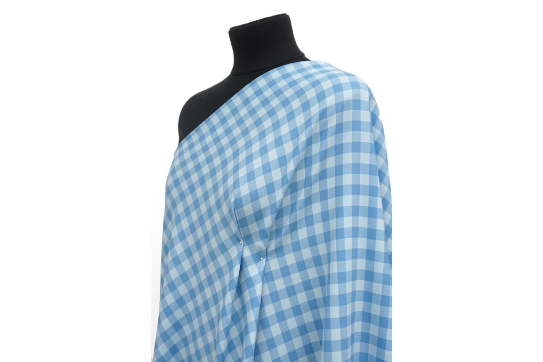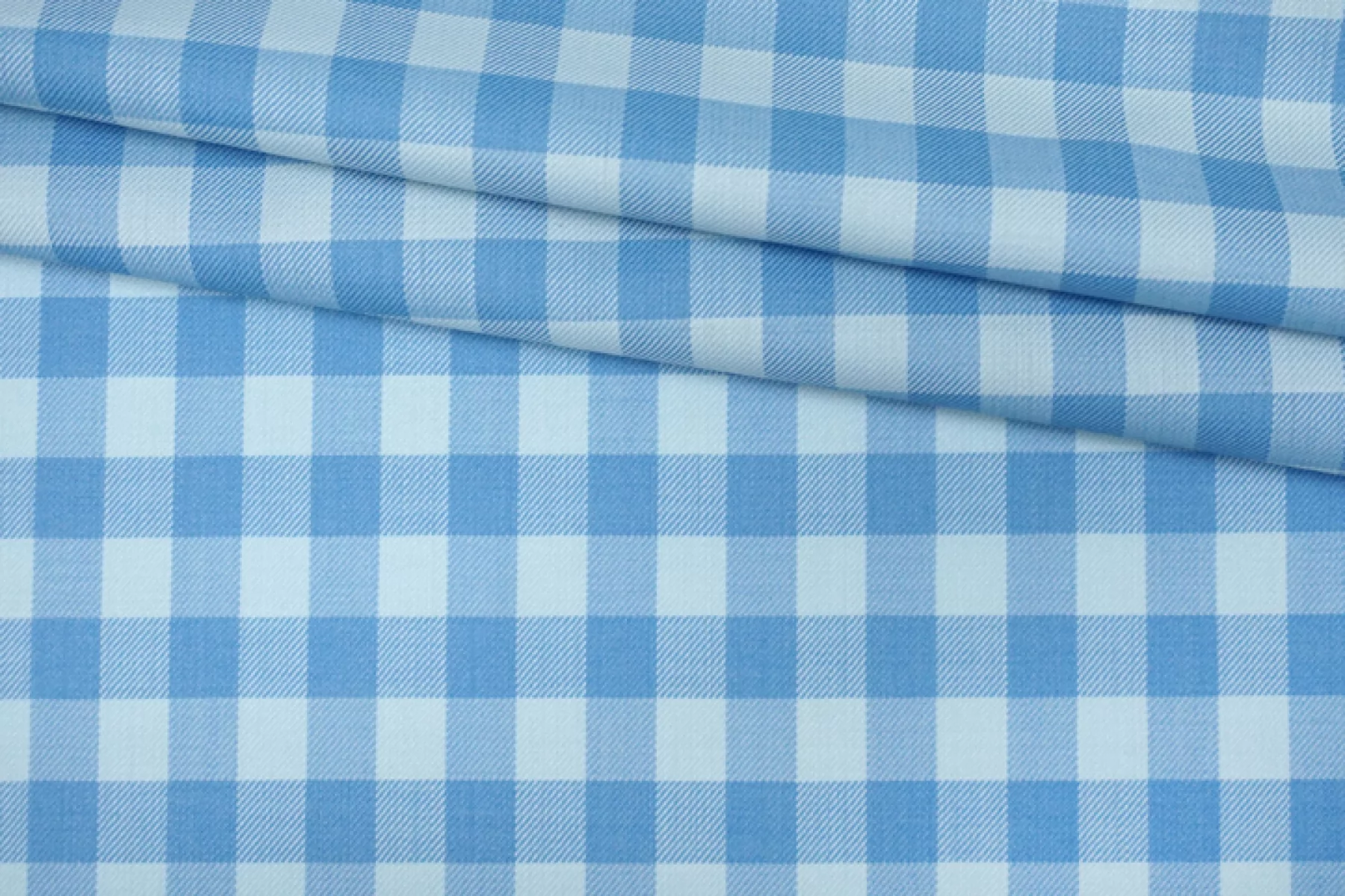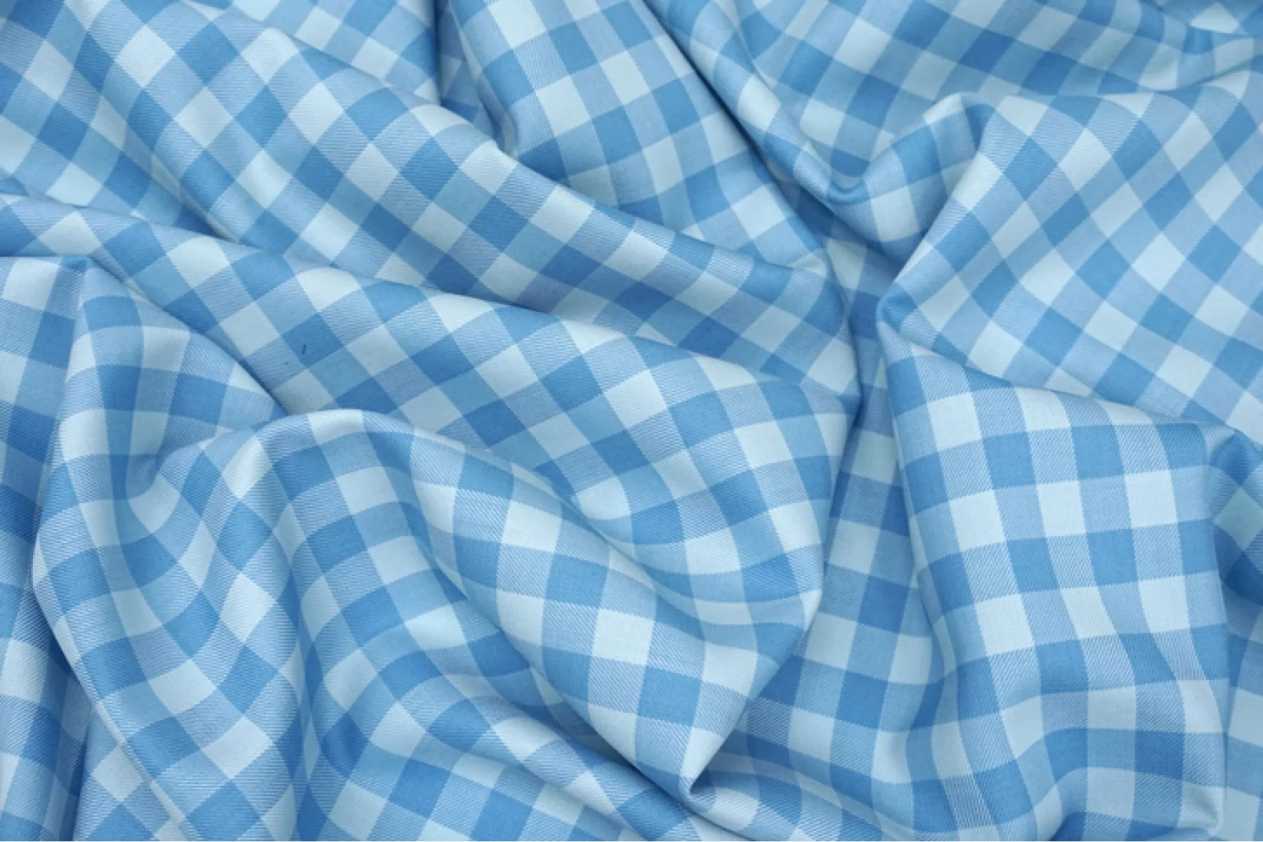 Прекрасная позиция: пестротканная шерсть диагонального в некрупную клетку из нитей нежно-голубого и голубого оттенков. Шерсть тактильно очень приятная, прохладная, не колется и не мнется. Материал не очень плотный. Не тянется и не просвечивает. Красива в складках. Отличный вариант для платьев и рубашек. Уход за материалом деликатный.