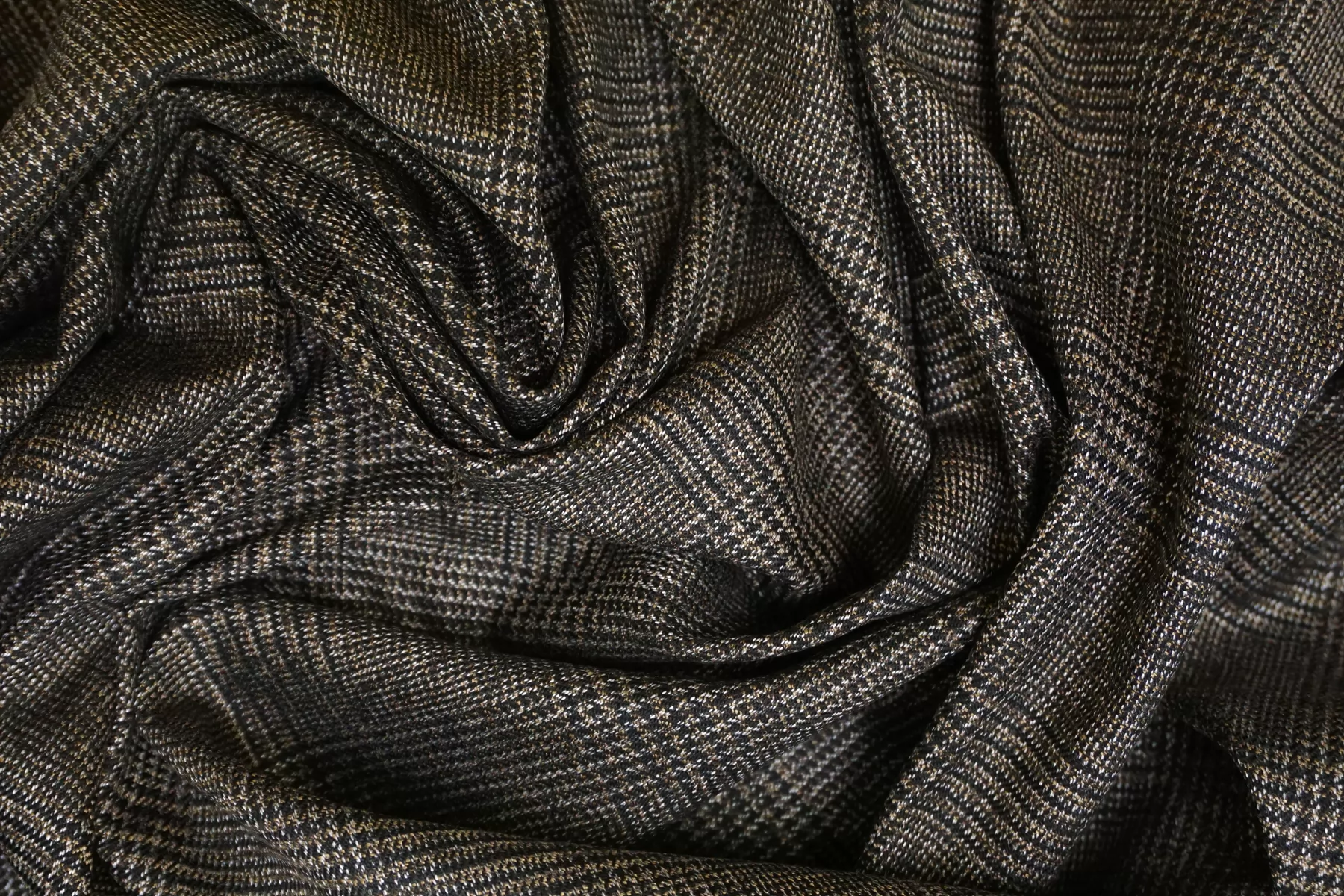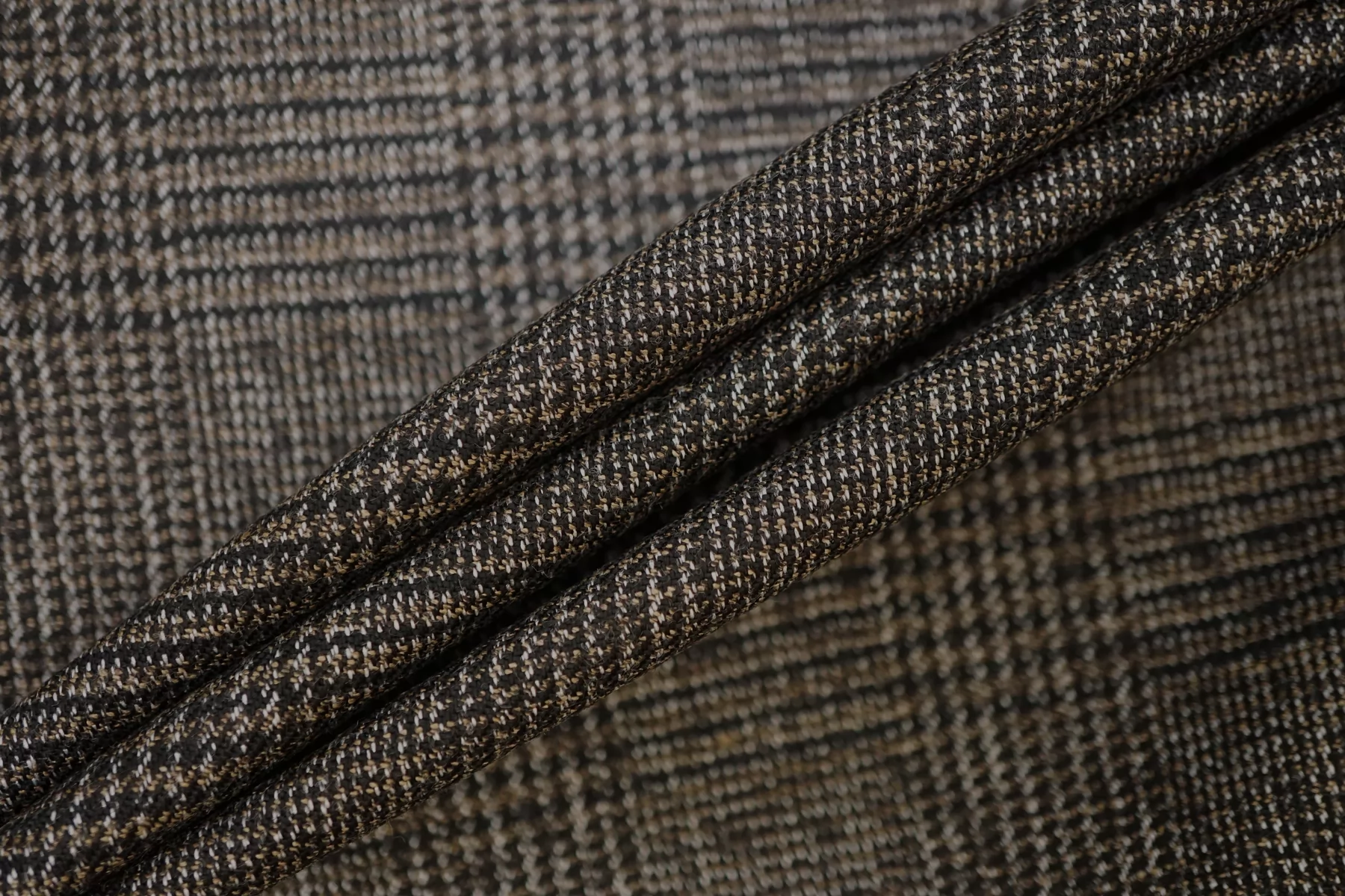 Костюмная шерсть в клетку и гусиную лапку Чёрно-коричневая TRC H60/1 FF40 11122551