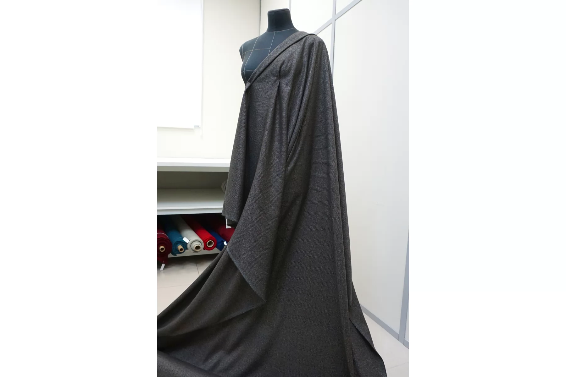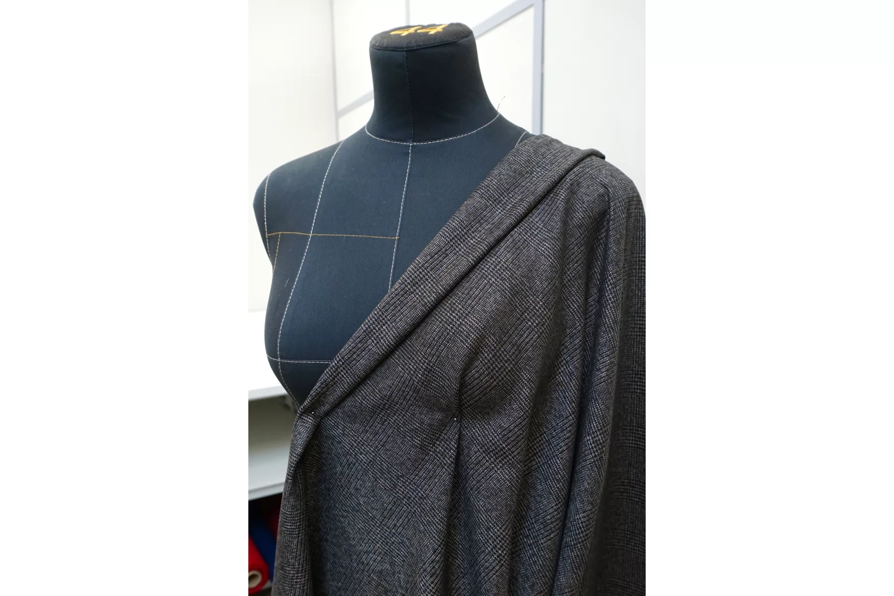 Прекрасная костюмная шерсть, с узором-клеткой и гусиной лапкой, нити чёрного, коричневого и серого цвета. Тактильно приятная, мягкая. Немного тянется. Не мнется. Пластичная. Хорошо драпируется и держит форму. Шьем теплые костюмы, платья, юбки, теплые рубашки верхнего слоя. Уход деликатный.