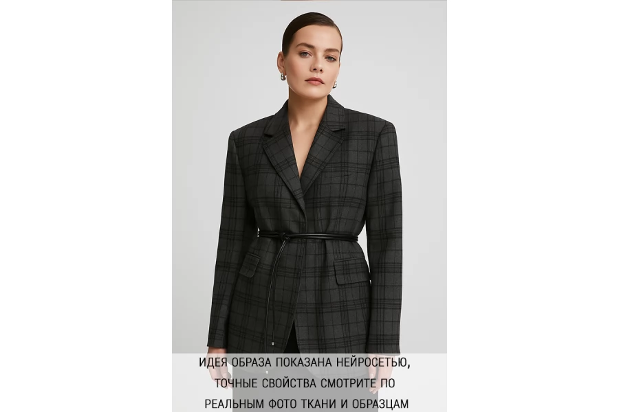 Шикарная плотная костюмная шерсть в крупную клетку серого цвета. С легким прижатым ненаправленным ворсом Материал мягкий, приятный и совсем немного суховатый и немного колется. Не тянется. Не просвечивает, отлично держит форму. Обладает приятным лоском. Красив в складке, своей пластике и драпировке. Шьем утепленные жакеты, костюмы, облегченный пальто, куртки-рубашки и другое. Уход - деликатный.