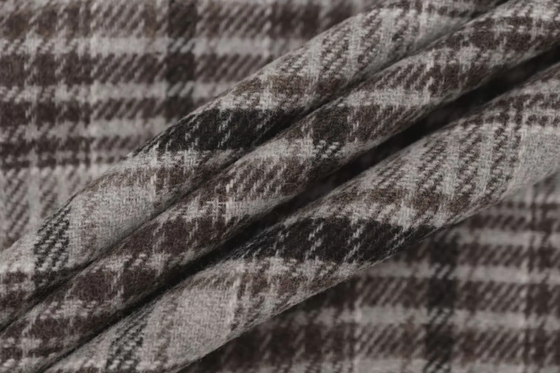 Шикарная костюмная шерсть диагонального плетения серого цвета в крупную клетку. Тактильно приятная, очень мягкая, с легким ворсом, немного суховатая, не колется. Немного тянется и немного просвечивает силуэт. Не мнется. Обладает легким лоском. Пластичная. Хорошо драпируется и держит форму. Шьем костюмы или теплые рубашки.. Уход деликатный.