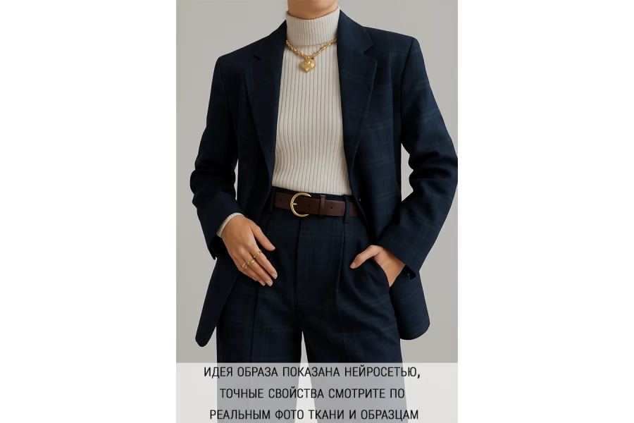 Шикарная костюмная шерсть диагонального плетения зеленого и темно-синего цвета в крупную клетку. Тактильно шероховатая, немного суховатая, колется. Не тянется и немного просвечивает силуэт. Не мнется. Обладает легким лоском. Пластичная. Хорошо драпируется и держит форму. Шьем костюмы, мягкие жакеты или теплые рубашки.. Уход деликатный.