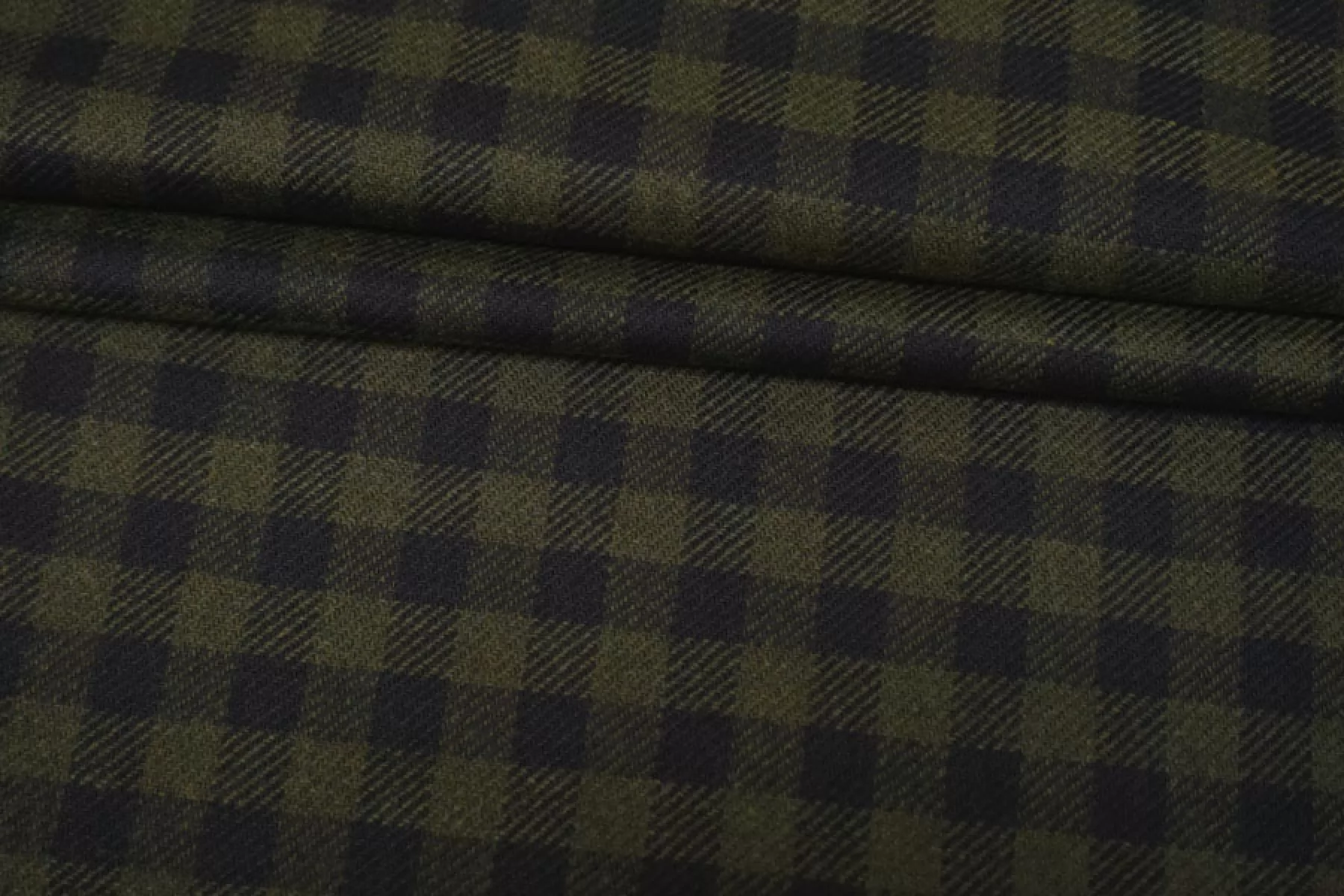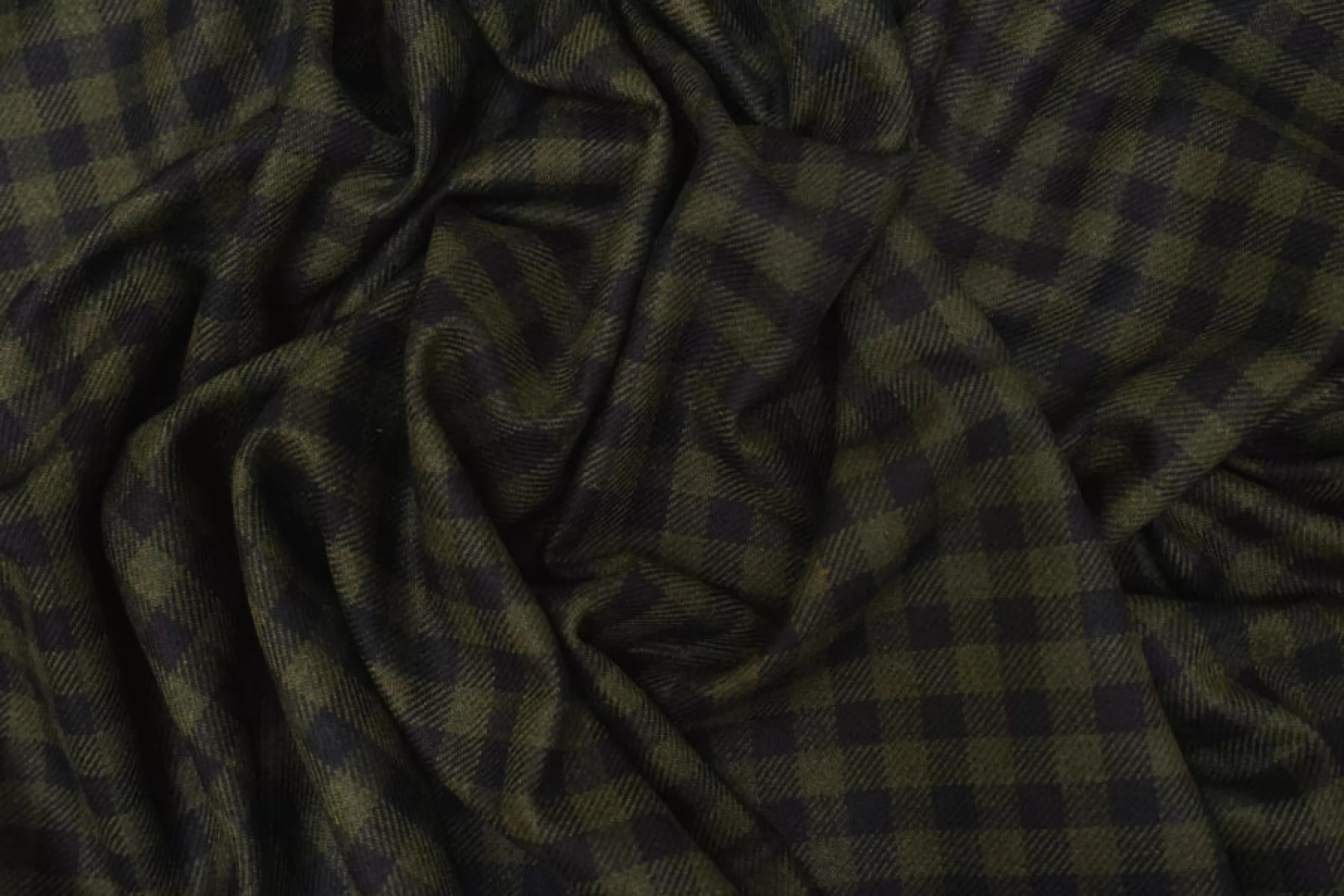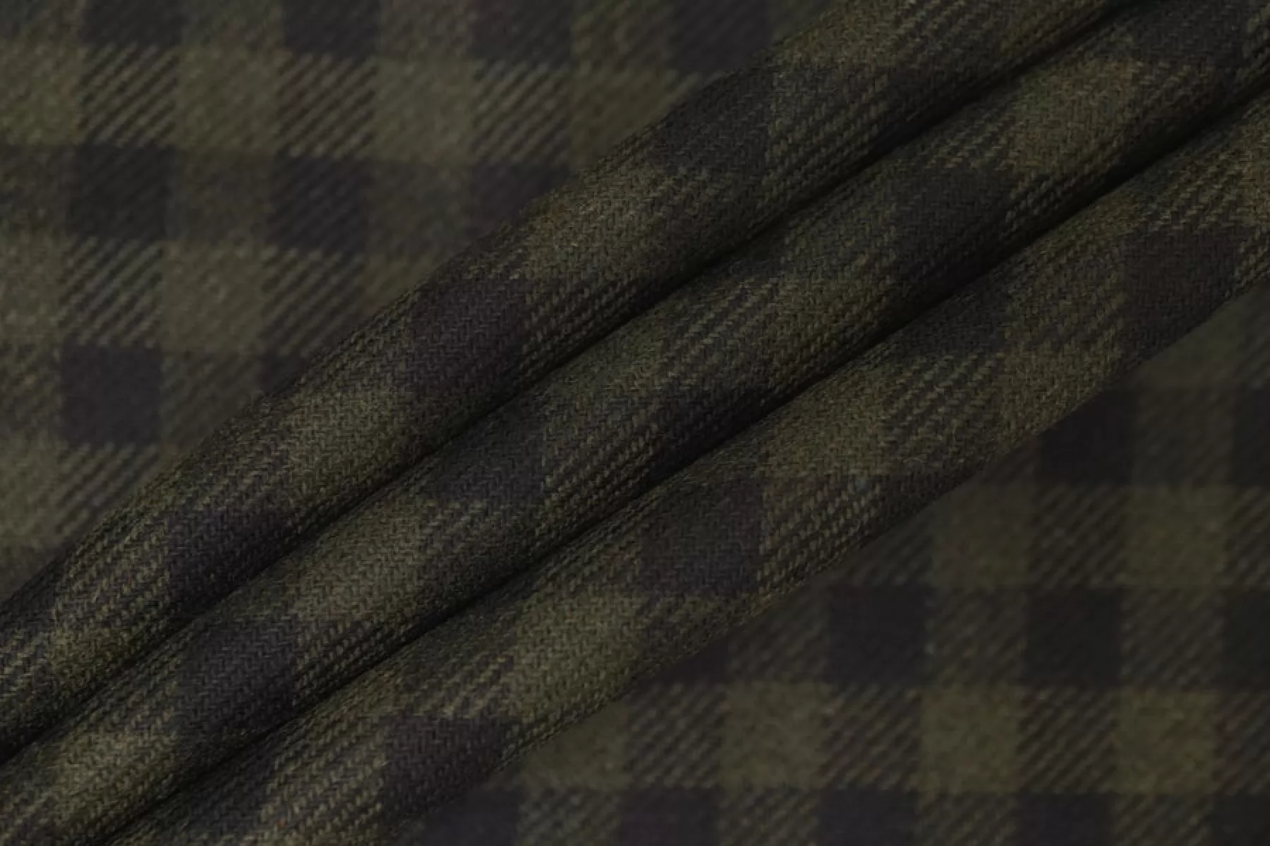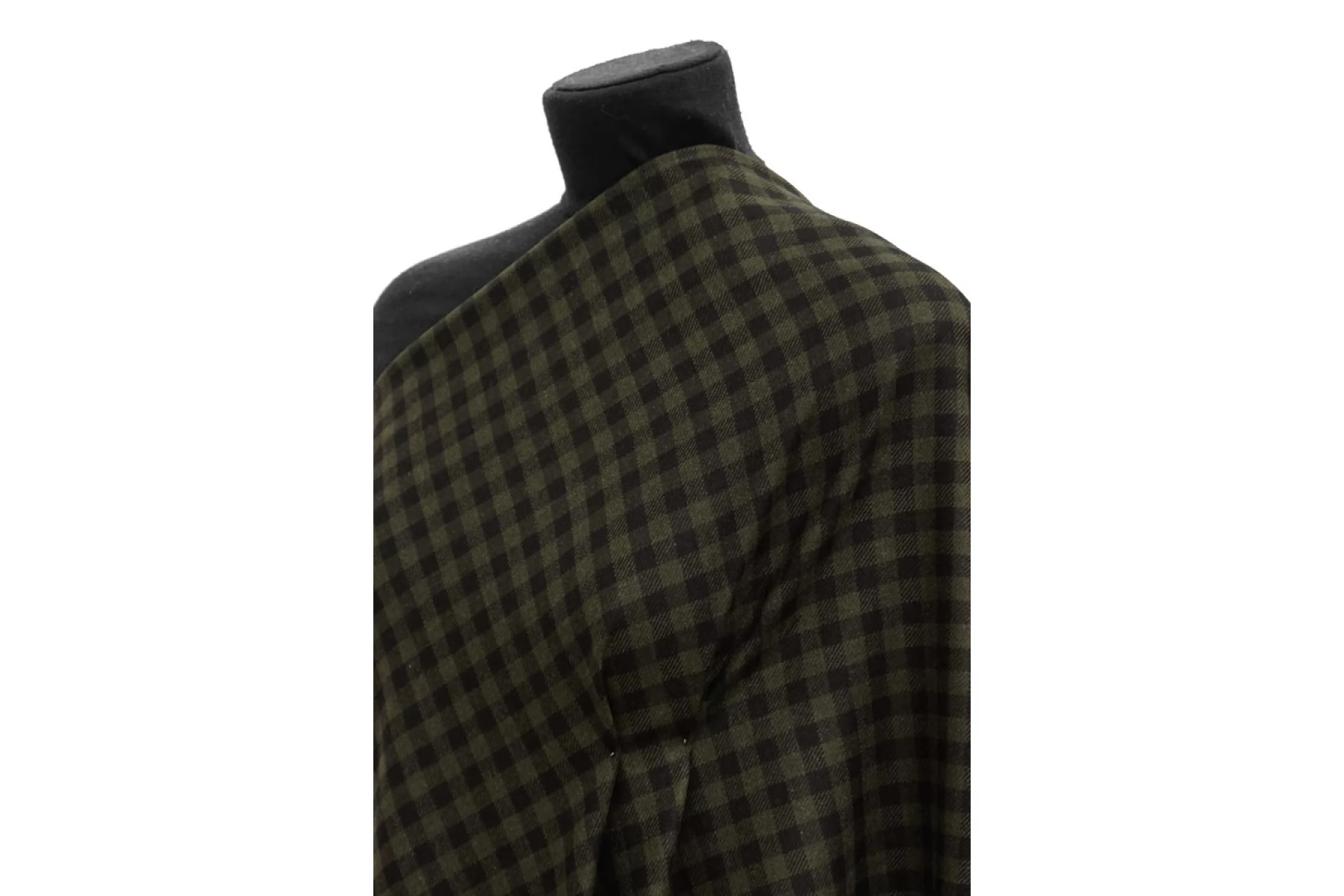 Прекрасная костюмная шерсть зеленая в клетку диагонального плетения. Тактильно шероховатая и суховатая, колется. С красивым лоском. Не тянется. Не мнется. Пластичная. Хорошо драпируется и держит форму. Шьем теплые костюмы, платья, юбки, теплые рубашки. Уход деликатный.
