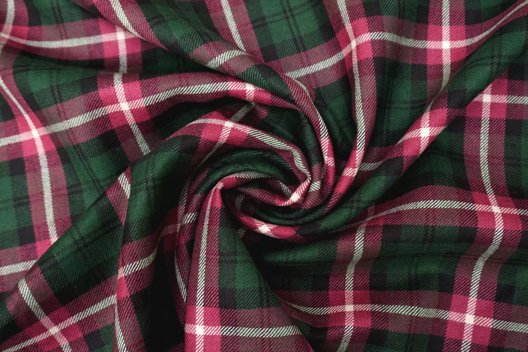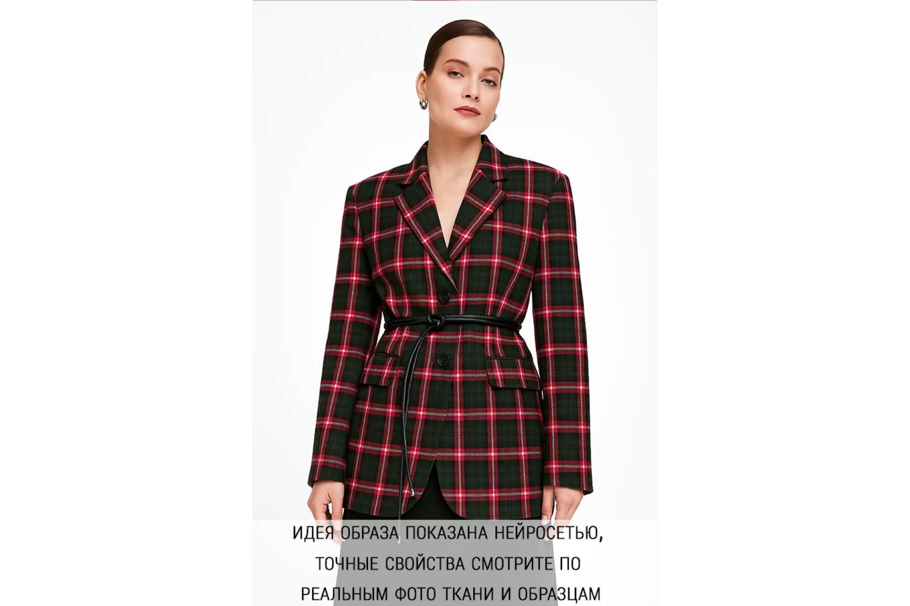 Костюмная шерсть в клетку Зелено-малиновая NST H60/2 FF20 4102481