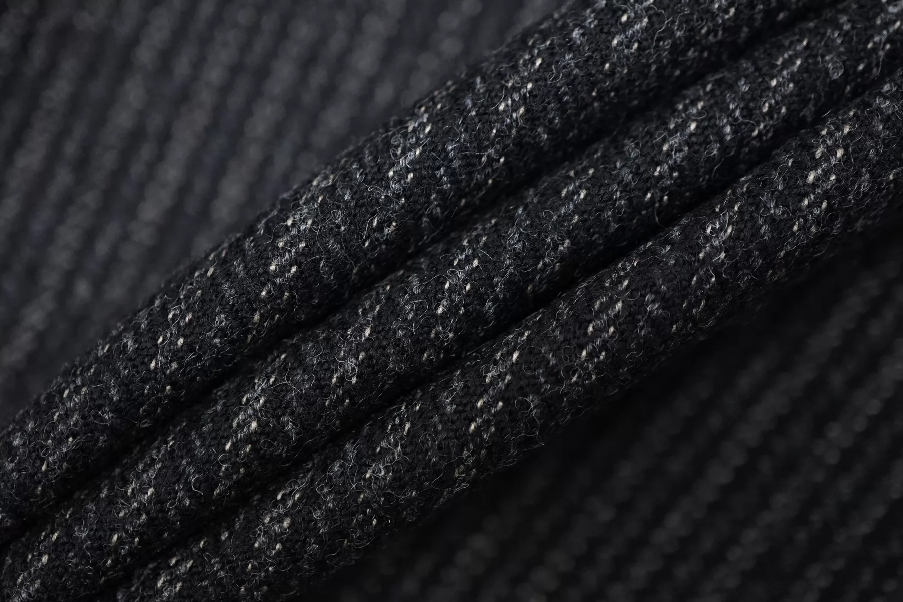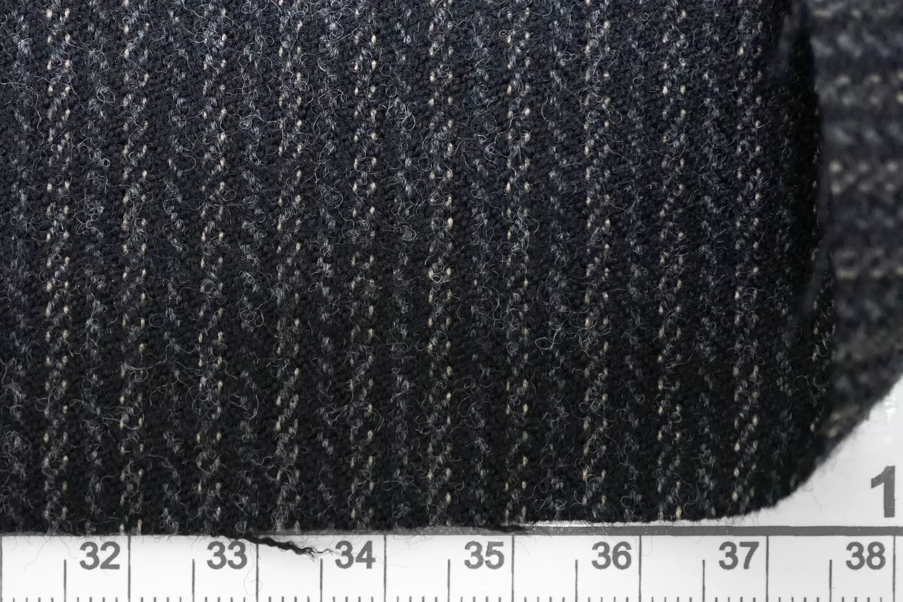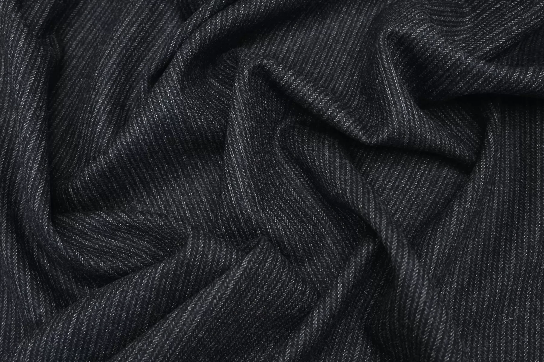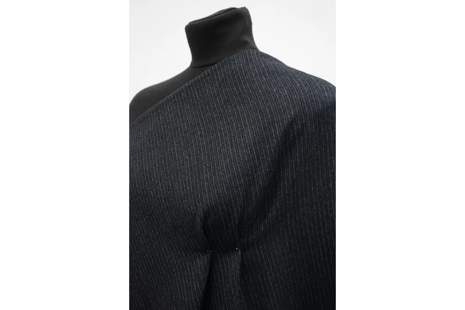 Шикарного качества шерсть костюмной плотности в очень интересную полоску из переплетения нитей черного, серого и серо-синего оттенков. Очень легкий ворс с обеих сторон. Тактильно приятная, мягкая, суховатая, немного колется. Не тянется, не просвечивает и не нется. Достаточно плотненькая. Обладает легким лоском. Пластичная. Хорошо драпируется и держит форму. Шьем костюмы, жакеты, платья, юбки или теплые рубашки. Подойдет как в мужской, так и женский гардероб. Уход деликатный.