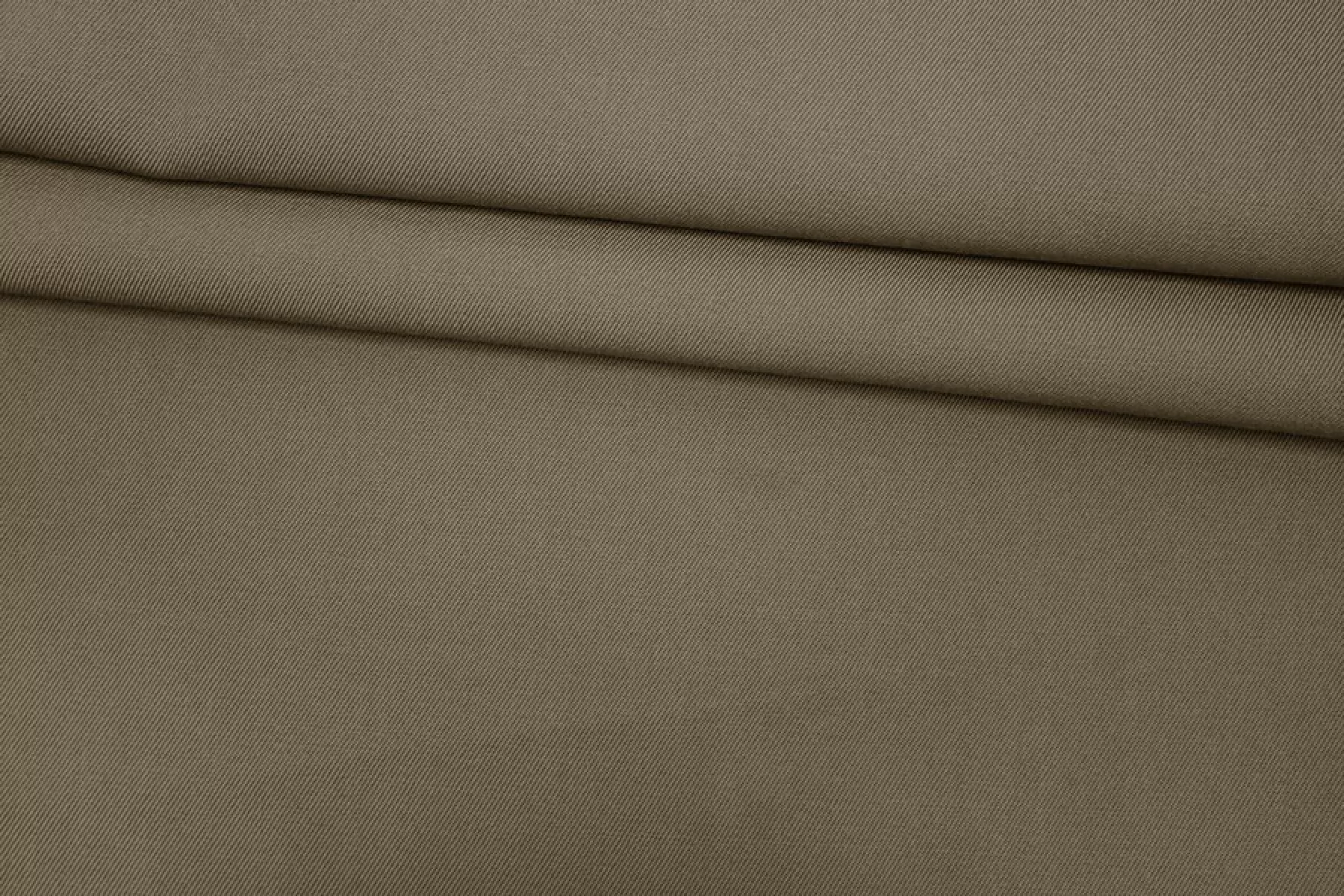 Костюмная шерсть диагонального плетения, в сложном оттенке, тут есть и бежевый, и лёгкий зеленый (хаки) подтон, и всё это немного выбеленно, играет в зависимости от освещения. Тактильно суховатая, плотная. Чувствуется плетение наощупь. Чувствительной коже может слегка колоться. Не просвечивает, слегка тянется-пружинит плетение. Не мнется. Держит форму но при этом пластичная. Используем для пошива костюмов, в том числе и мужских, юбок, зимних сарафанов. При необходимости используйте подкладочный материал. Уход за шерстью деликатный.