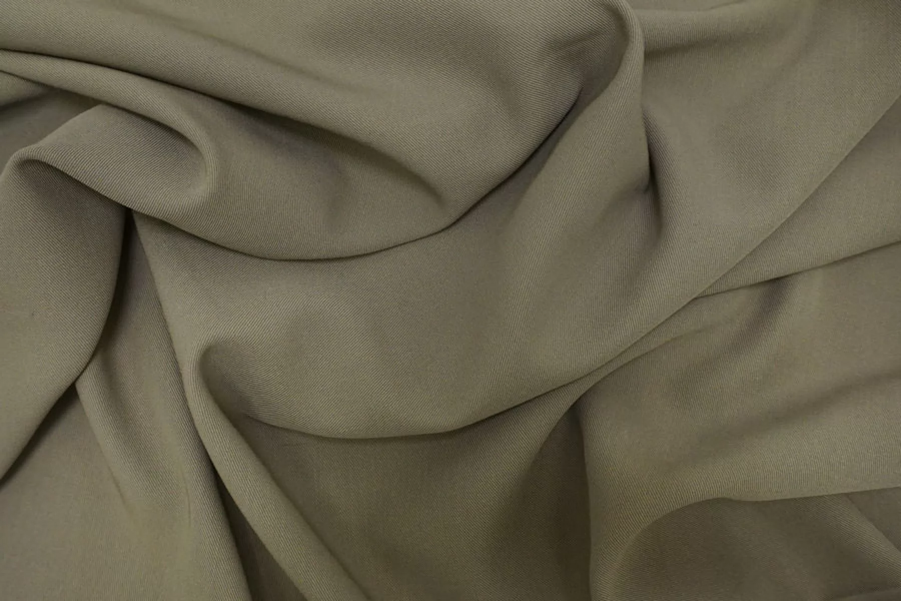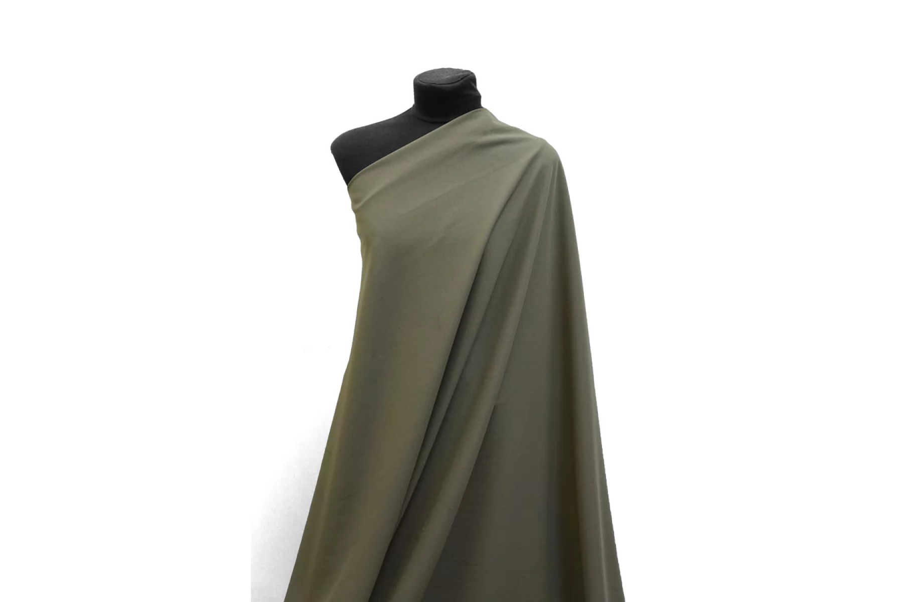Классная костюмная шерсть диагонального плетения в приглушенном зеленом оттенке хаки. Ткань шероховатая и суховатая наощупь. Покалывает. Пластичная, тонкая, плотная. Не тянется, но зато хорошо драпируется и неплохо держит форму. Не мнется! Идеальный осенний и зимний вариант на стильные костюмы, брюки, юбки или жакеты. Уход деликатный