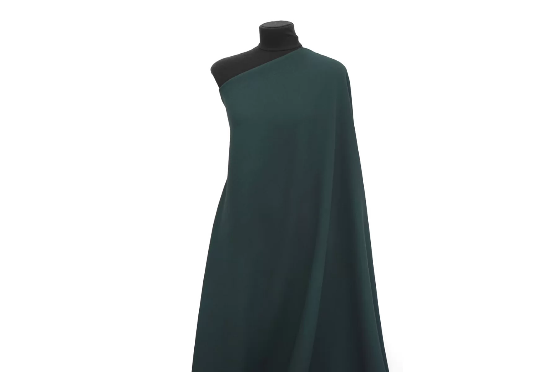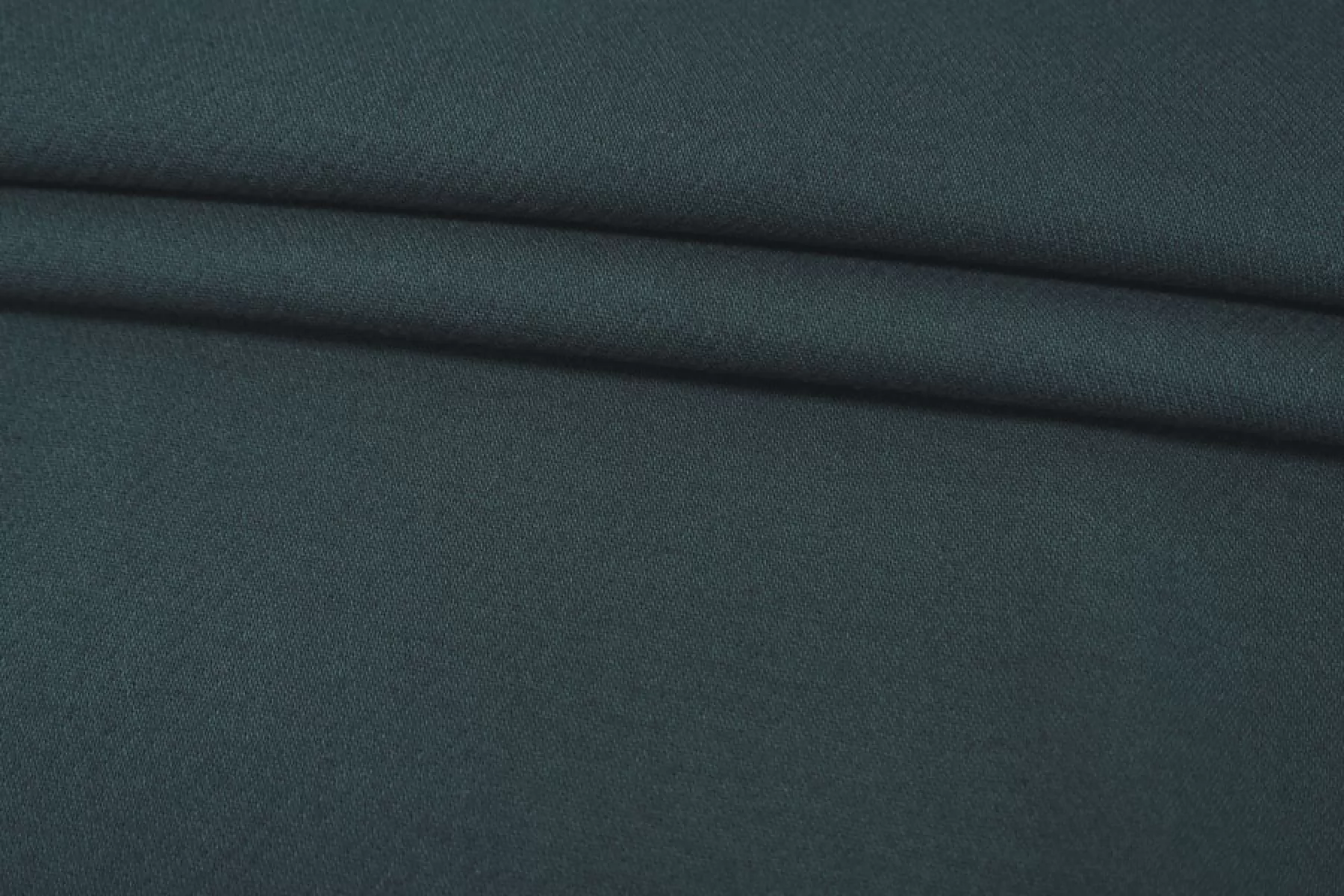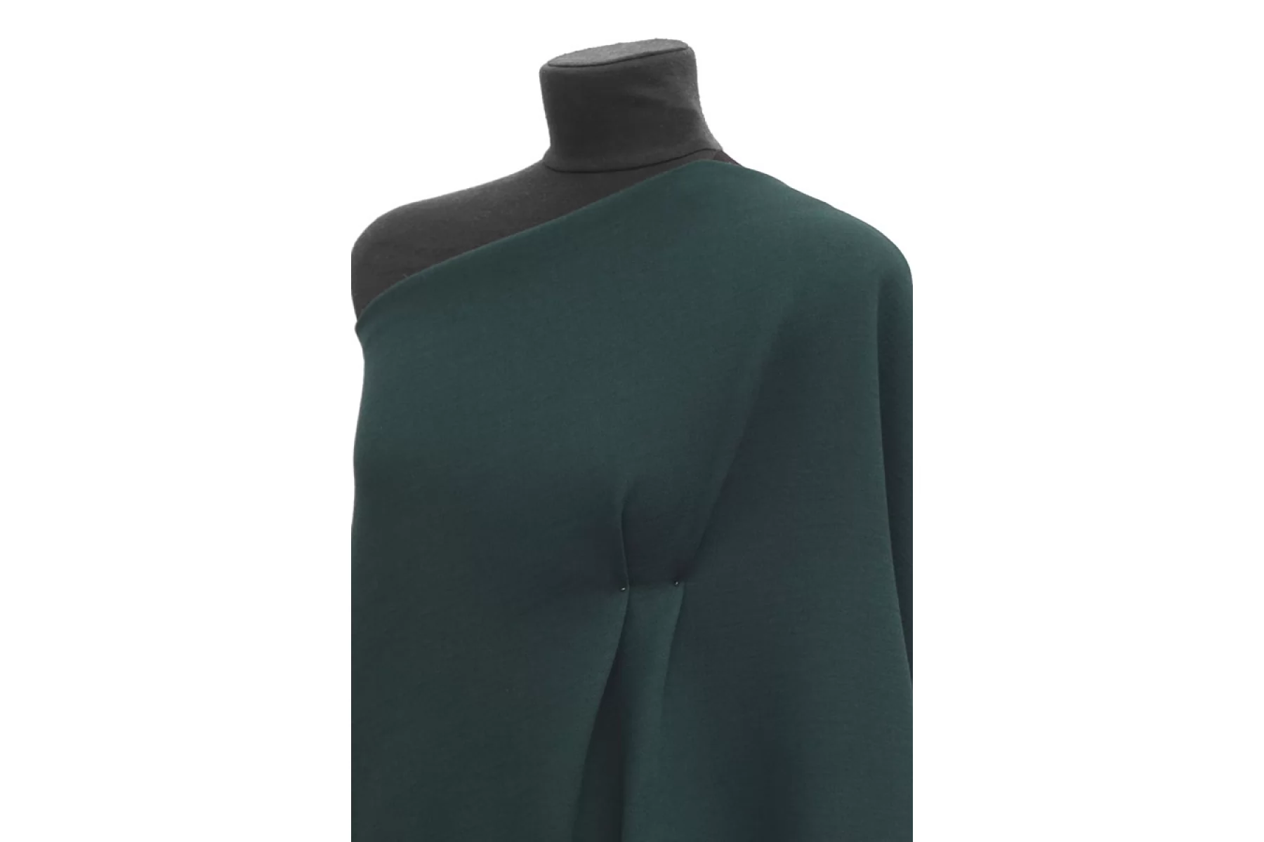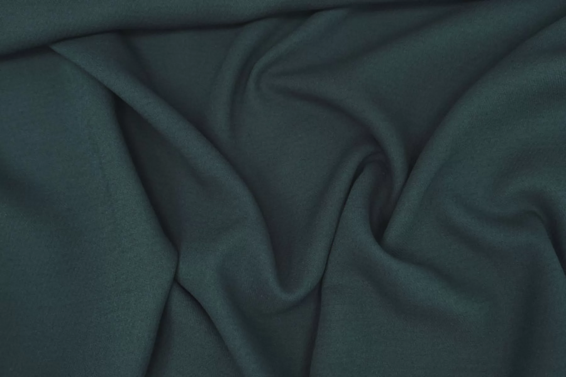 Итальянская костюмно-плательная креповая вискоза с шерстью холодного темно-зеленого цвета. Материал толстенький примерно 1 мм толщиной. Креповый. Пластичный, не просвечивает, слегка тянется. Форму немного держит. Подойдет на костюмы, жакеты. Учитывайте возможную усадку. Уход деликатный.