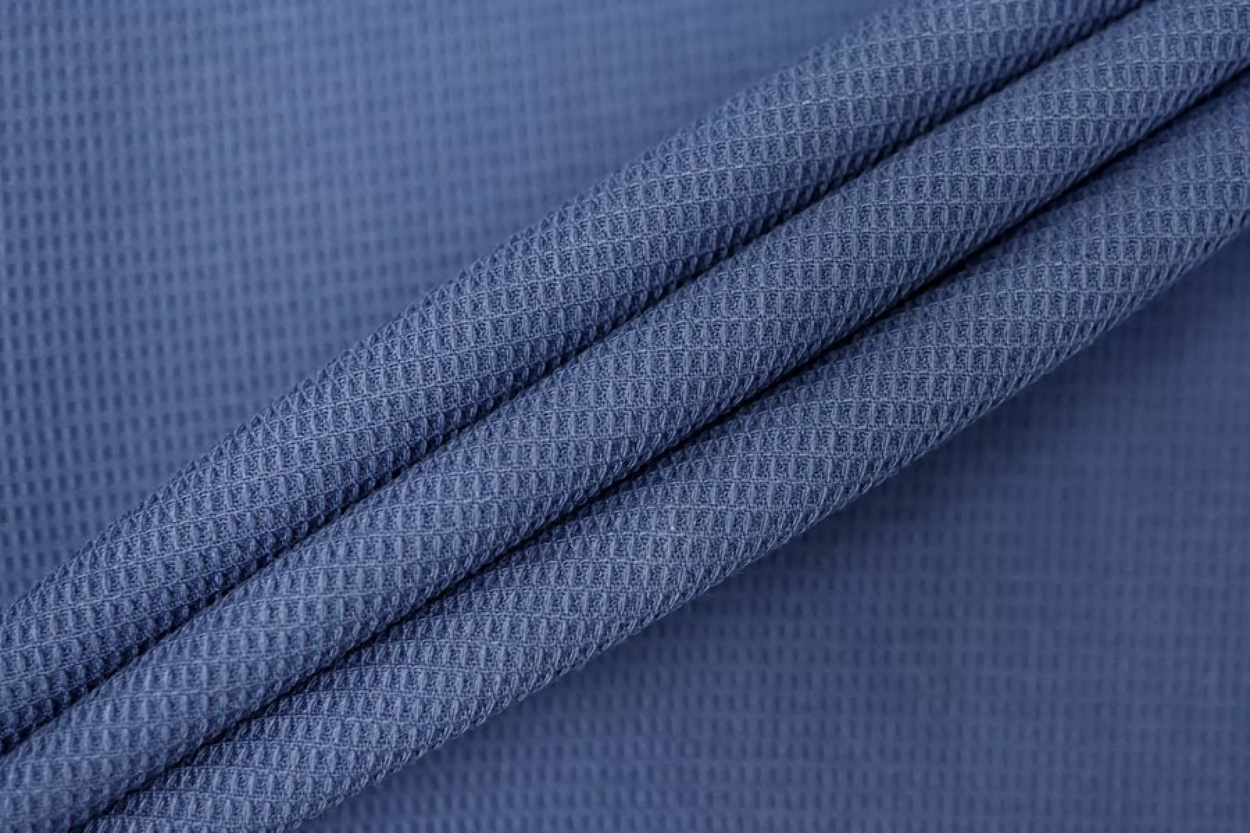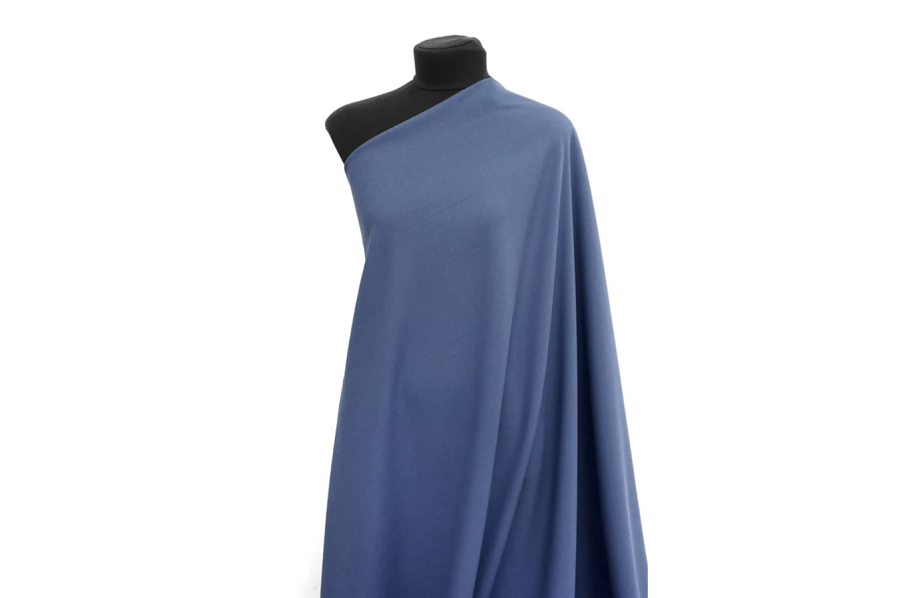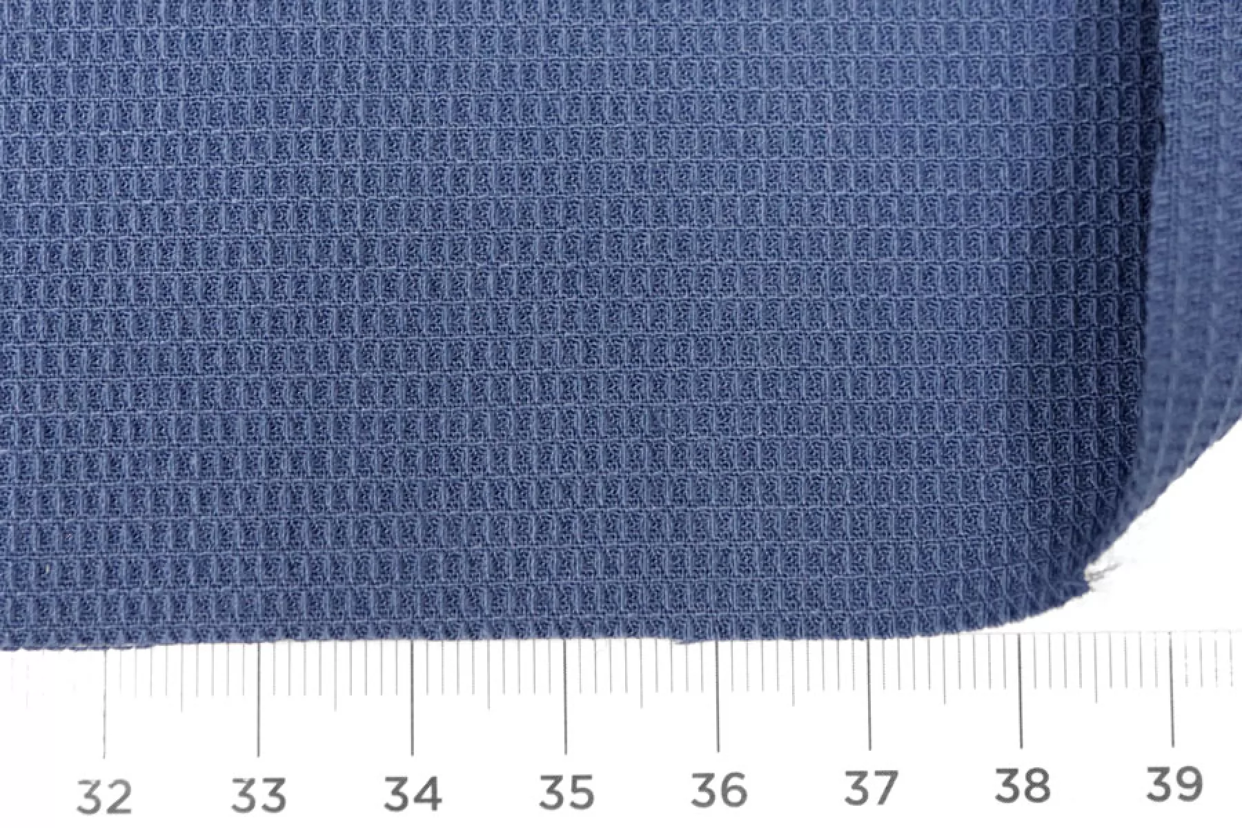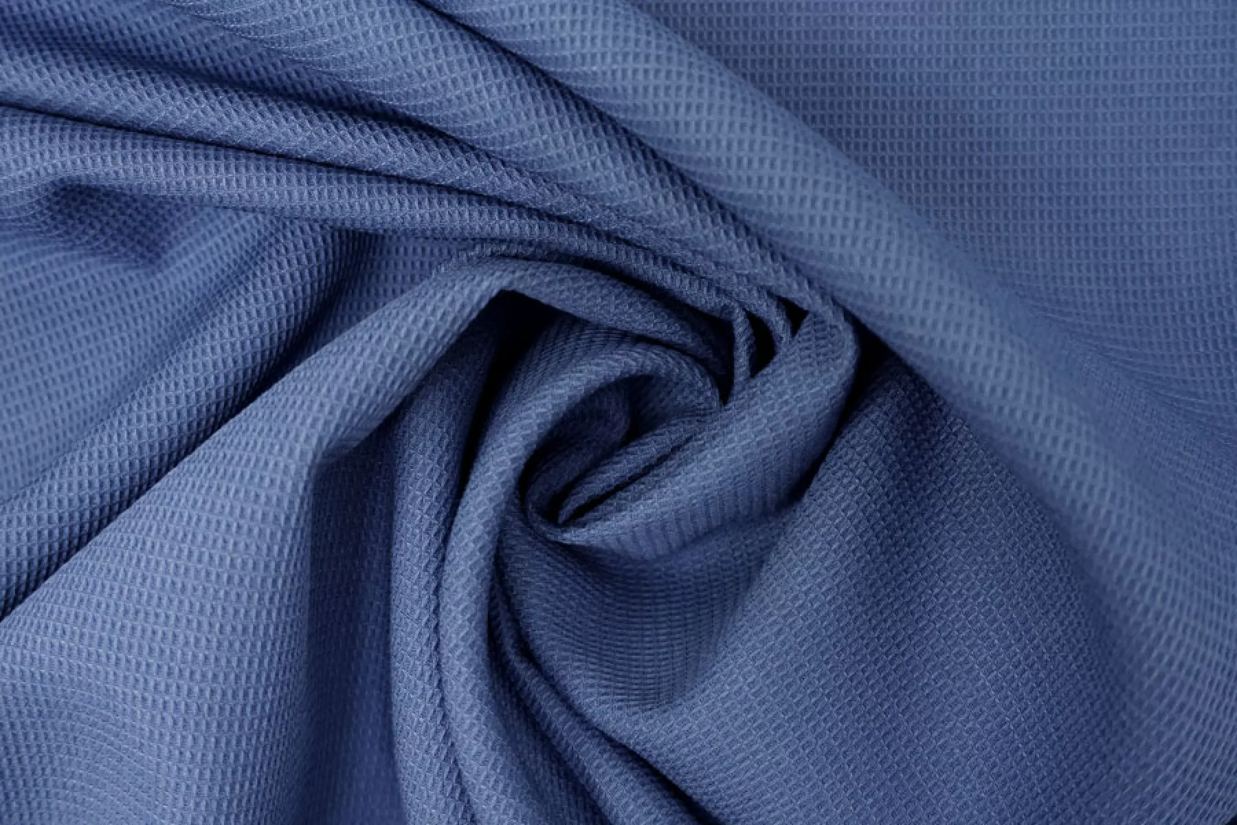 Костюмно-плательная поливискоза припыленно-синего оттенка (неяркий, сине-серый). Фактура вафельная. Пластичная, эластичная. Не просвечивает, немного держит форму. Подойдет для пошива костюмов мягкой формы, платьев, юбок, брюк и шорт.