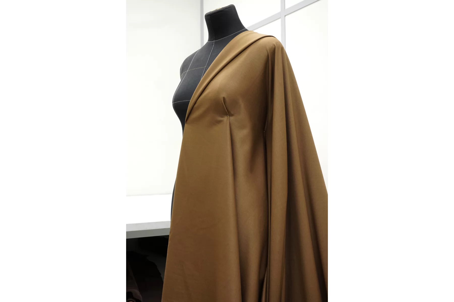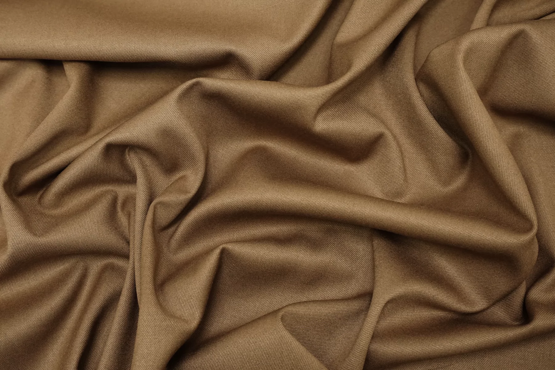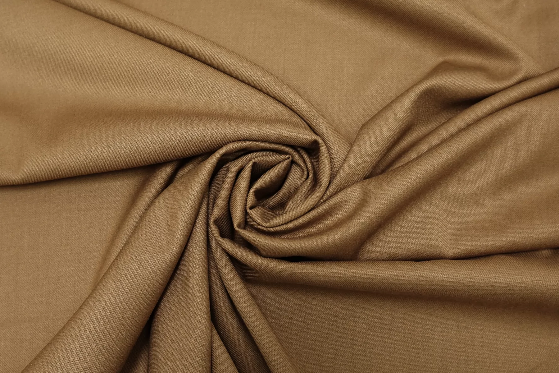 Костюмно-плательная поливискоза диагонального плетения, в красивом, песочном оттенке кэмел (можно еще описать как золотисто-коричневый). Материал тактильно приятный, мягкий, достаточно тонкий, но плотный. Не просвечивает. Немного упруго тянется за счет содержания эластана, не мнется. Немного держит форму, при этом пластичный. Шьем платья, юбки, свободные брюки и не только.