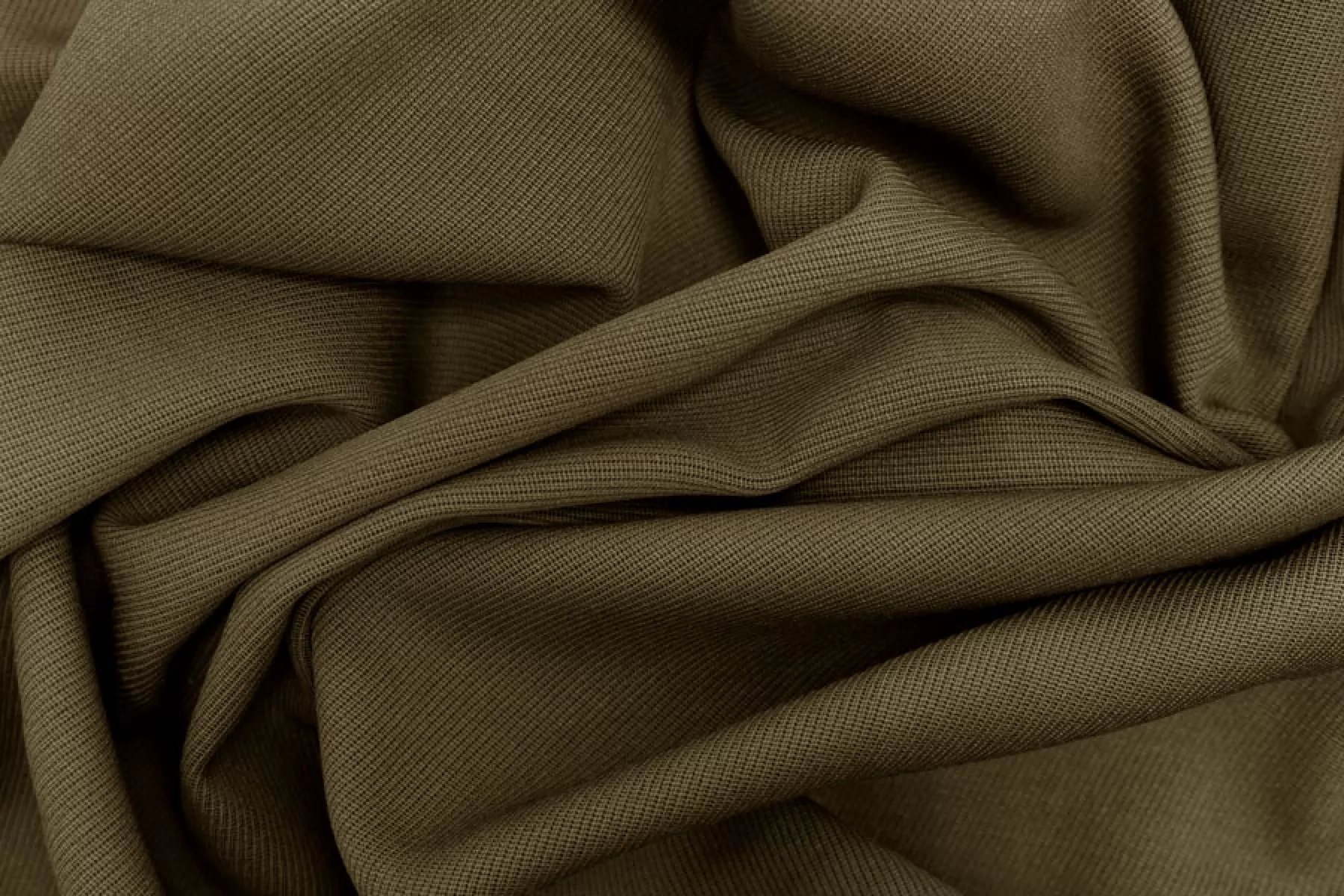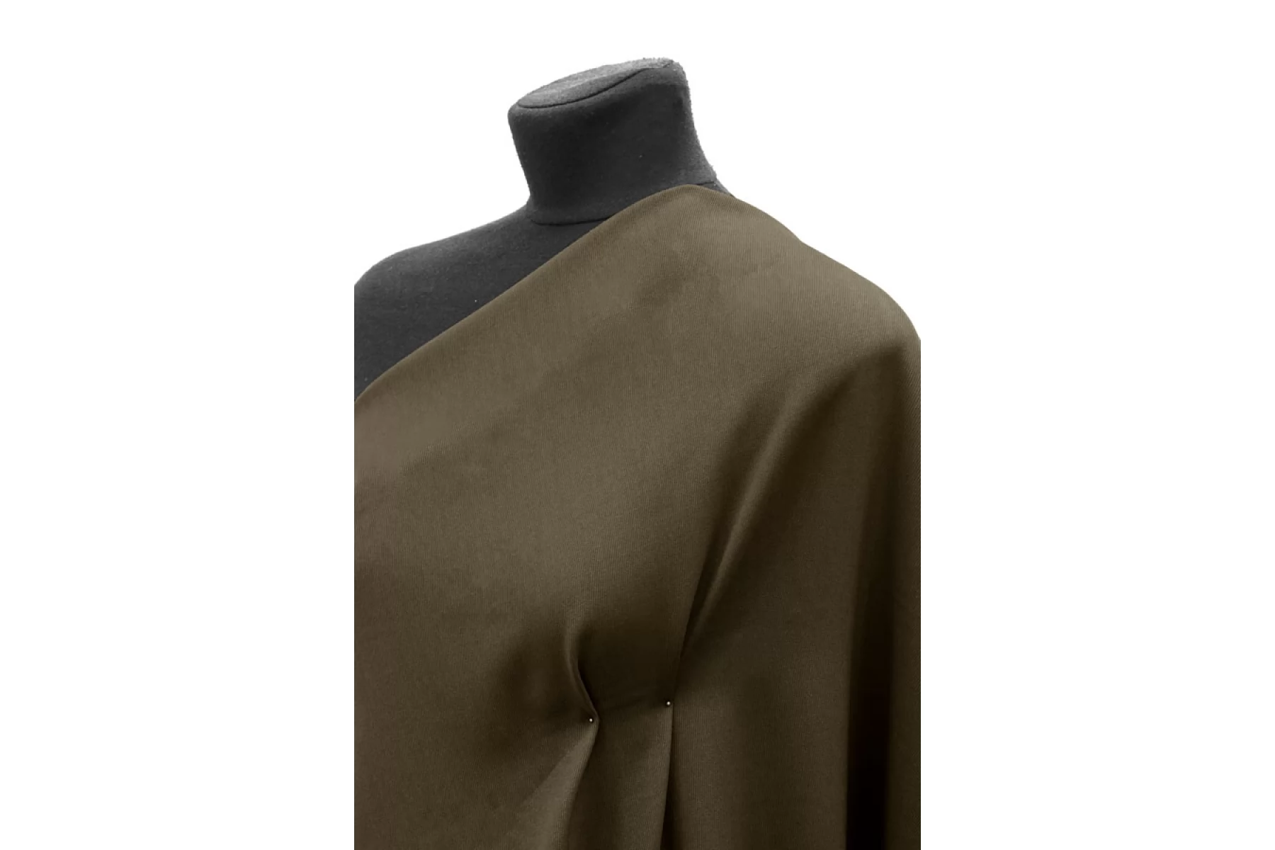 Прекрасная костюмно-плательная шерсть Virgin Wool, диагонального плетения, в красивом болотном оттенке. Тактильно приятная, гладкая. Чувствительной коже может слегка колоться. Достаточно тонкая, но при этом плотная. Не просвечивает и не тянется. Красива в движении. Немного держит форму. Используем на для пошива костюмов мягкой формы, красивых брюк со складками, тёплых платьев (например рубашечного кроя), отлично на зимние юбки. Уход, как за шерстью - деликатный. Учитывайте усадку.