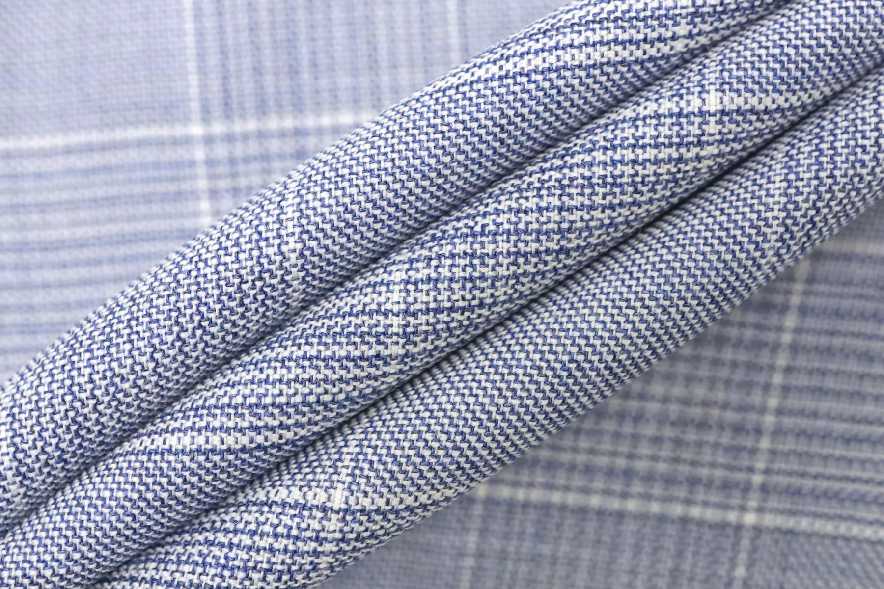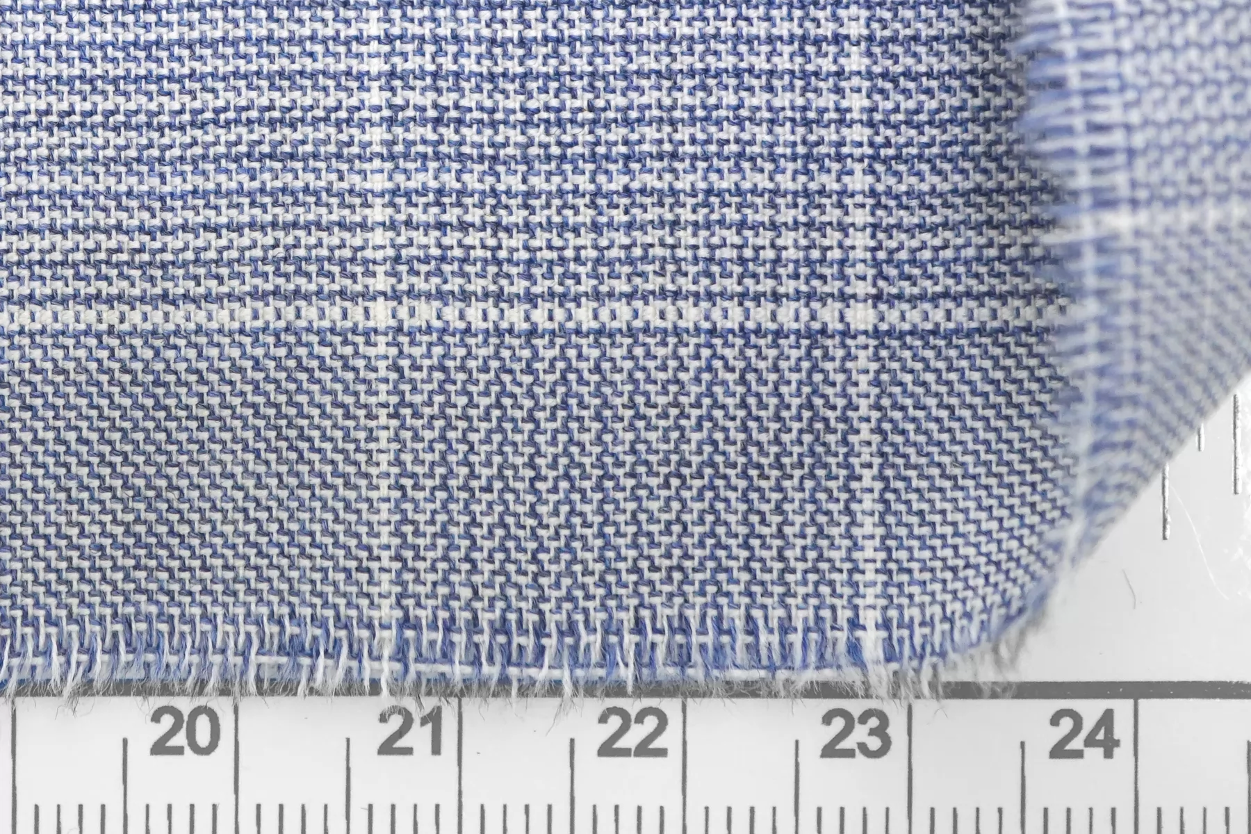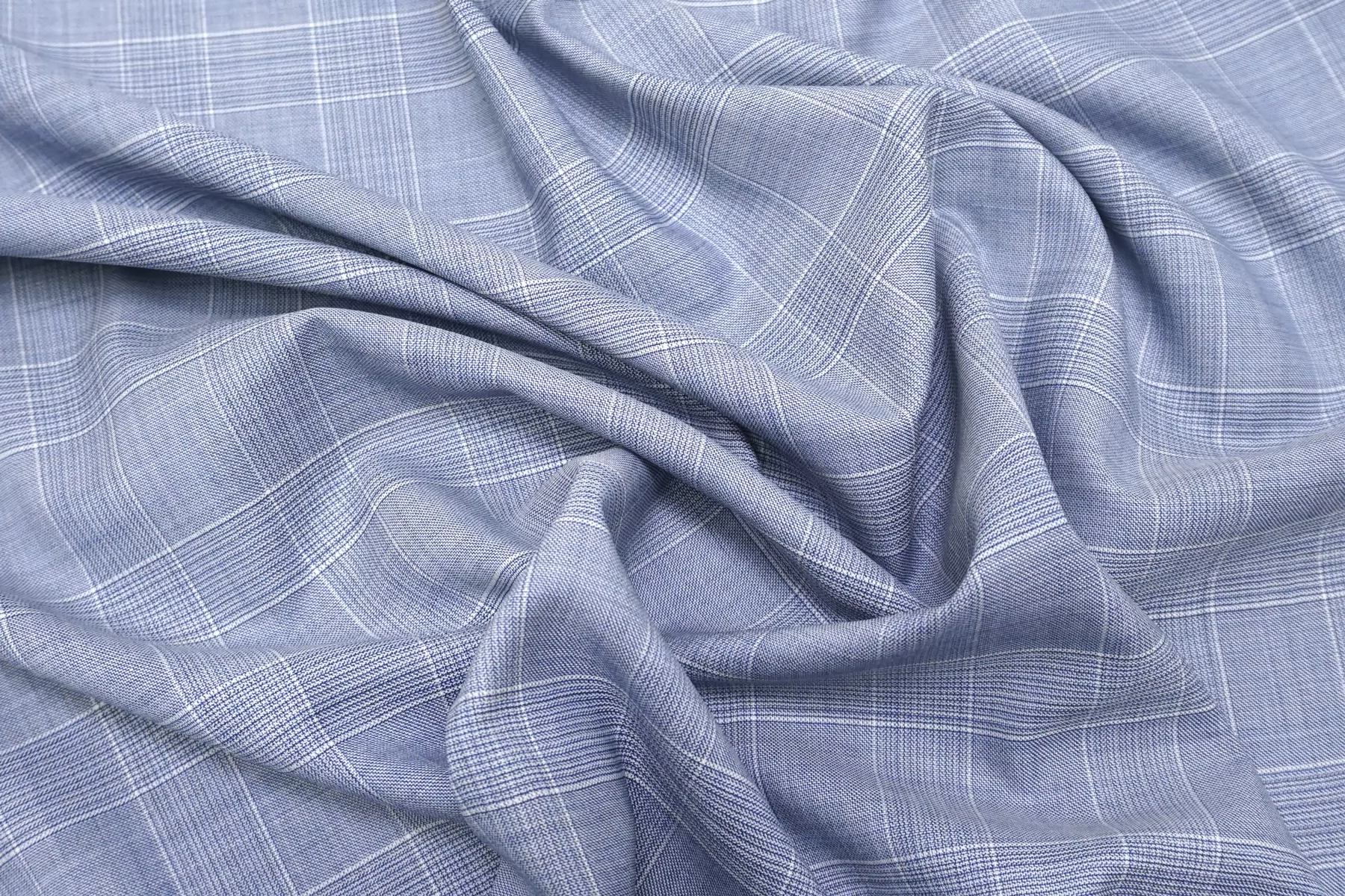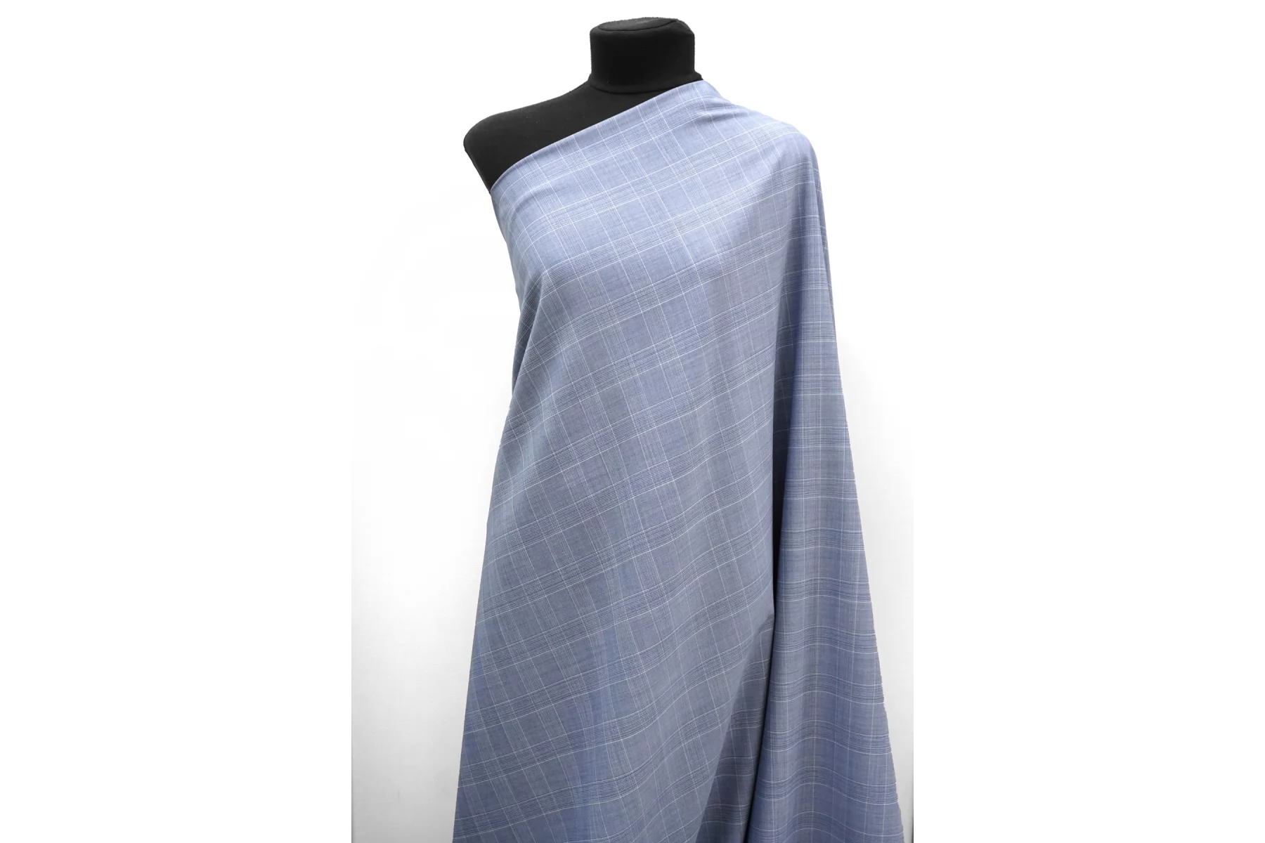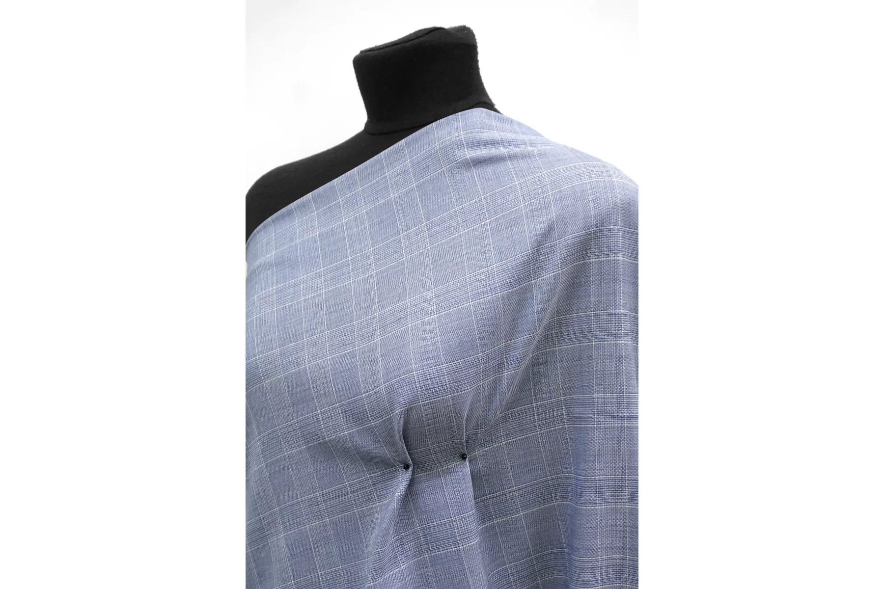 Прекрасная костюмно-плательная вирджинская шерсть от бренда Cerruti в клетку из нитей белого, голубого и сине-голубого цвета. Тактильно гладкая, плотная, но достаточно тонкая. Чувствуется, что шерсть, при этом не колется. Не тянется, немного просвечивает силуэт в один слой. Хорошо драпируется и умеренно держит форму. Не мнется. Отличный вариант на костюмы, жакеты мягкой формы, платья, брюки, тёплые рубашки и не только. Уход за материалом деликатный.