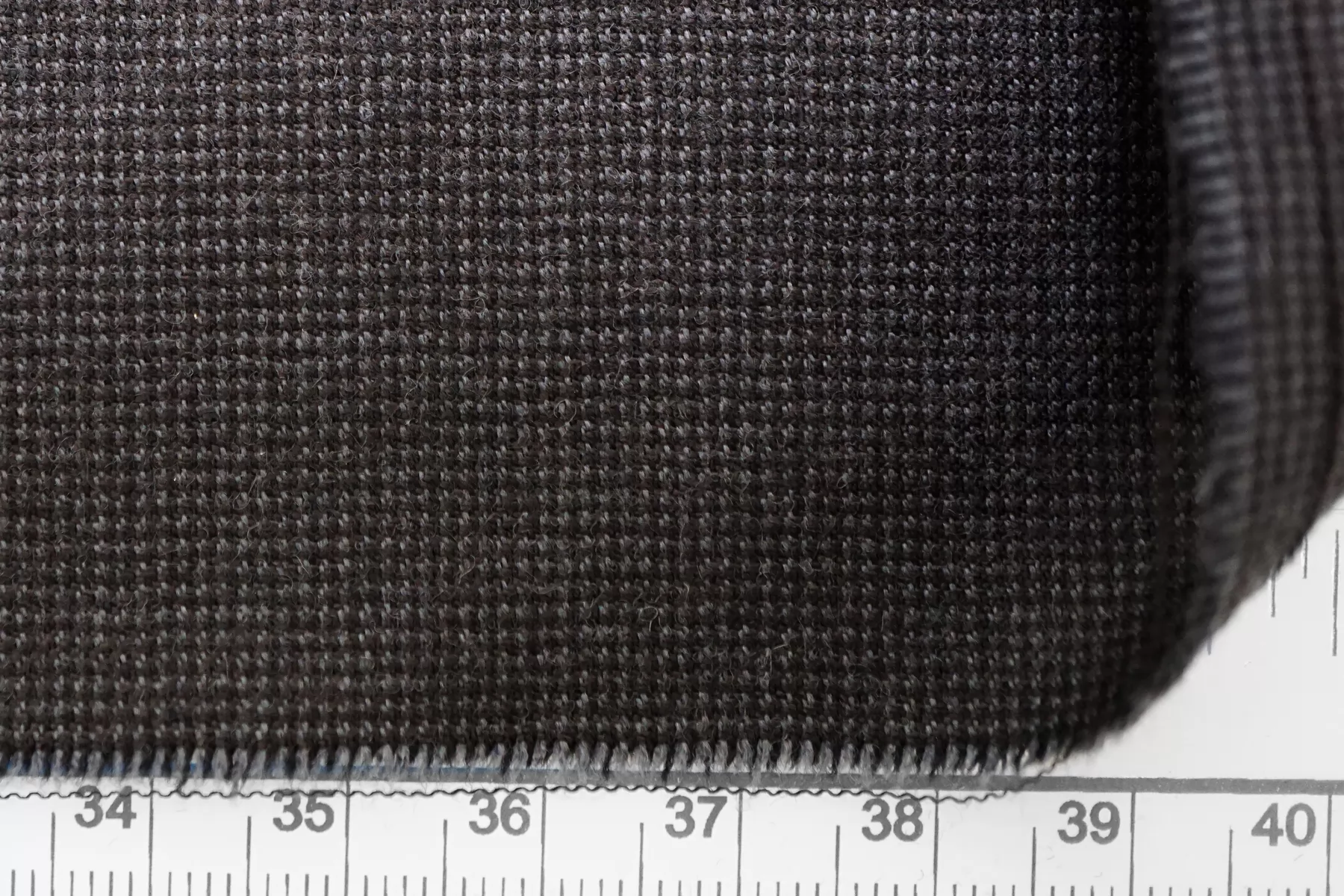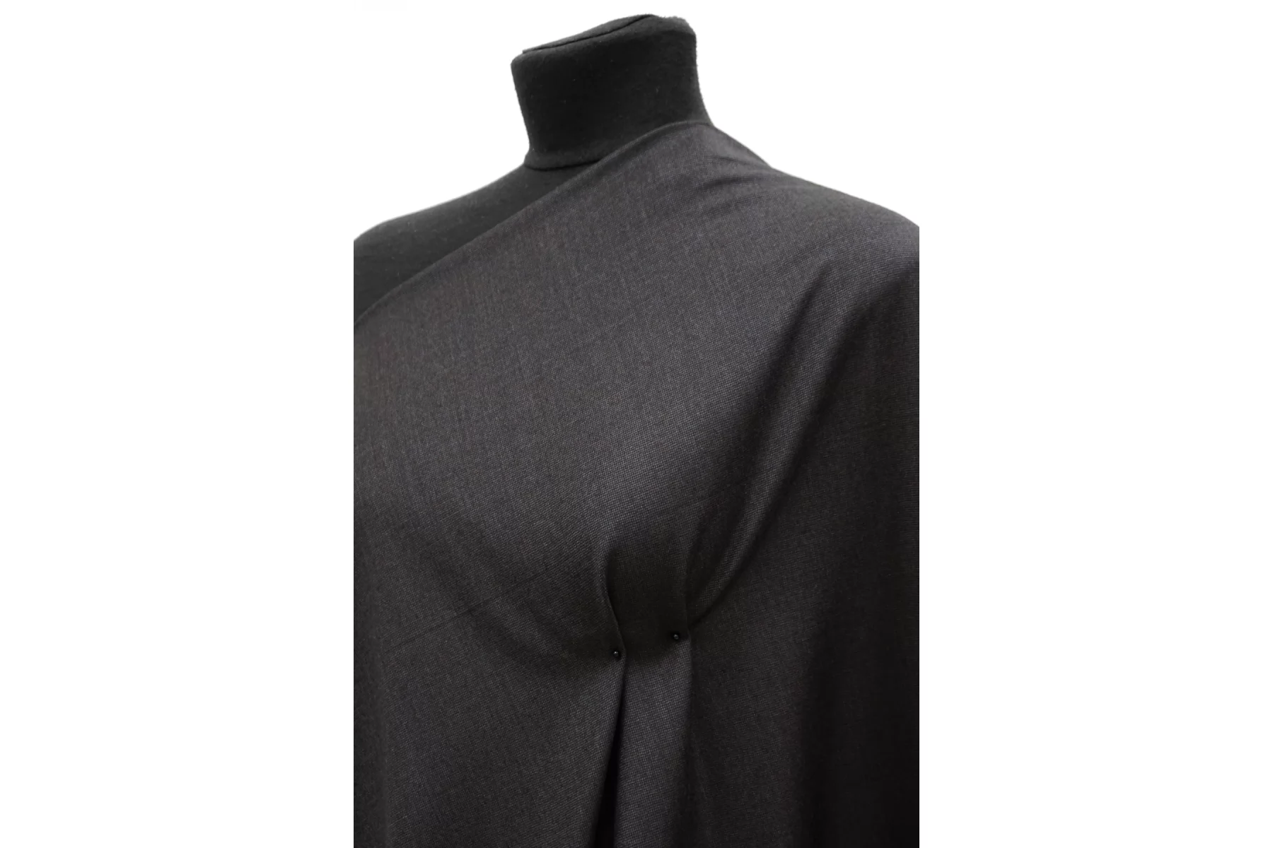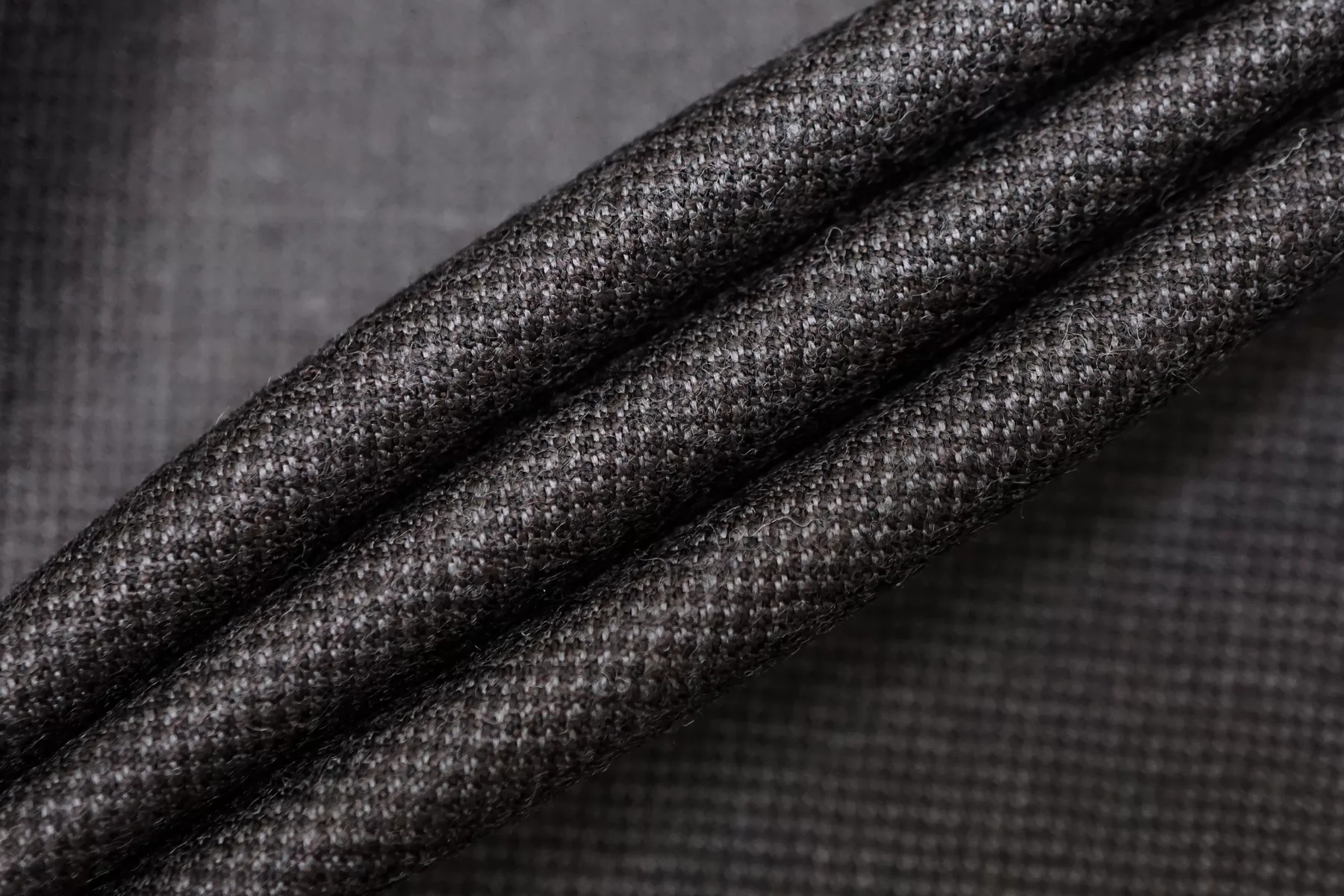 Прекрасная костюмно-плательная вирджинская шерсть с кашемиром от Cerruti с мелким узором-пепитой из нитей чёрного, серого и тёмно-коричневого цвета. Тактильно гладкая, плотная, но достаточно тонкая. Чувствуется, что шерсть, при этом не колется. Обладает очень лёгким лоском. Не просвечивает. Плетение совсем немного тянется. Хорошо драпируется и умеренно держит форму. Не мнется. Отличный вариант на костюмы, жакеты мягкой формы, платья, брюки, тёплые рубашки и не только. Уход за материалом деликатный.