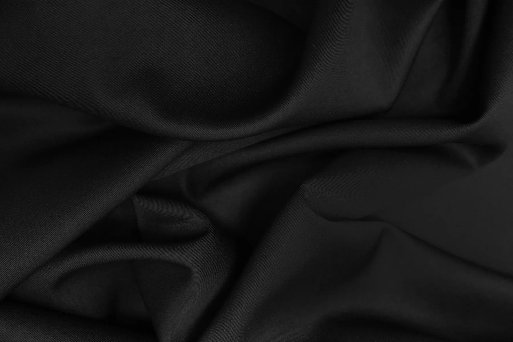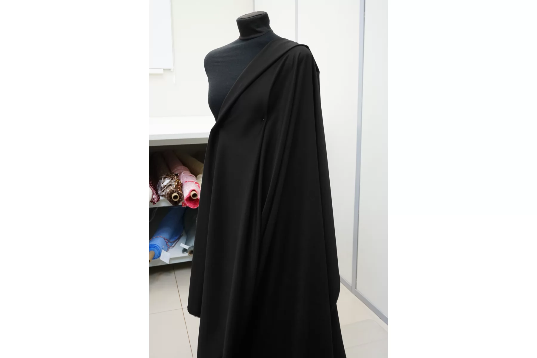 Прекрасная костюмно-плательная шерсть Virgin Wool, диагонального плетения черного цвета. Тактильно приятная, гладкая. Достаточно тонкая, но при этом плотная. Не просвечивает. Красива в движении. Немного держит форму. Используем для пошива костюмов мягкой формы, красивых брюк со складками, тёплых платьев (например рубашечного кроя), отлично на зимние юбки. Уход, как за шерстью - деликатный. Учитывайте усадку.