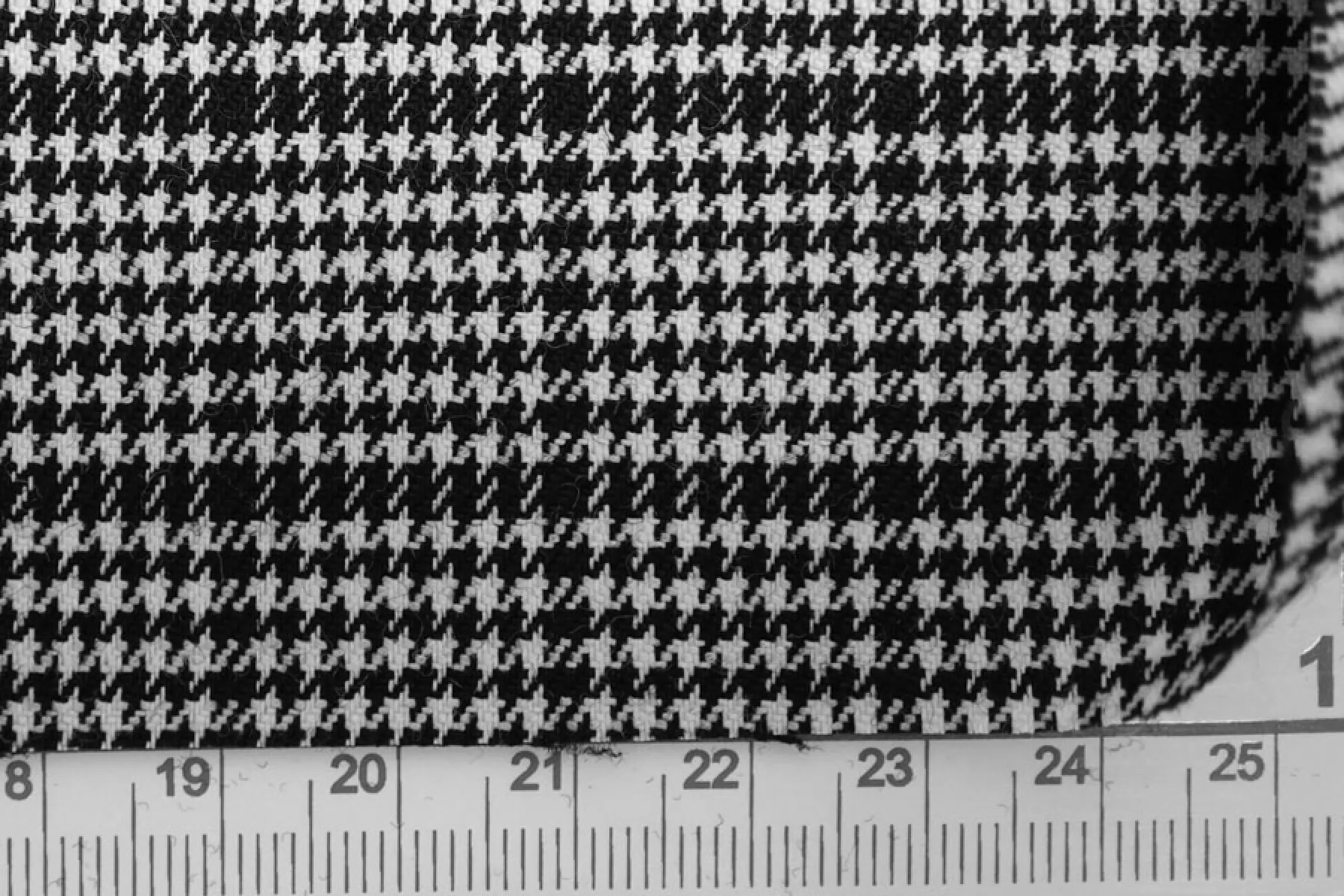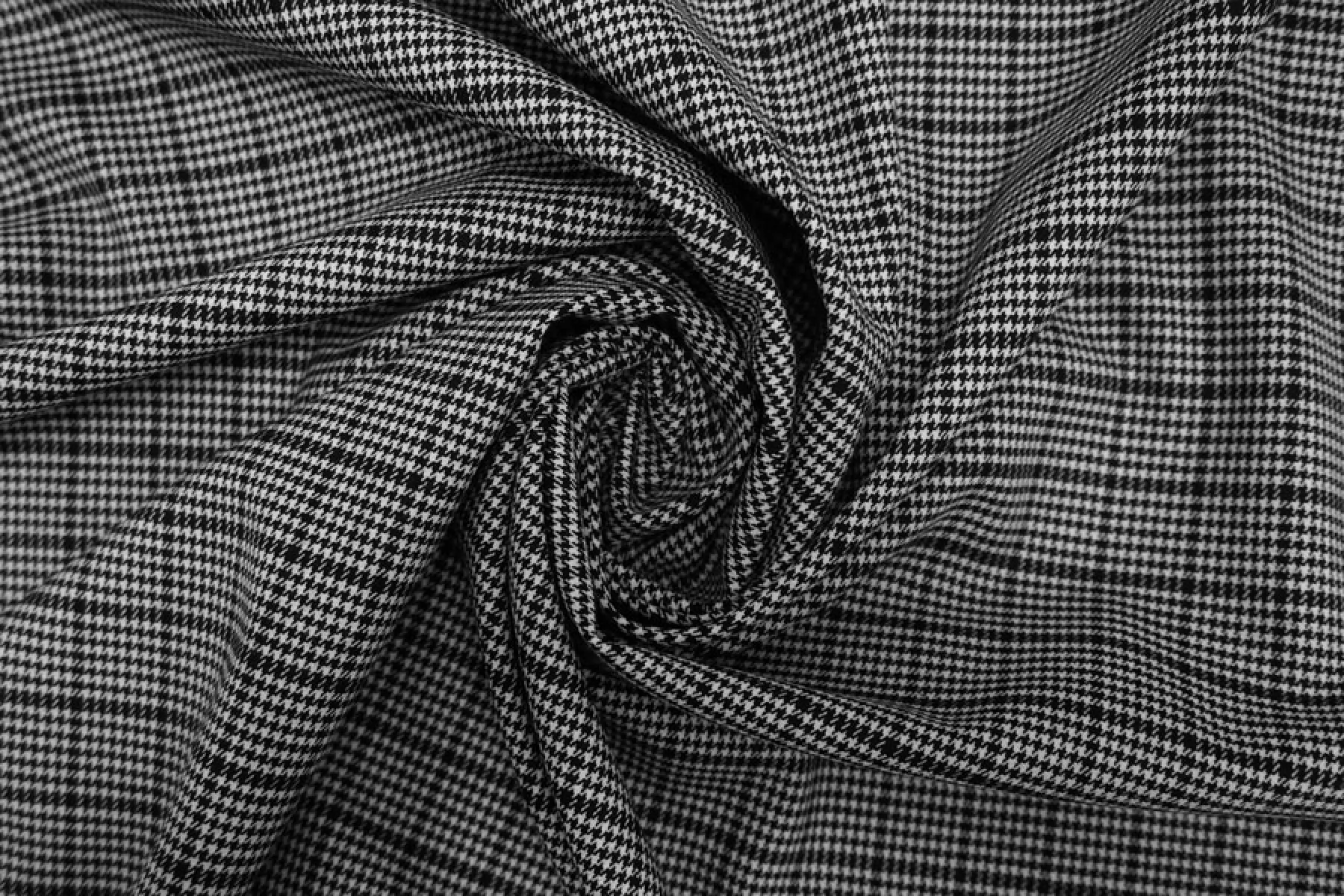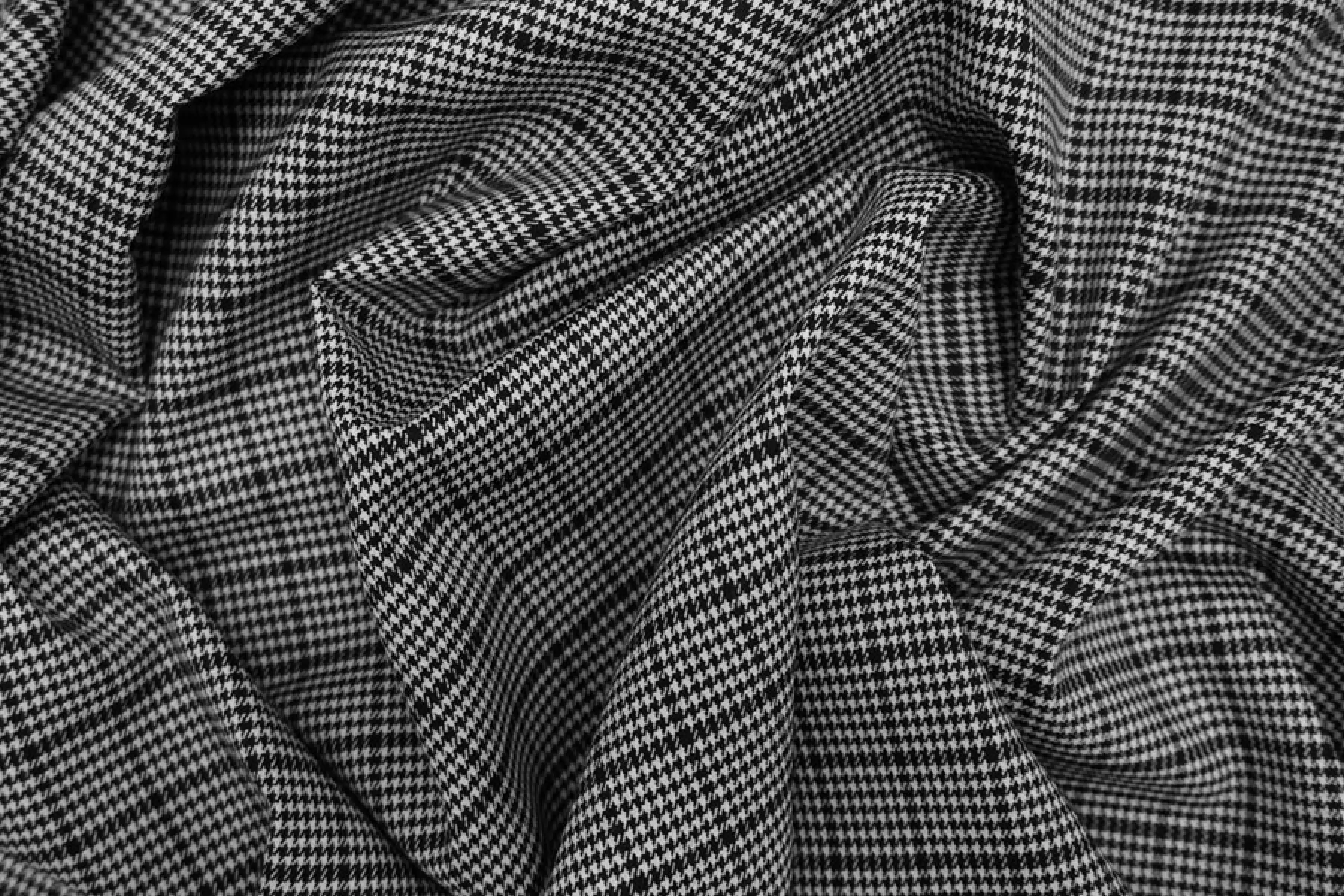 Прекрасная костюмно-плательная шерсть virgin с мелким узором "гусиная лапка" переплетение чёрных, светло-серых и белых нитей. Тактильно гладкая, плотная, но достаточно тонкая. Чувствуется, что шерсть, при этом не колется. Приятная. Тянется и не просвечивает. Хорошо драпируется и неплохо держит форму. Не мнется. Отличный вариант на костюмы, жакеты мягкой формы, платья, брюки и не только. Уход за материалом деликатный.