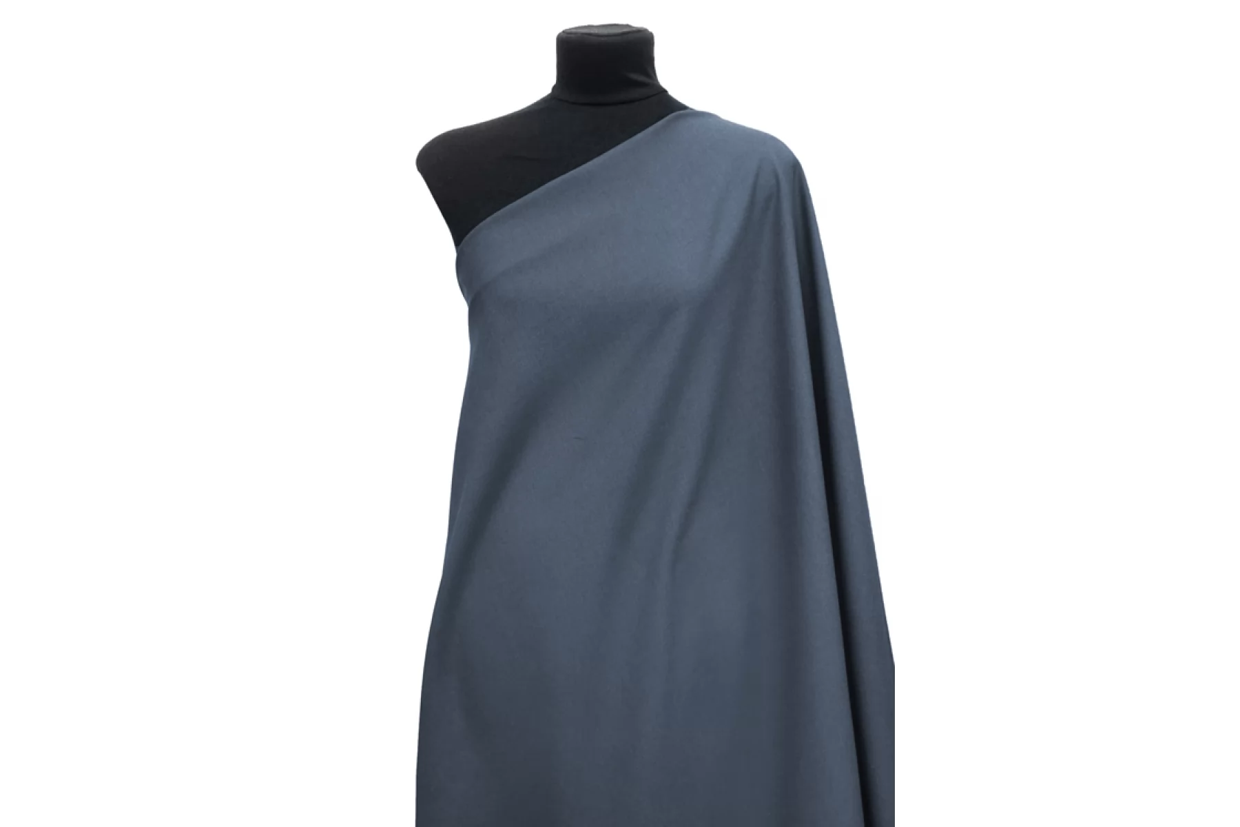 Костюмно-плательная шерсть диагонального плетения приглушенного синего оттенка. Тактильно пластичная, мягкая, суховатая. Чувствуется, что шерсть, не колется, но при необходимости используйте подкладочный материал. Не просвечивает. Не тянется. Хорошо драпируется и неплохо держит форму. Немного сминается. Отличный вариант на жакеты, платья, брюки, юбки и костюмные варианты. Уход деликатный.