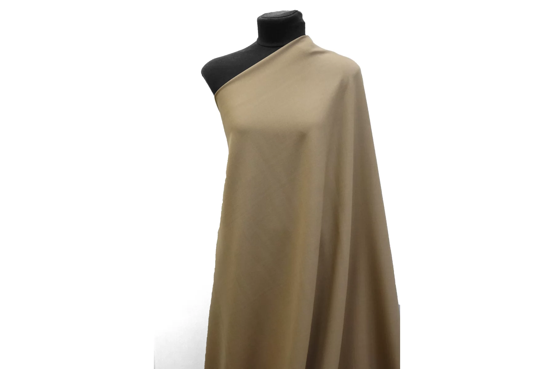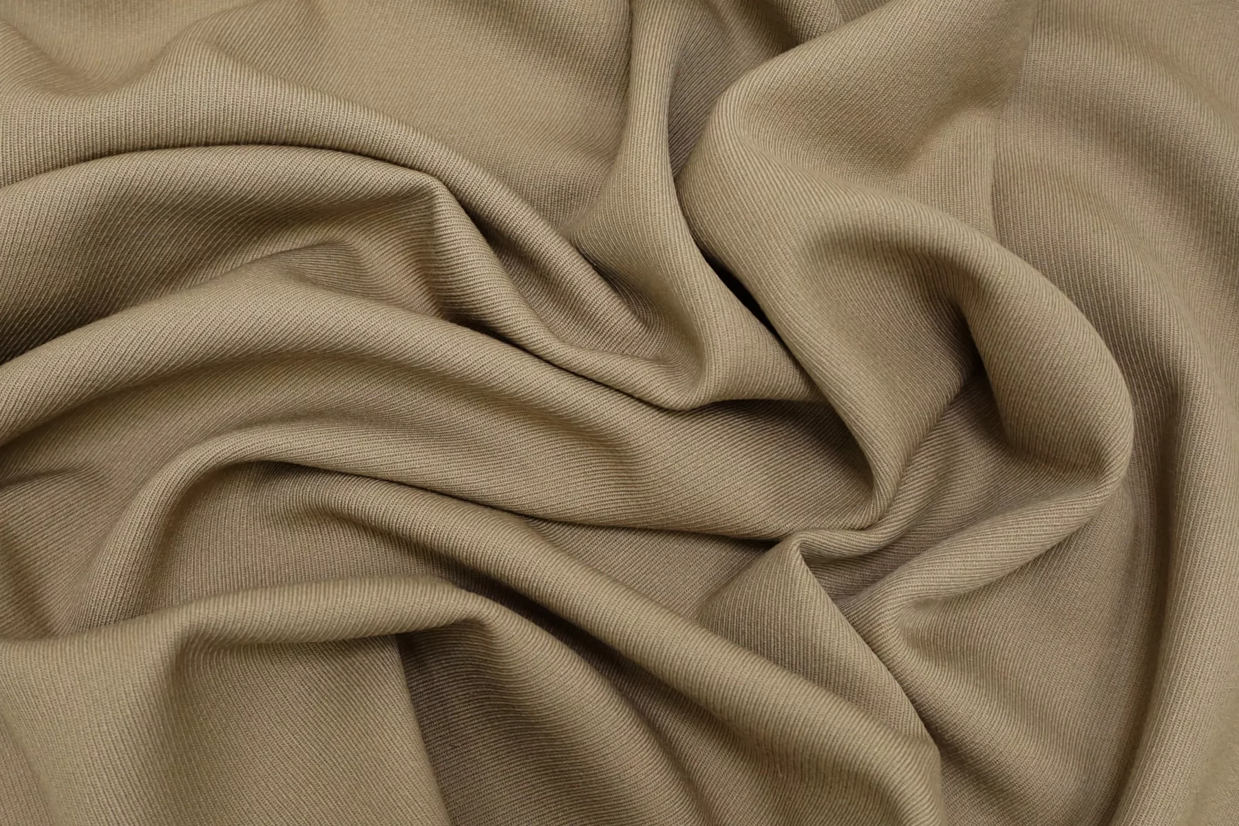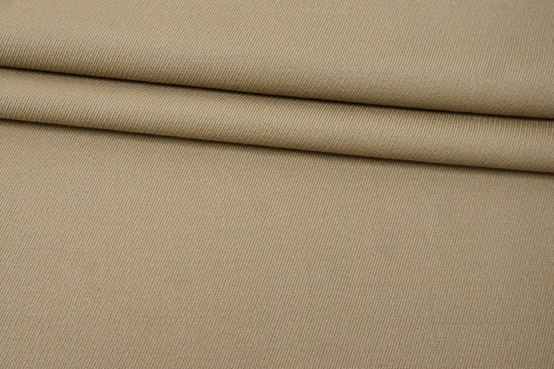 Костюмно-плательная шерсть качества virgin выраженного диагонального плетения в приятном оттенке припыленно-бежевом оттенке. Тактильно мягкая, слегка шероховатая, пластичная, не толстая. Не колется. Обладает очень легким приятным лоском. Не просвечивает, но если смотреть прямо на просвет, совсем слегка заметен силуэт. Немного тянется. Хорошо драпируется и немного держит форму. Прекрасный вариант на костюмные варианты, платья, юбки. Уход деликатный.