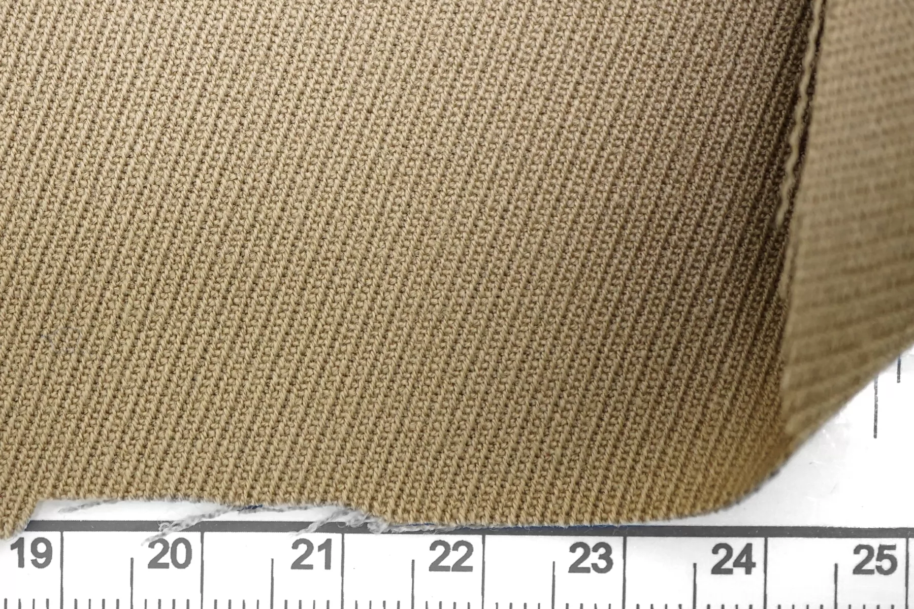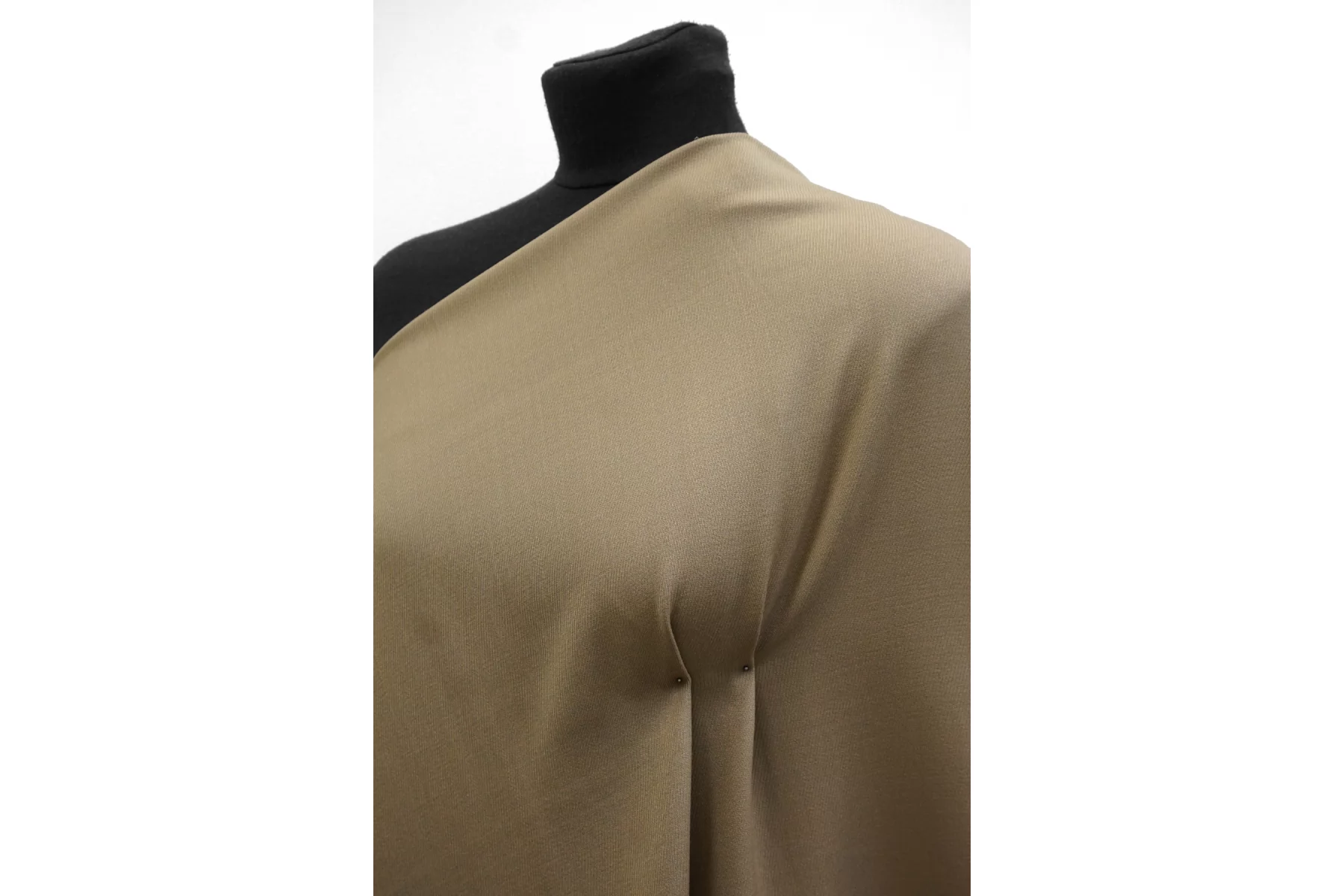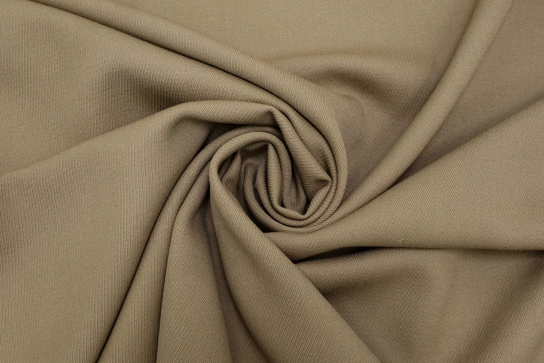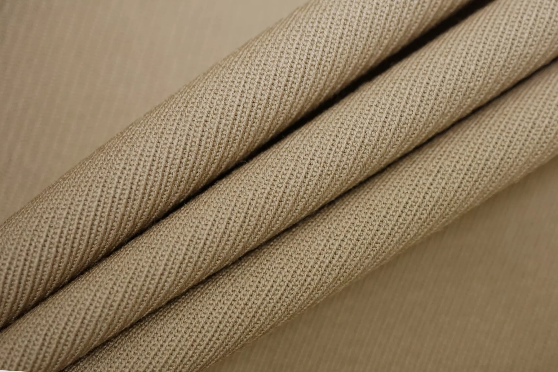 Костюмно-плательная шерсть качества virgin выраженного диагонального плетения в приятном оттенке припыленно-бежевом оттенке. Тактильно мягкая, слегка шероховатая, пластичная, не толстая. Не колется. Обладает очень легким приятным лоском. Не просвечивает, но если смотреть прямо на просвет, совсем слегка заметен силуэт. Немного тянется. Хорошо драпируется и немного держит форму. Прекрасный вариант на костюмные варианты, платья, юбки. Уход деликатный.