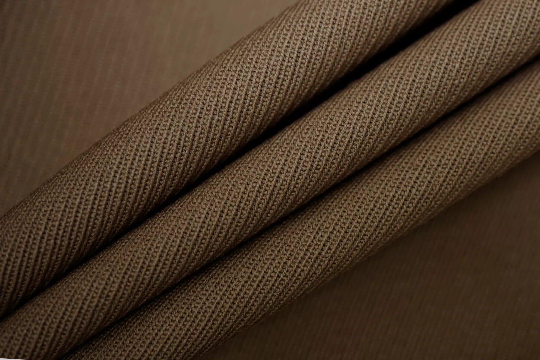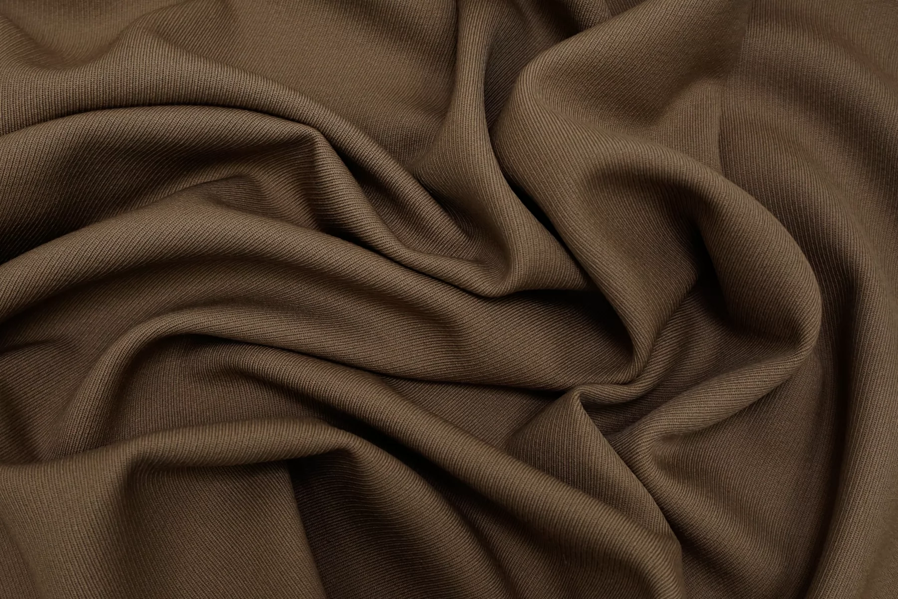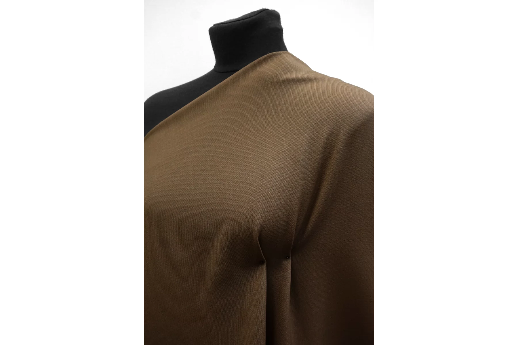 Костюмно-плательная шерсть качества virgin с добавлением кашемира выраженного диагонального плетения в коричневом цвете. Тактильно очень мягкая, с легким ворсом, пластичная, не толстая. Будет очень комфортна в носке. Не колется. Обладает очень легким приятным лоском. Не просвечивает. Слегка тянется плетение. Хорошо драпируется и немного держит форму. Прекрасный вариант на костюмные варианты, платья, юбки. Уход деликатный.