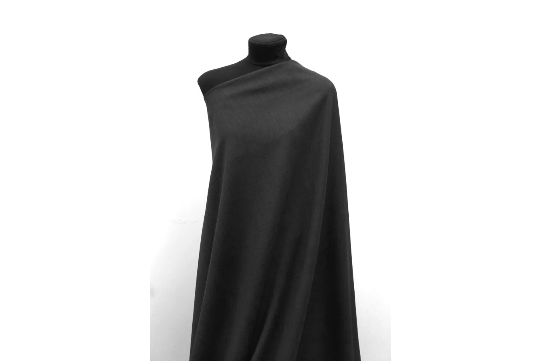 Великолепная позиция - шерсть костюмно-плательной плотности с добавлением кашемира в универсальном темно-сером оттенке. Имеет ярко-выраженное диагональное плетение. Очень мягкая и нежная наощупь. Не колется. Совсем немножко чувствуется суховатость. Плотненькая. Слегка пружинит плетение. Очень красива в складках и в своей пластике. Не мнется! Идеальный вариант на теплые костюмы, брюки, платья, юбки, мягкие жакеты. Уход деликатный